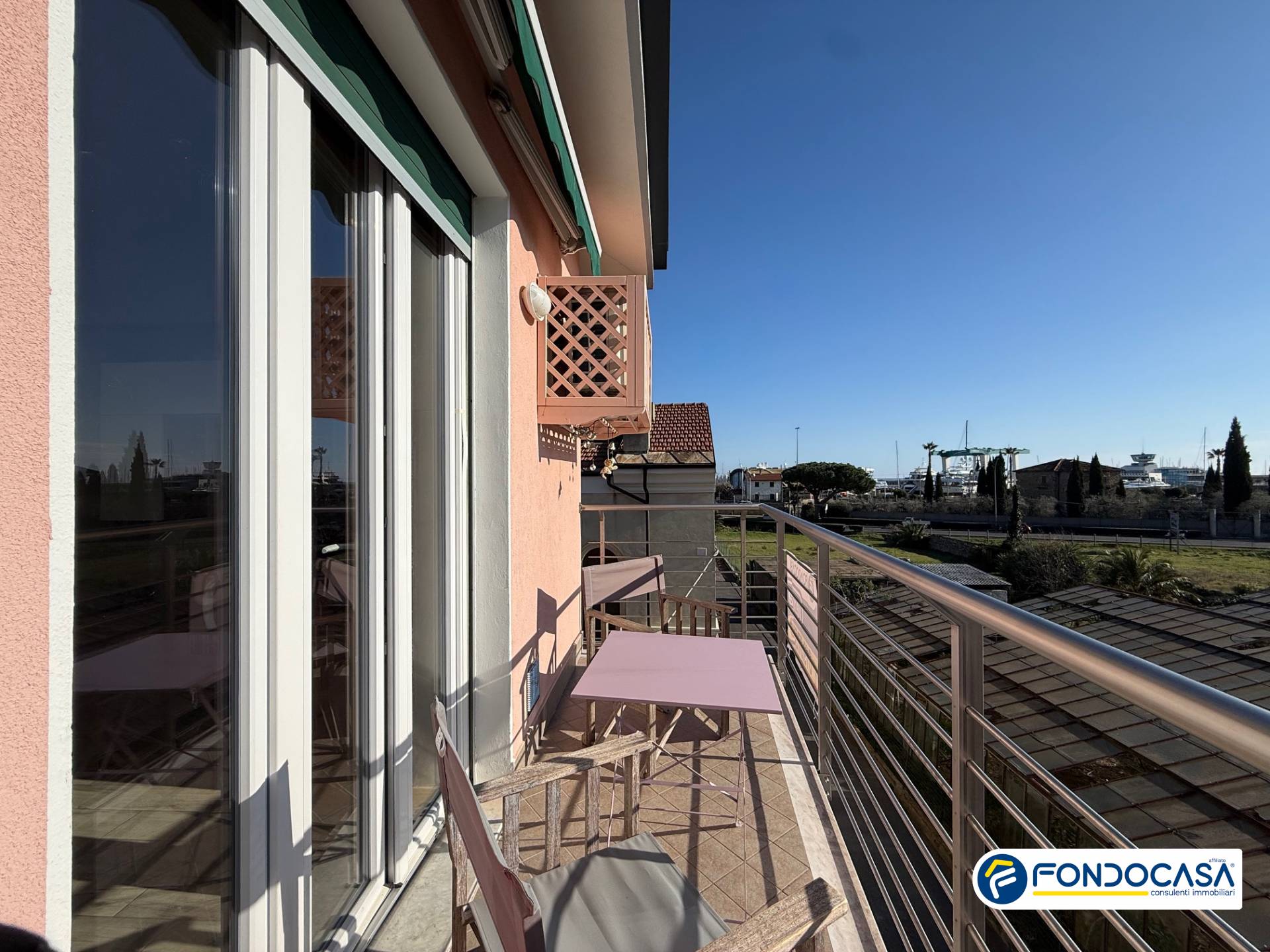Dotato di uno spazioso balcone con meravigliosa vista aperta sulle colline circostanti e sul porto, perfetto per trascorrere momenti di relax all'aria aperta.