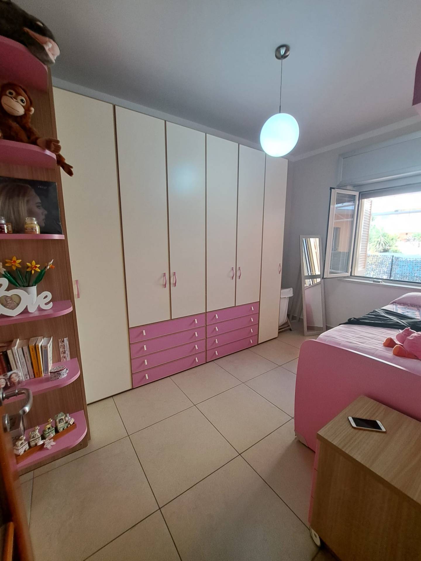 Fondocasa Marigliano propone in Esclusiva in zona centralissima Appartamento al piano rialzato in ottimo stato con ingresso, salone rifinito con controsoffittatura e mobile d'ingresso in cartongesso, piccola cappottiera e accesso a zona terrazzata con ingresso pedonale privato dall'esterno, cucina con uscita su ulteriore zona esterna pavimentata attrezzata con tendaggi e luci esterne, camera matrimoniale, 2 camerette e 2 bagni. L'immobile dispone di posto auto, box/cantinola. Riscaldamento autonomo. Si presenta in buonissime condizioni e dispone di bussole c/vetri dipinti e Infissi doppio/vetrocamera a taglio termico bicolore alluminio interno - bianchi esterni e napoletane in ferro.