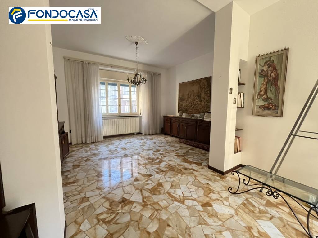 Nella zona residenziale della Villetta proponiamo appartamento di circa 170 mq. ubicato in palazzo d'epoca, posto al primo piano, con tre balconi e con possibilità di ascensore. L'ingresso è nel disimpegno alla genovese dal quale si accede al corridoio ed alle stanze. La cucina è abitabile ed è dotata di balcone, sono presenti tre spaziose camere da letto, di cui una con balcone, il bagno padronale con spazio sia per vasca da bagno che doccia, lo studiolo, il bagnetto di servizio, un ripostiglio ed il salone doppio molto luminoso ed anch'esso dotato di balcone. Nella vendita è compresa anche la cantina. Le spese condominiali sono contenute. La metratura importante permette una redistribuzione dei vani interni.