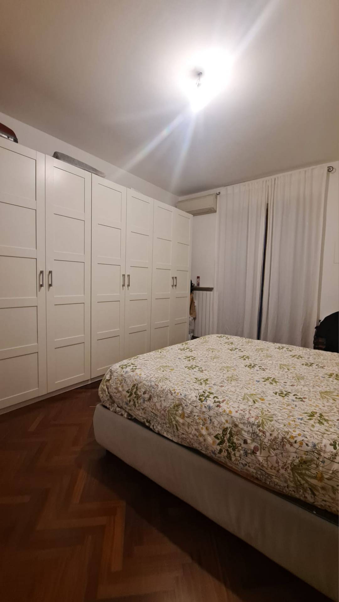Posto al quinto piano e composto da ingresso su spazioso disimpegno che conduce in uno signorile soggiorno contornato da balcone con affaccio sulla via Tiraboschi. Cucina con comodo passaggio su secondo balcone con affaccio all´interno del cortile, camera padronale, seconda camera, ripostiglio, 2 servizi di cui uno con vasca e secondo dotato di box doccia. Riscaldamento centralizzato regolabile, rinfrescamento da impianto ad aria condizionata presente in ciascuna camera. Completa la proprietà un'ampia e comoda cantina.
