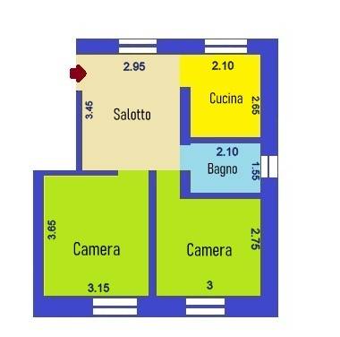 Internamente è composto da un ampio ingresso alla genovese, cucinotto, due camere e bagno con finestra.