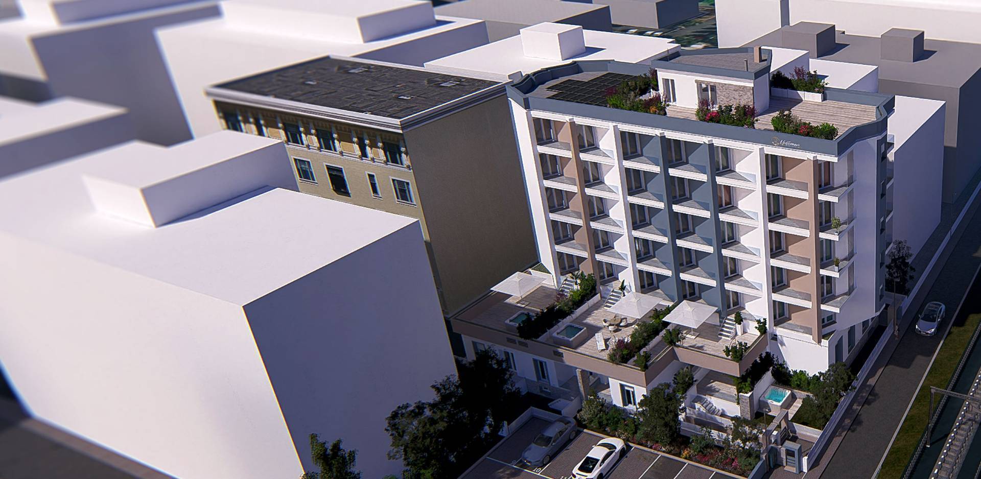 L'architetto Davide De Francesco è stato incaricato di trasformarlo in appartamenti residenziali, creando il condominio Mediterranèe con 39 lussuosi appartamenti, dotati di ogni confort e impianti avanzati, preservando lo stile.