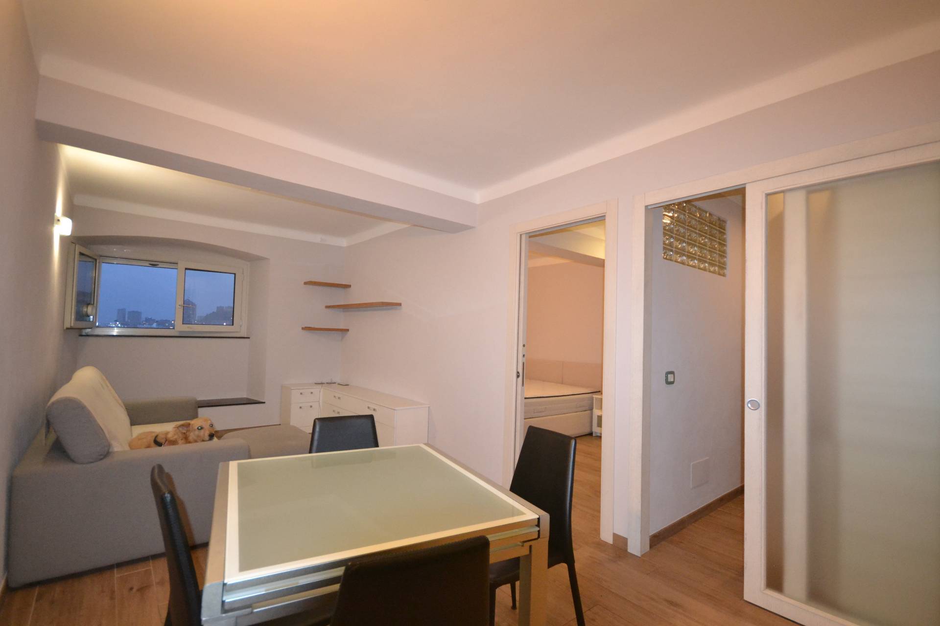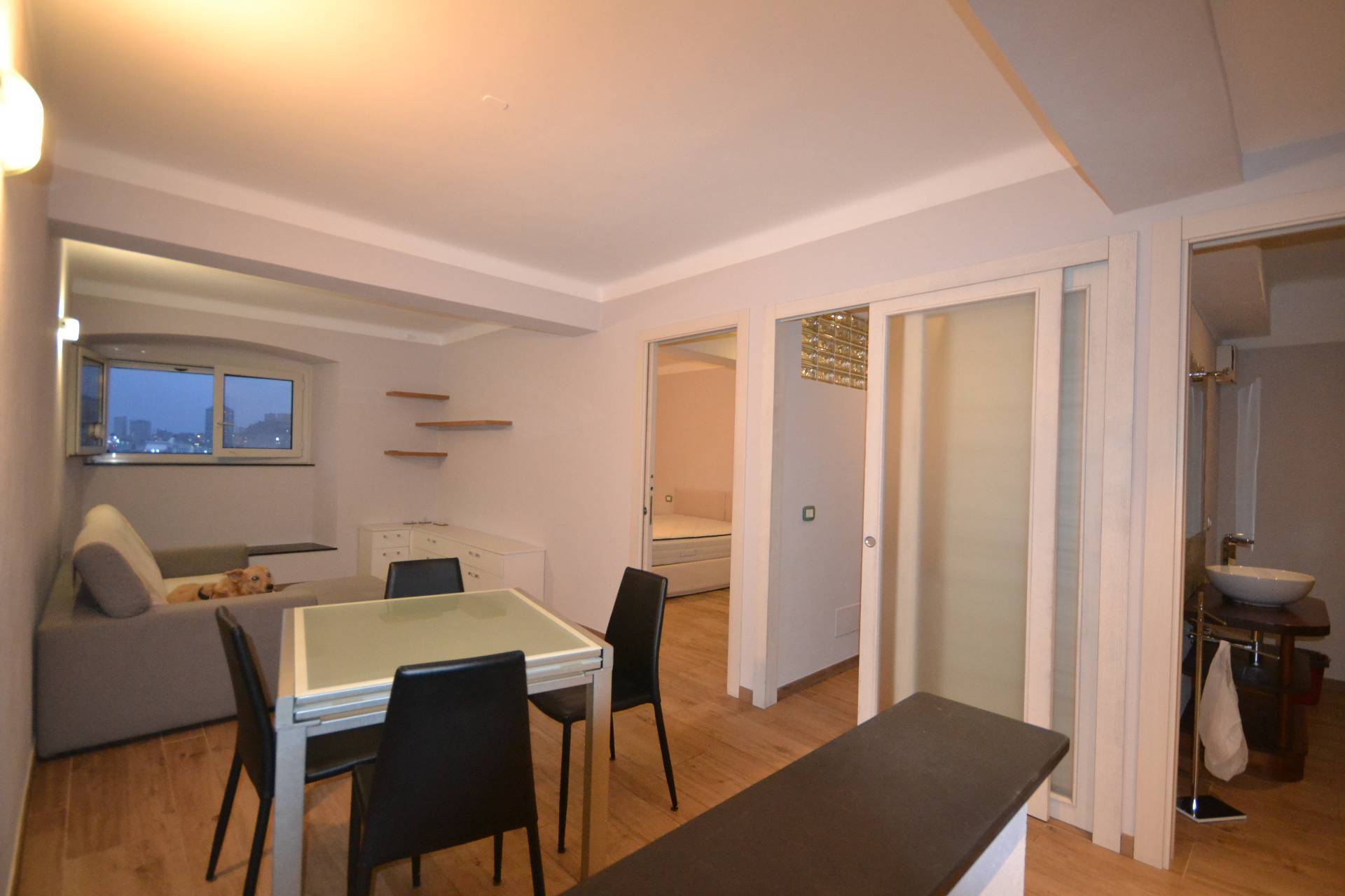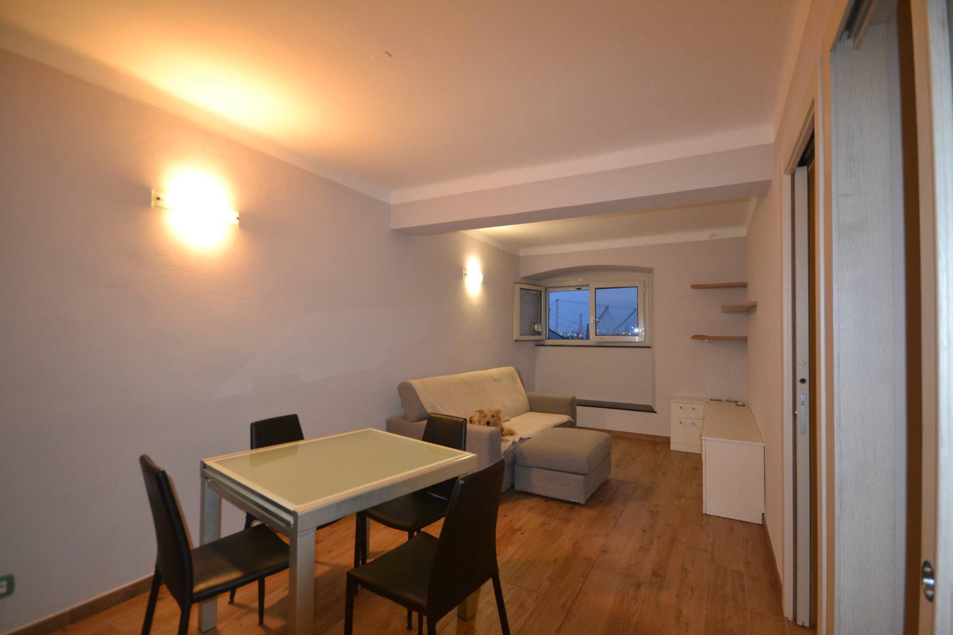 L'immobile è situato al sesto piano dotato di ascensore e di servizio di portineria e gode di vista panoramica su Porto Antico ed Acquario. L'appartamento, di 55 mq si presenta in ottime condizioni, in quanto è stato recentemente ristrutturato.