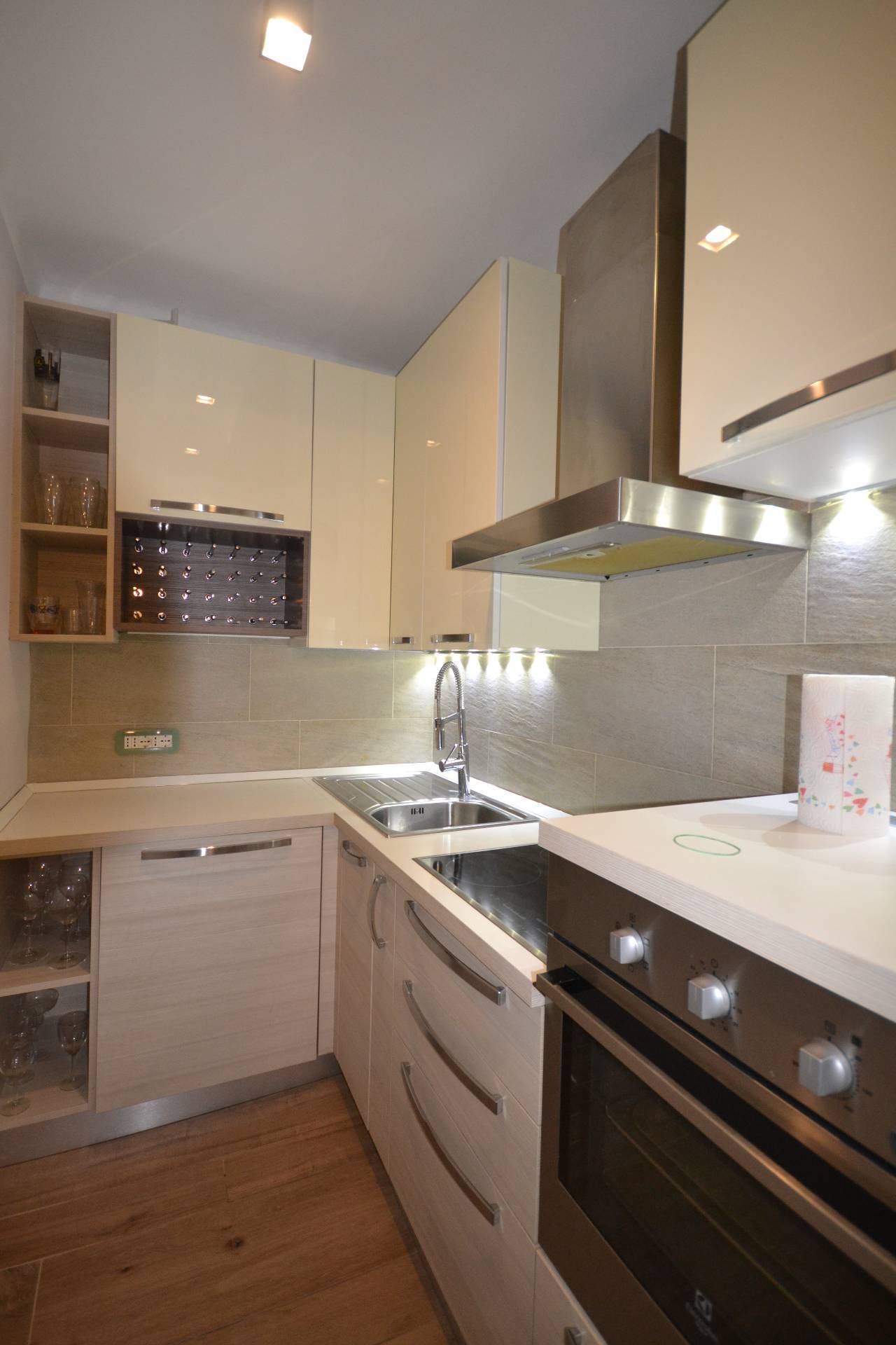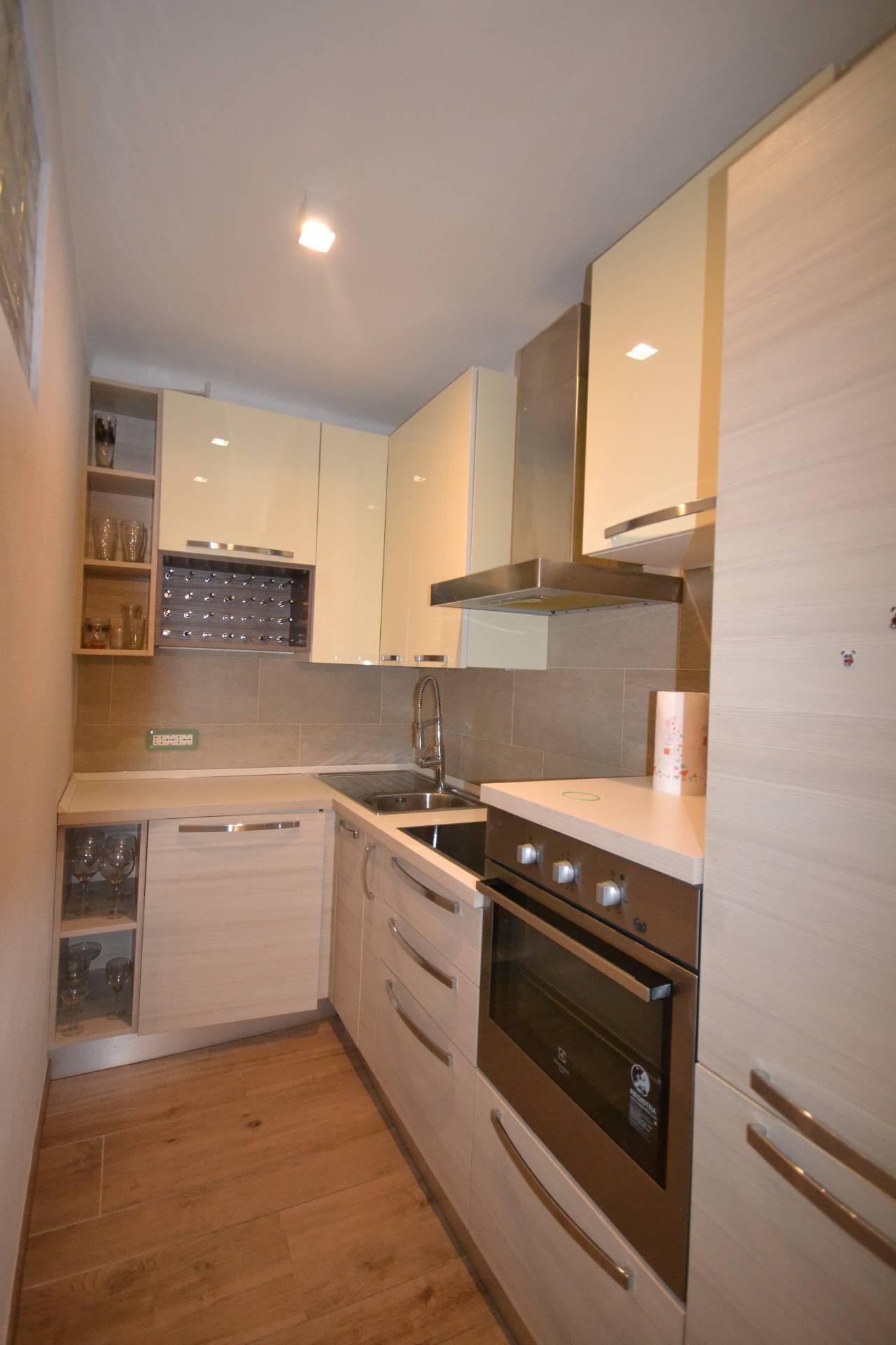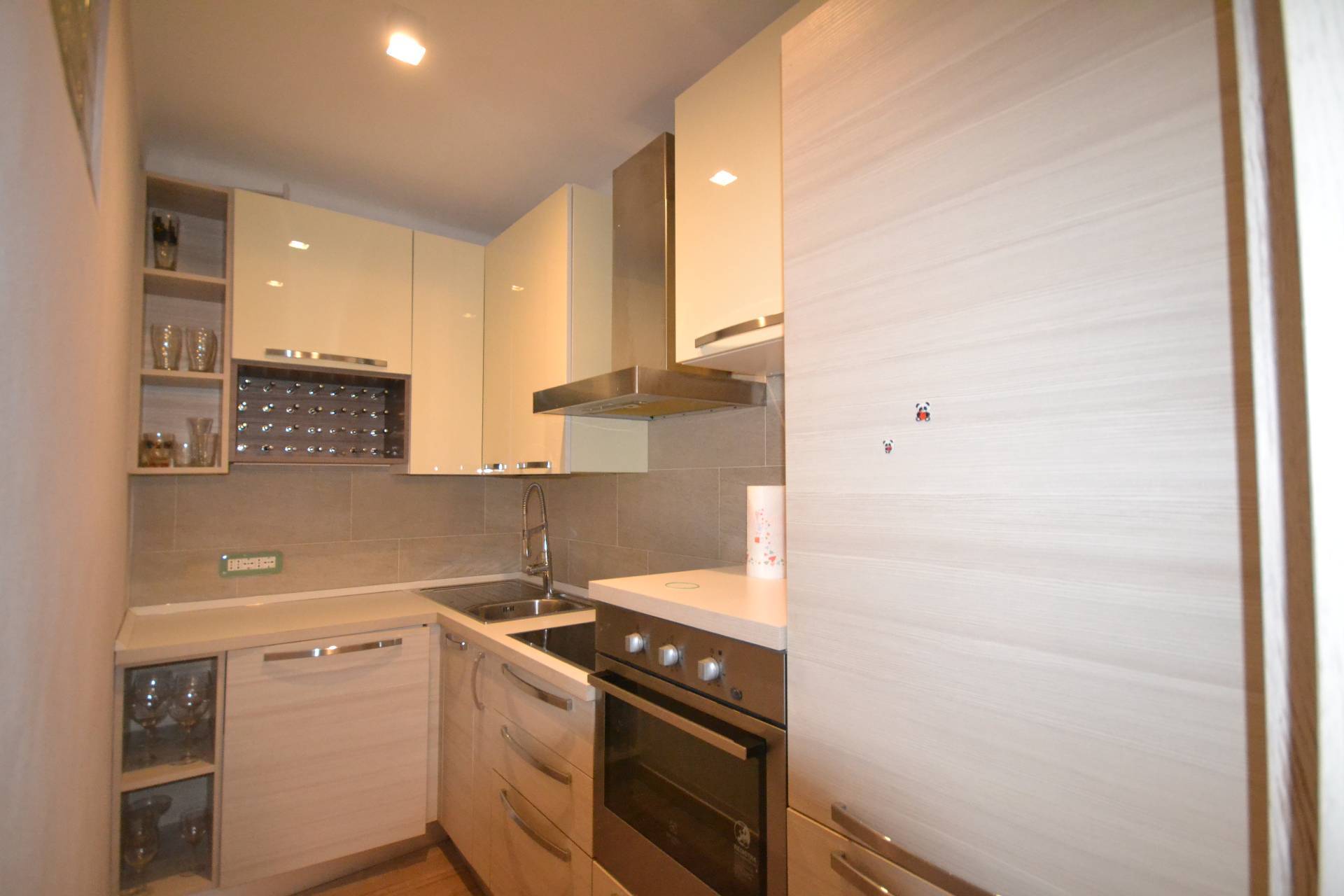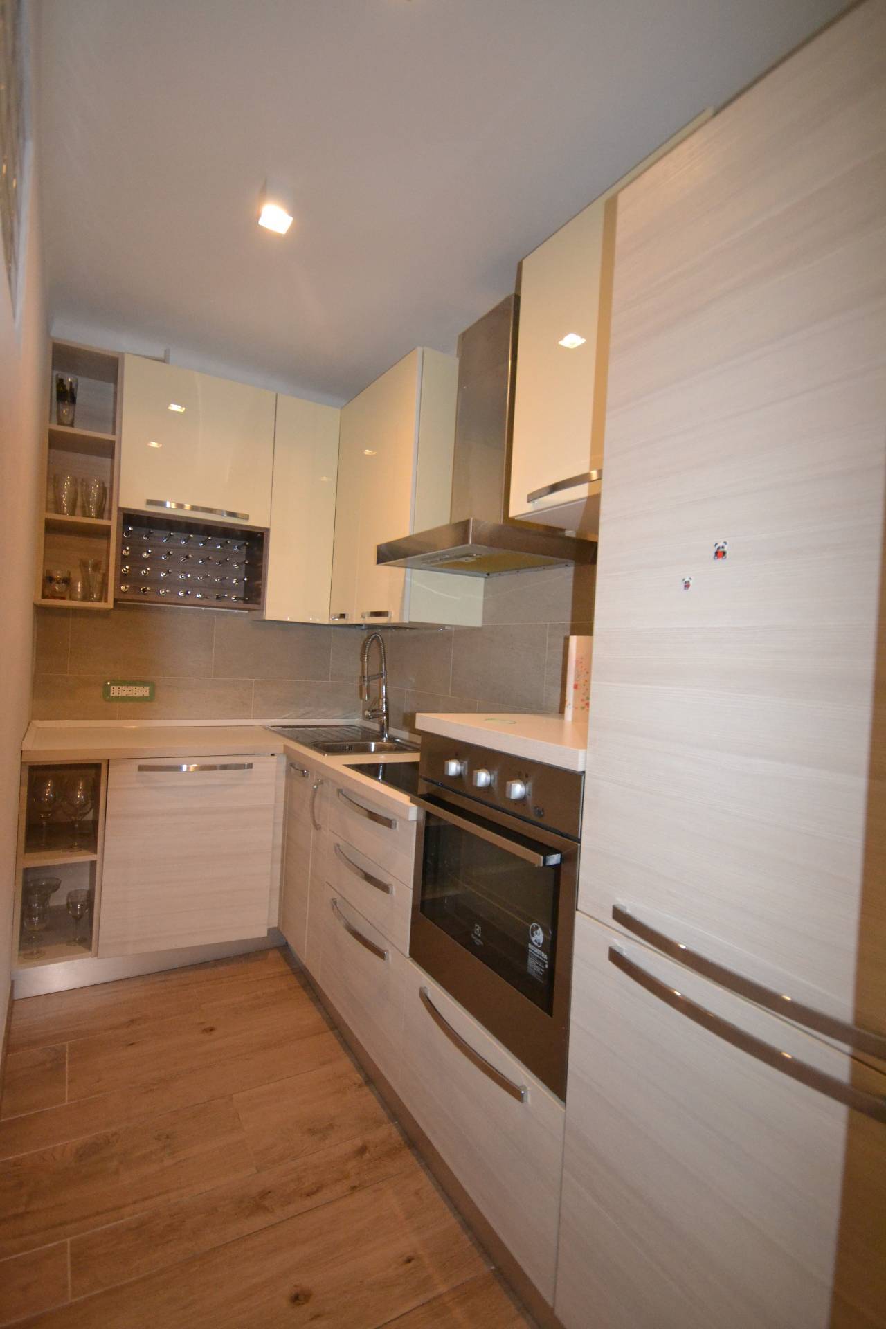 La zona giorno è composta da ingresso che si apre su ampio soggiorno, arredato con gusto ed eleganza, vi è un angolo cottura dotato di tutti gli elettrodomestici necessari. Per la zona notte è presente una camera da letto matrimoniale e per finire un ampio bagno dotato di box doccia.