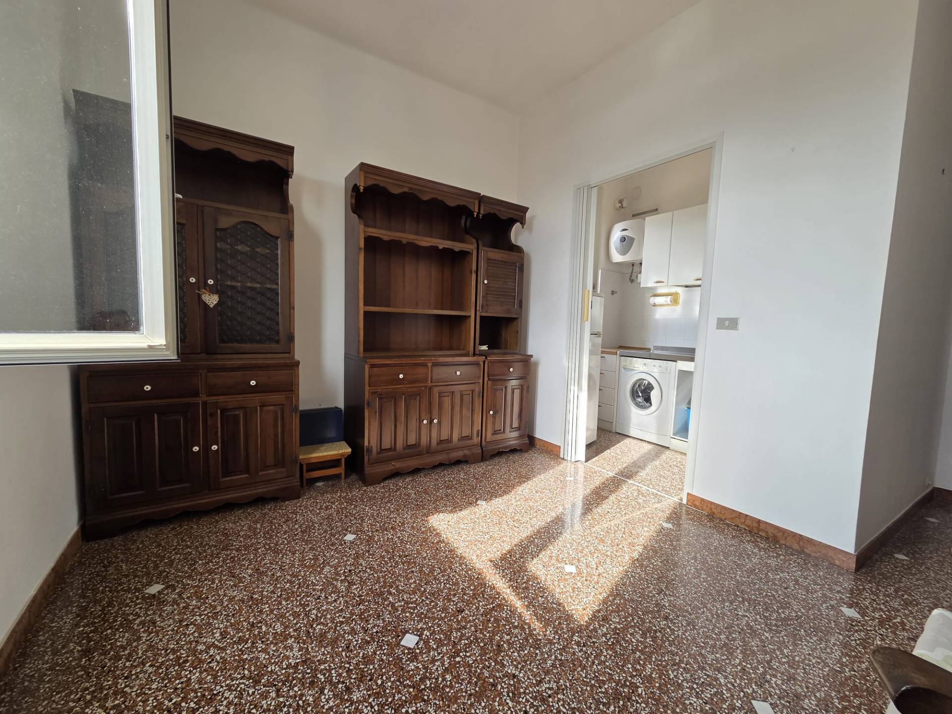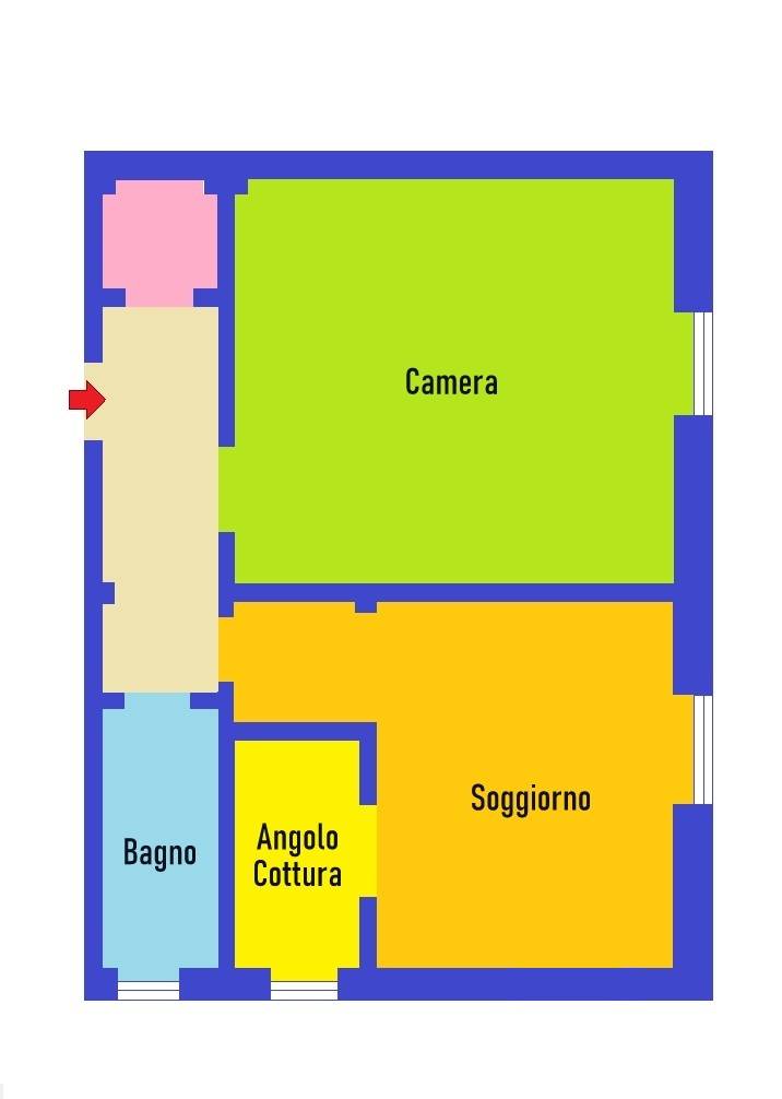 L'appartamento ha un superficie totale di 50 metri quadri circa così distribuiti: ingresso, cucina e tinello, ampia camera matrimoniale, bagno con doccia e finestra, ripostiglio.