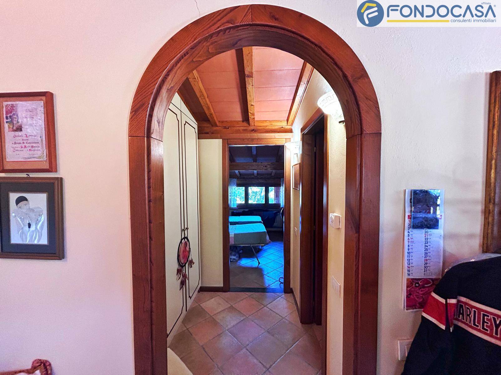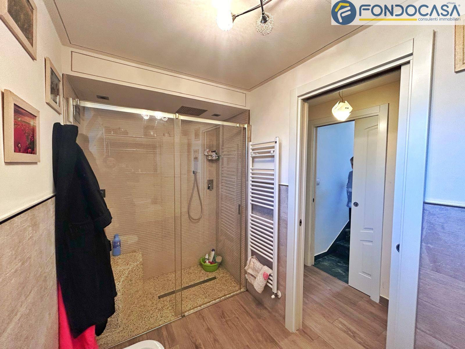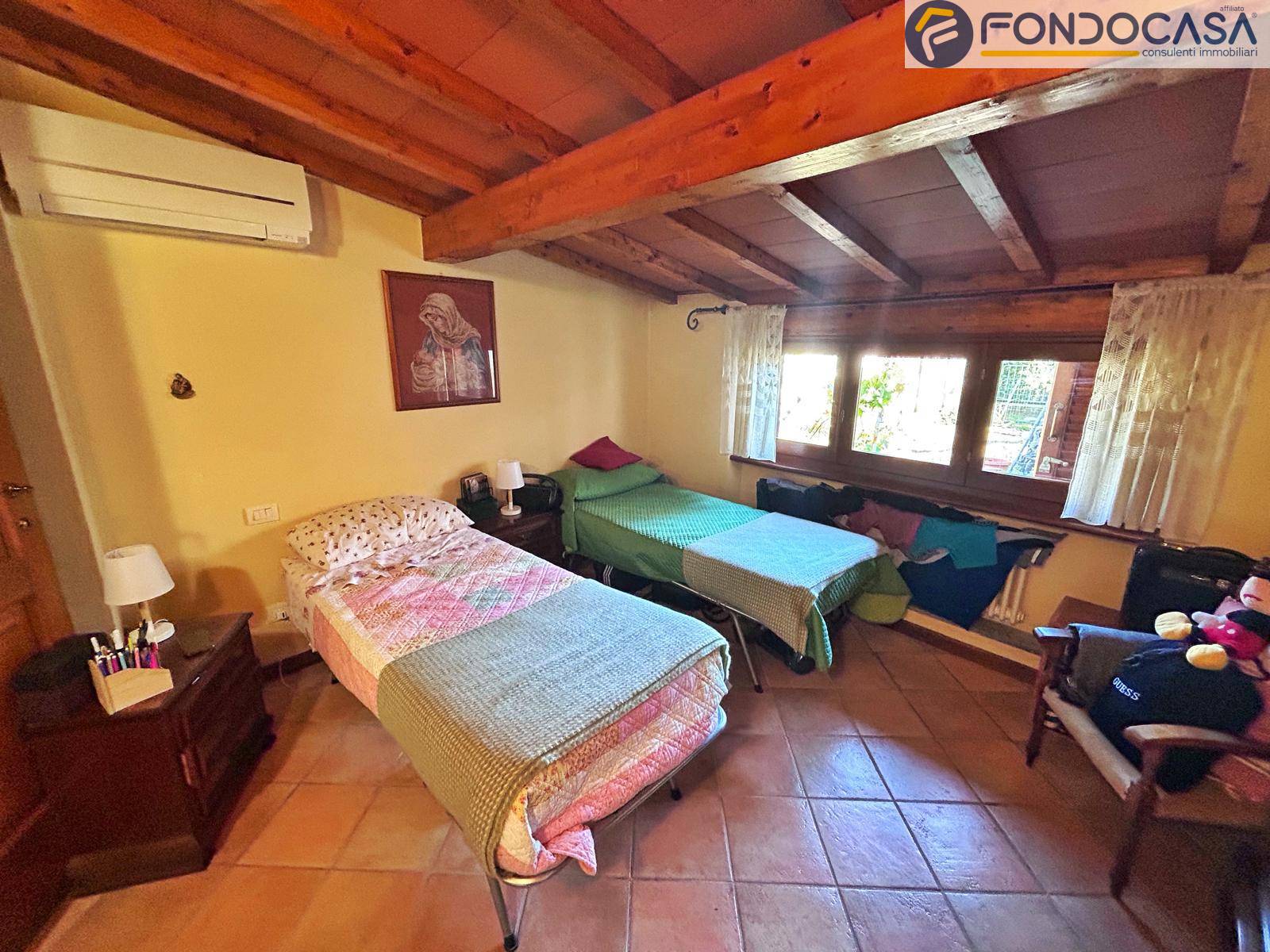 la villa si sviluppa su 3 livelli a piani sfalsati: al piano terra troviamo l'ingresso, cucina abitabile, bagno completo con box doccia, una camera da letto matrimoniale con vista sui monti circostanti, l'ampio e luminoso soggiorno con zona pranzo e accesso diretto ad una terrazza prendisole ideale per pranzi e cene all'aperto. Sul piano sfalsato invece abbiamo la seconda cucina (moderna e completamente accessoriata) con zona pranzo, la seconda camera da letto matrimoniale e bagno padronale con vasca. Ancora più sù, nella mansarda, c'è la terza camera da letto matrimoniale con cabina armadio. Scendendo incontriamo uno studio, bagno padronale con doccia a cascata, ideale per i momenti di relax e la quarta camera da letto matrimoniale, il tutto con accesso indipendente dall'esterno con una porta blindata.