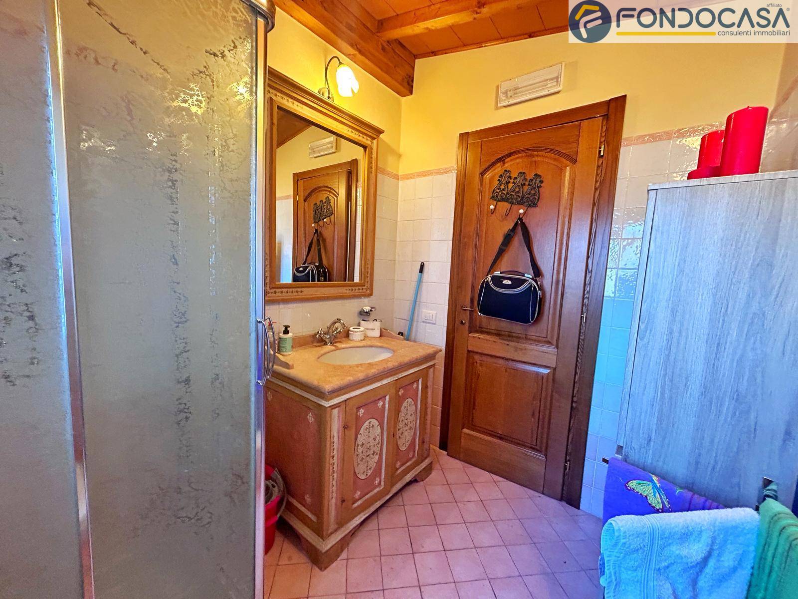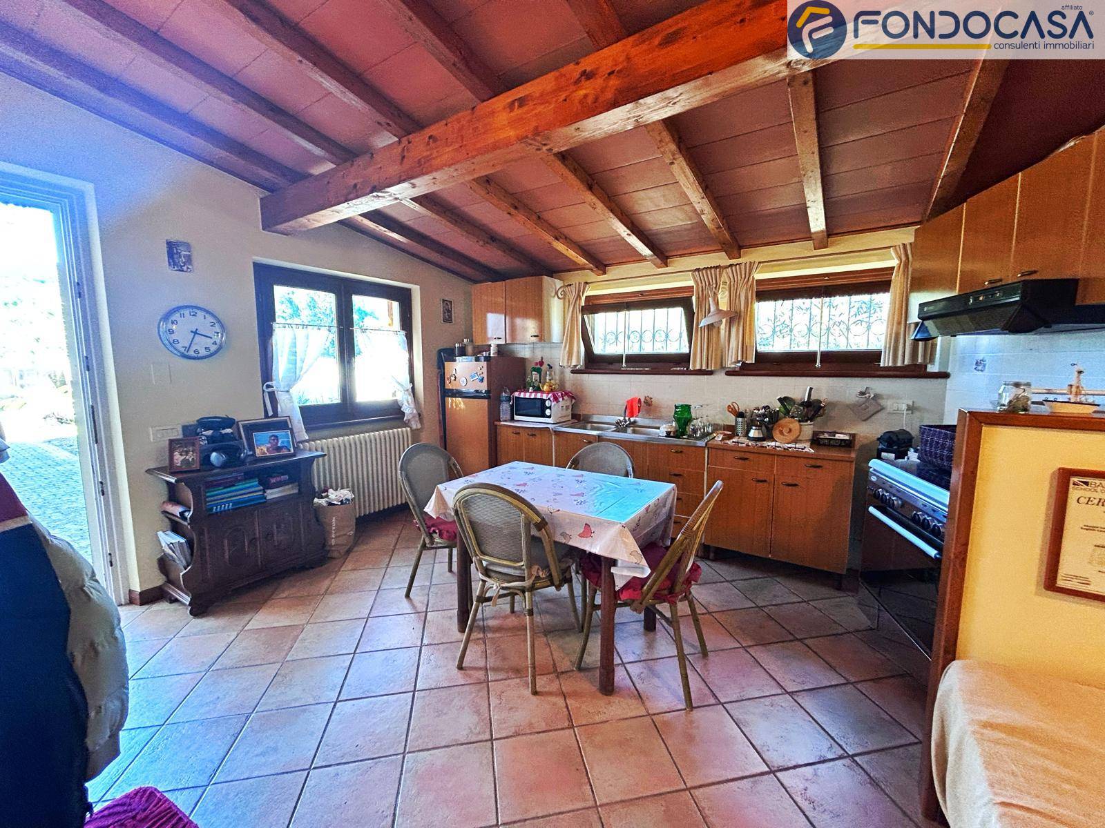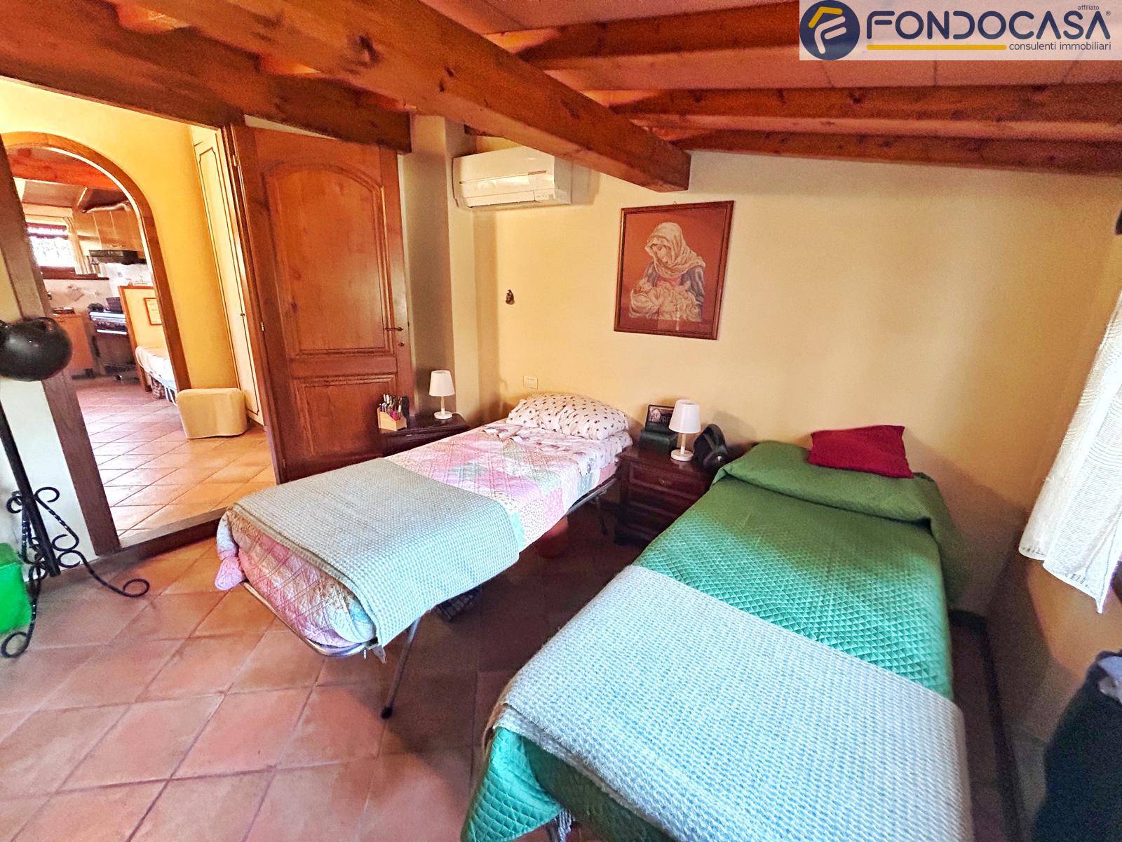 la villa si sviluppa su 3 livelli a piani sfalsati: al piano terra troviamo l'ingresso, cucina abitabile, bagno completo con box doccia, una camera da letto matrimoniale con vista sui monti circostanti, l'ampio e luminoso soggiorno con zona pranzo e accesso diretto ad una terrazza prendisole ideale per pranzi e cene all'aperto. Sul piano sfalsato invece abbiamo la seconda cucina (moderna e completamente accessoriata) con zona pranzo, la seconda camera da letto matrimoniale e bagno padronale con vasca. Ancora più sù, nella mansarda, c'è la terza camera da letto matrimoniale con cabina armadio. Scendendo incontriamo uno studio, bagno padronale con doccia a cascata, ideale per i momenti di relax e la quarta camera da letto matrimoniale, il tutto con accesso indipendente dall'esterno con una porta blindata.
