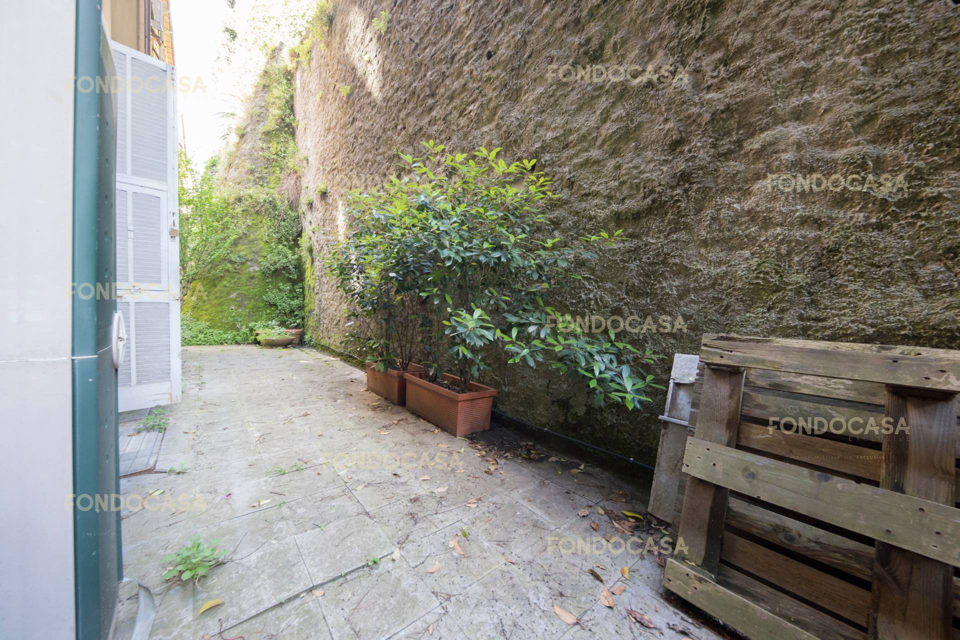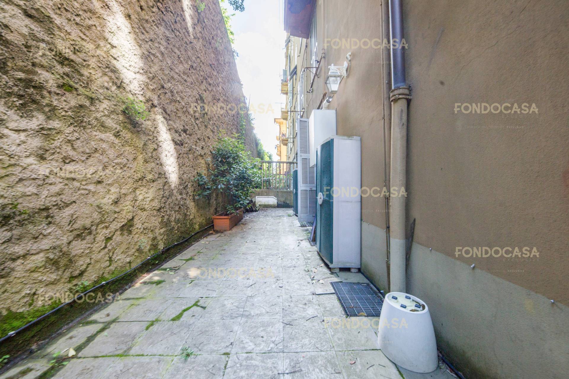 Lo spazio esterno con ampio e comodo accesso carrabile da Via Marcello Durazzo, è un giardino di circa 100 mq, su cui espone gran parte dell' appartamento e dove vi si possono parcheggiare due automobili, e con piccoli interventi, si può ampliare la metratura per recuperare un terzo posto auto e posti moto.