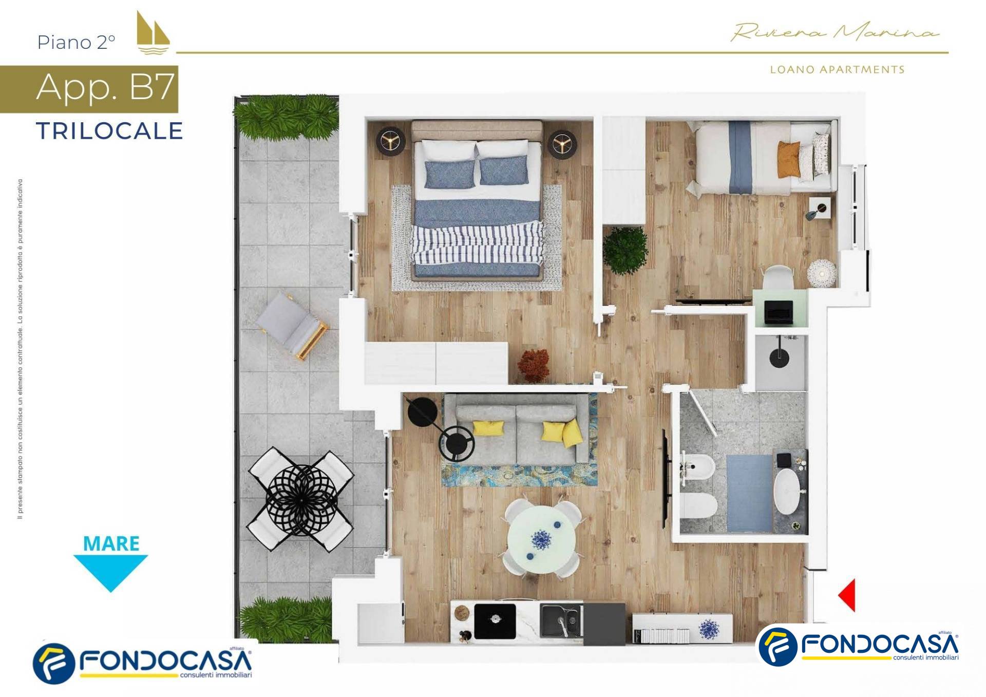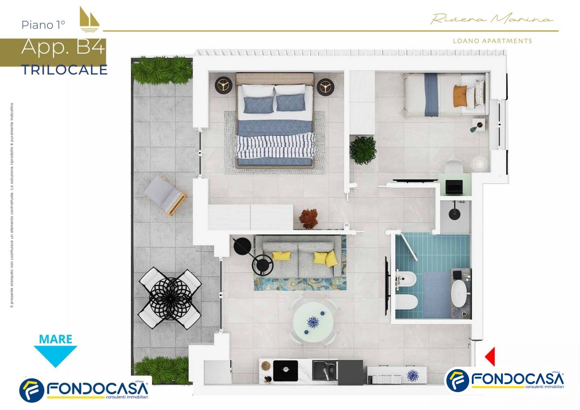 "Riviera Marina - Loano Apartments" eleva lo standard dell'abitare moderno, con soluzioni abitative innovative che massimizzano l'ingresso di luce naturale e offrono viste spettacolari. Ogni appartamento è progettato per garantire privacy e un ambiente estremamente luminoso, con finiture di alta qualità che combinano eleganza e funzionalità. L'efficienza energetica è una priorità, con appartamenti appartenenti alla classe A4.