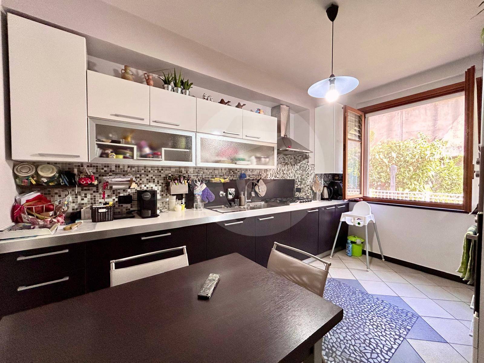 In zona residenziale, a due passi dal mare, proponiamo villetta a schiera disposta su tre livelli. Internamente composta da ampio soggiorno con balcone vista mare, cucina abitabile, balcone e ripostiglio/bagno, salendo al piano superiore troviamo la zona notte con le due camere da letto, secondo balcone e secondo bagno. L'ultimo piano mansardato è un unico locale di 20 mq attualmente adibito come terza camera da letto e relativo servizio. L'appartamento gode di una vista mare e panoramica sulla collina. Completano la proprietà il giardino, la cantina e il box auto. Soluzione perfetta da vivere come abitazione principale. Da vedere!