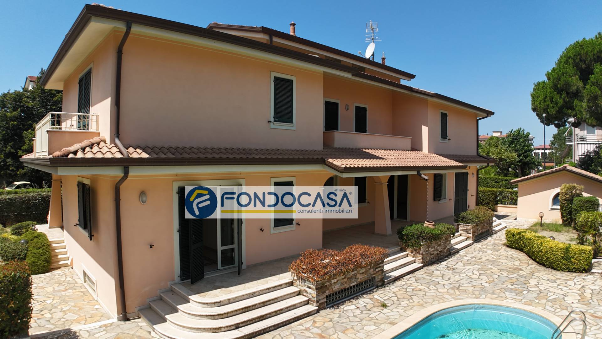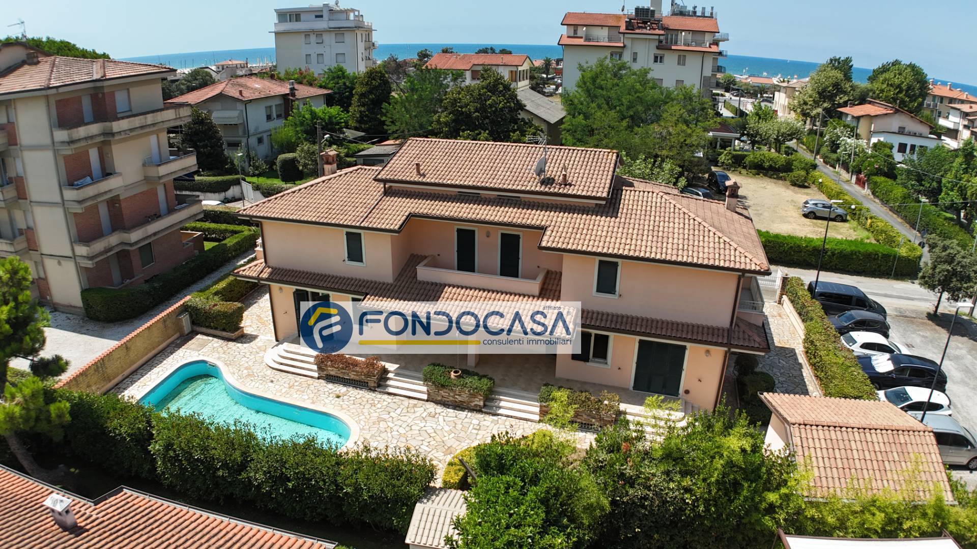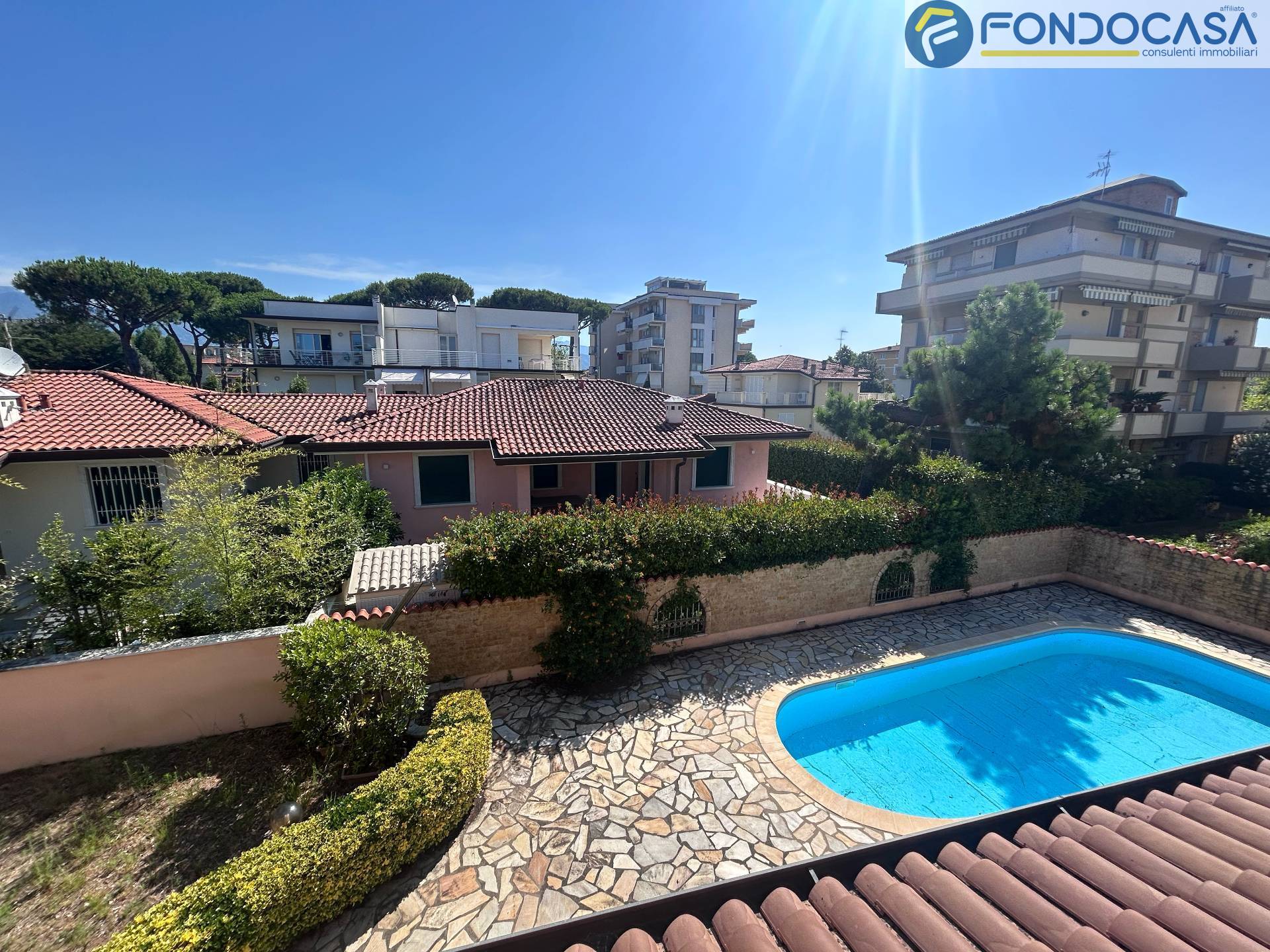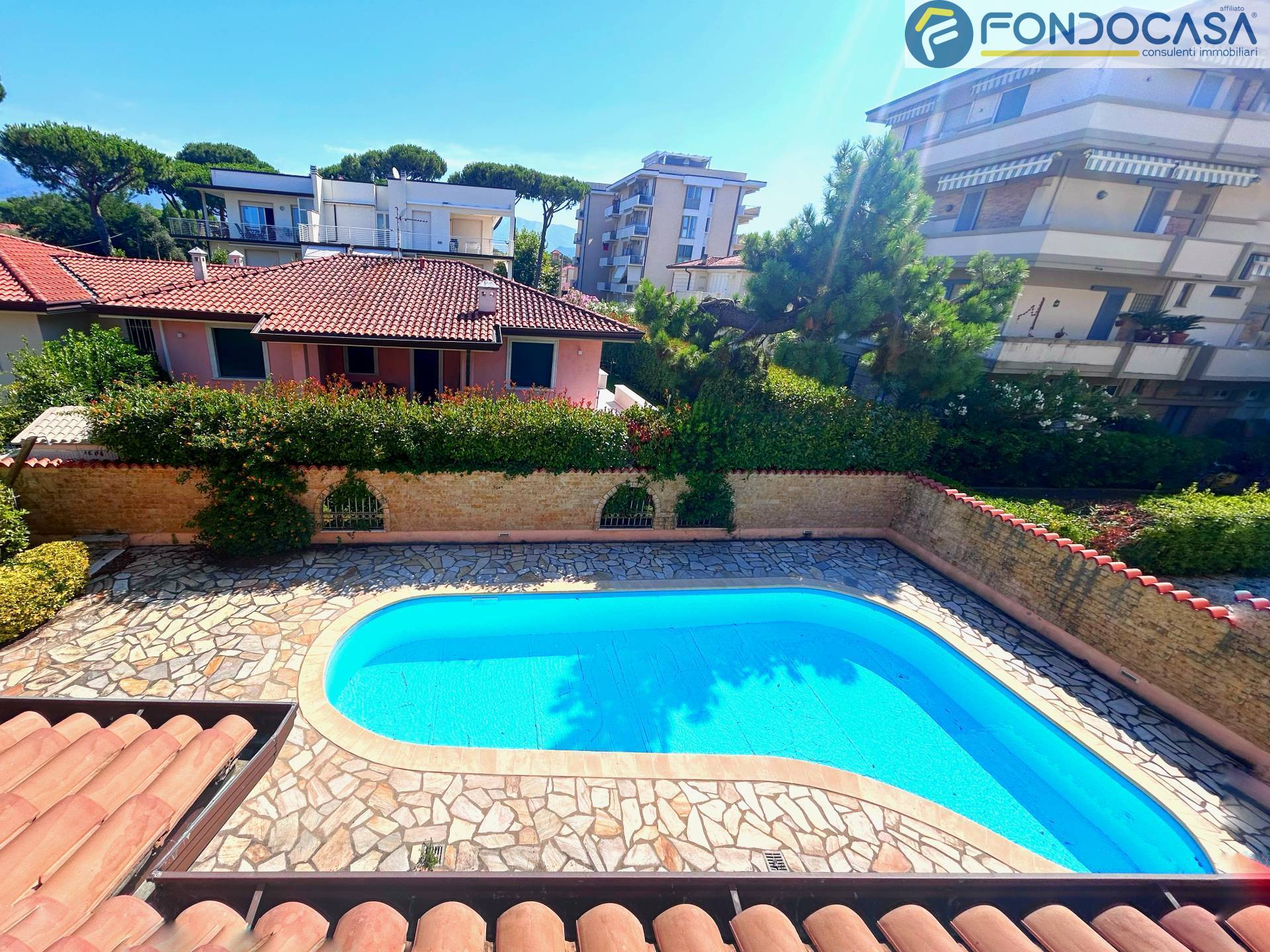 A Lido di Camaiore, in località Secco, a soli 200m dalle spiagge, proponiamo splendida villa con piscina, libera sui quattro lati. La residenza, costruita nel 2010, si sviluppa su quattro livelli, di cui l'ultimo mansardato con una bella terrazza panoramica vista mare. Dispone di 5 camere con bagno en-suite ed una grandissima taverna con predisposizione per una sauna e vari locali polifunzionali che potrebbero diventare una sala cinema, palestra e un grande spazio per le cene e le occasioni speciali. Inoltre, completano la proprietà la dependance adiacente all'immobile con ingresso indipendente, 2 passi carrai, una zona prendisole e il box con serranda elettrica. L'immobile si presta per diventare un B&B di alto livello grazie alla sua posizione strategica e alla qualità costruttiva e delle finiture...