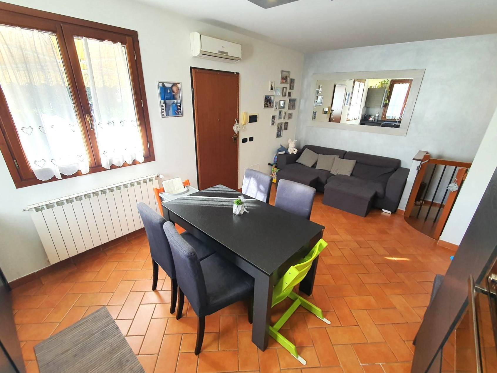 L´ingresso conduce alla zona giorno open space composta da soggiorno-pranzo con angolo cottura, luminosa e ben distribuita.