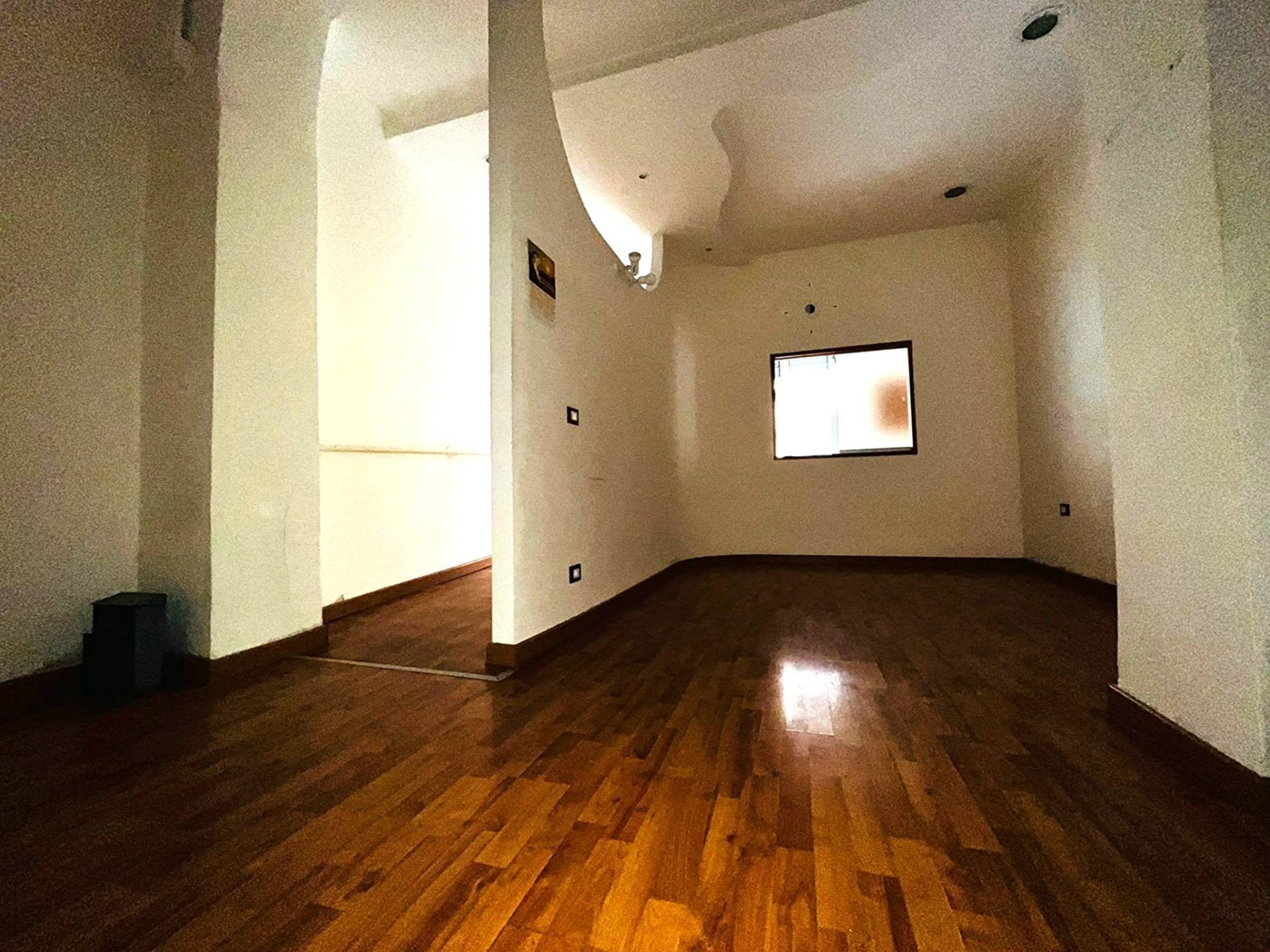 L'immobile si trova a piano terra, con una vetrina fronte strada e con una superficie totale di 57 mq. diviso in ingresso, 2 vani e 2 bagni. L'immobile ha un accesso, nella parte retrostante, al cortile in comune.