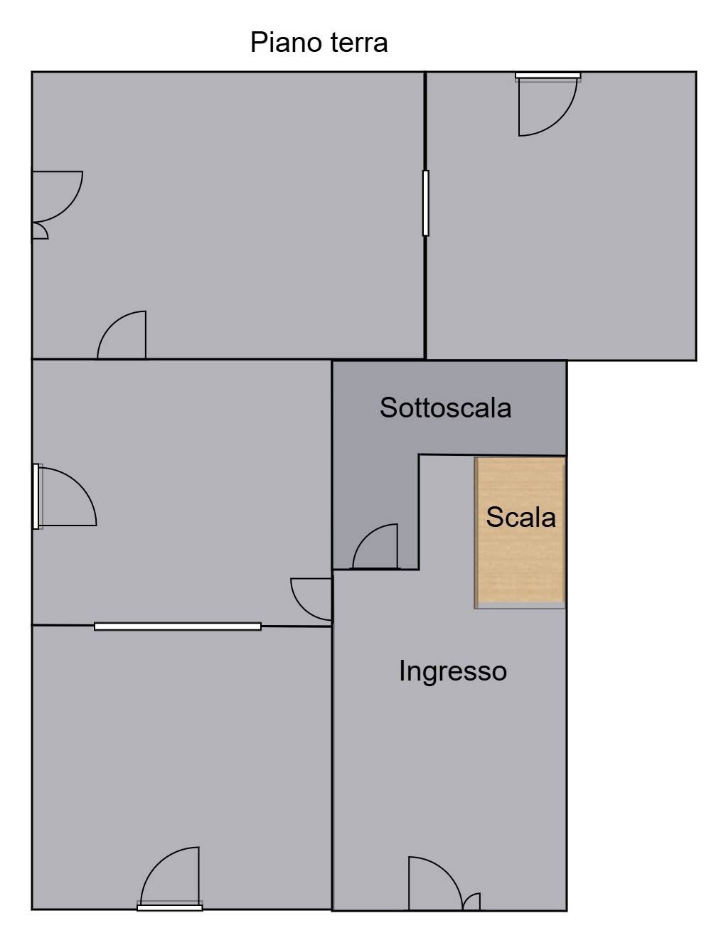 - Piano terra: 4 locali già definiti, ideali per realizzare zona giorno, cucina, servizi o spazi multiuso.