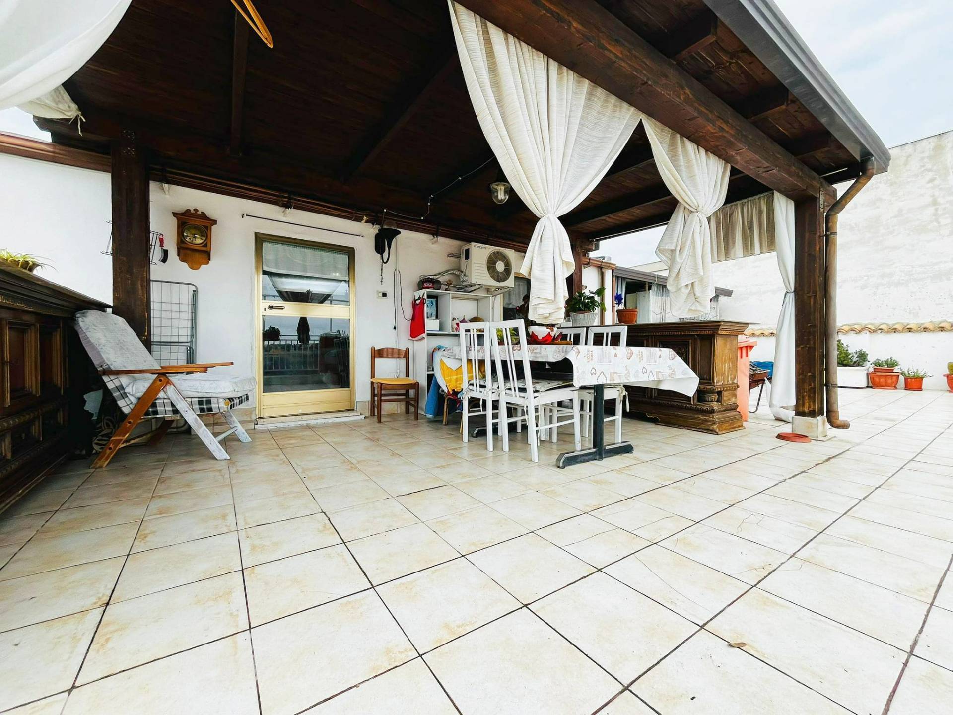 Ma non finisce qui! Annesso all'appartamento, al piano superiore troviamo la vera chicca... una meravigliosa zona giorno con cucina in muratura e camino, un'ulteriore camera da letto, bagno con doccia, un piccolo ripostiglio e soprattutto un meraviglioso terrazzo a livello dall'ampia metratura dove poter vivere le vostre giornate con amici e parenti in piena tranquillità.