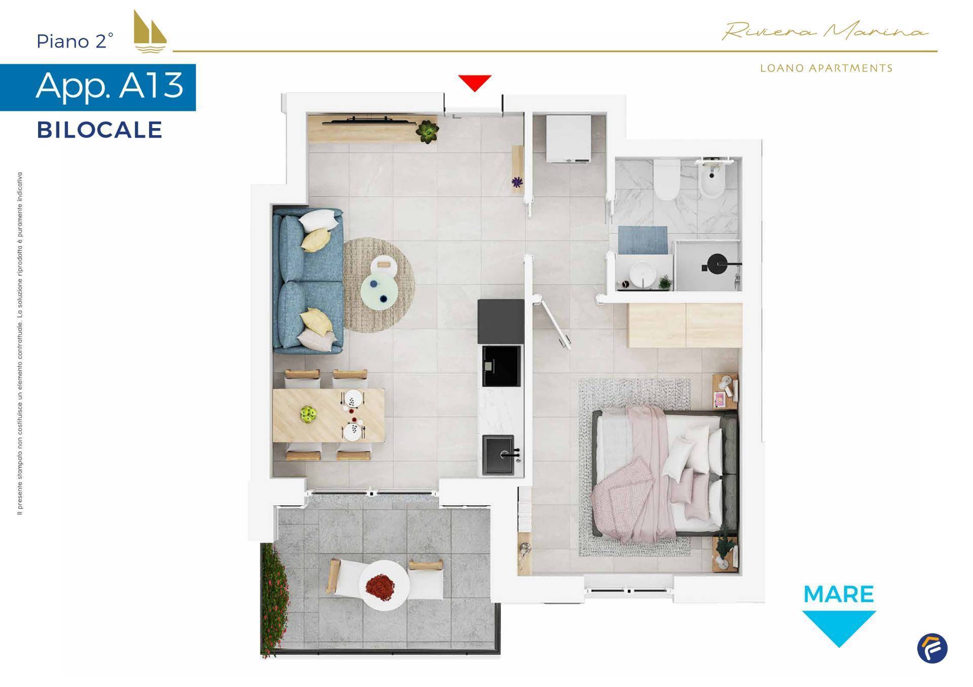 Con una vista dominante e aperta sul porto di Loano, fiore all'occhiello della "Riviera delle Palme", "Riviera Marina - Loano Apartments" si pone come nuovo standard di innovazione e riqualificazione del territorio. I nuovissimi 29 appartamenti saranno realizzati là dove un tempo sorgeva la residenza "La Quiete", che sarà demolita e ricostruita dando nuova vita a una parte importante del territorio.