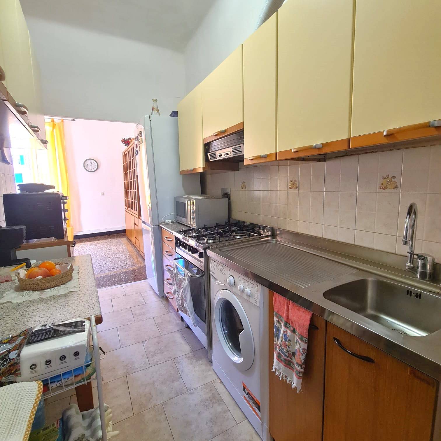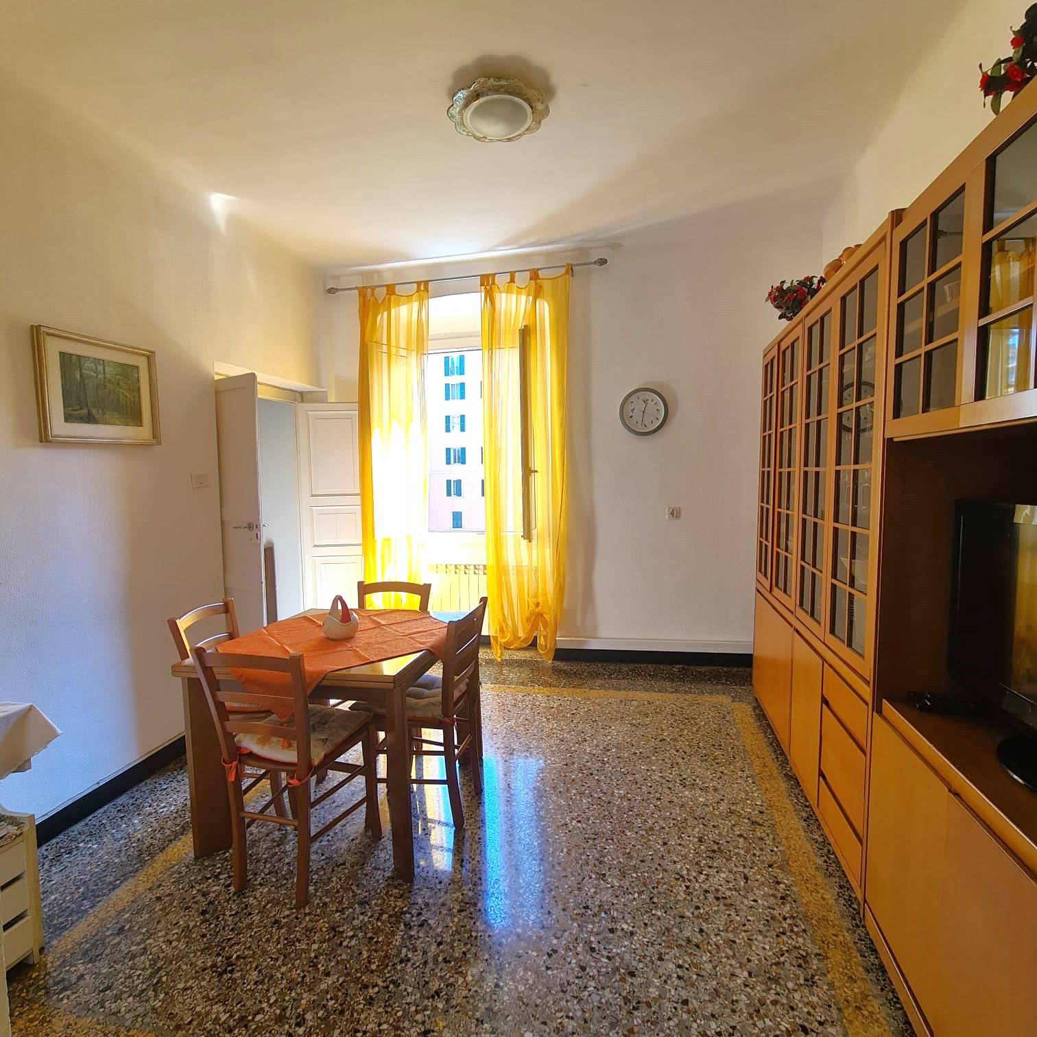 Piazza Ghiglione: Appartamento di 6 vani in buono stato, composto da ingresso in ampia sala alla genovese, cucina con tinello, 2 camere, bagno e dispensa. Riscaldamento termo autonomo e arredamento compreso.