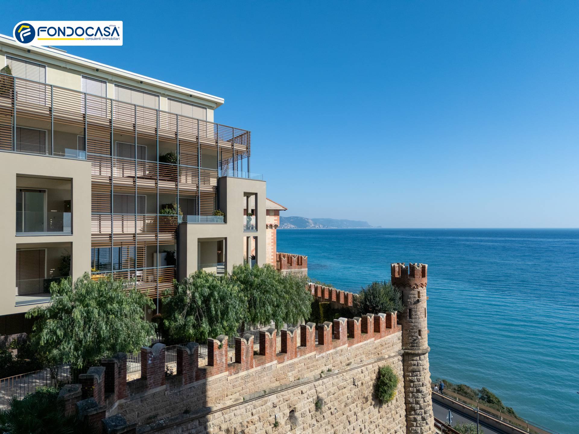 Borghetto Santo Spirito - A 10 km da Alassio, un affascinante castello storico oggetto di totale ed accurato restauro conservativo, ospita all'interno delle sue mura imponenti, una nuova costruzione in cui antico e moderno si fondono per creare nuove soluzioni abitative affacciate direttamente sul mare in un contesto esclusivo.