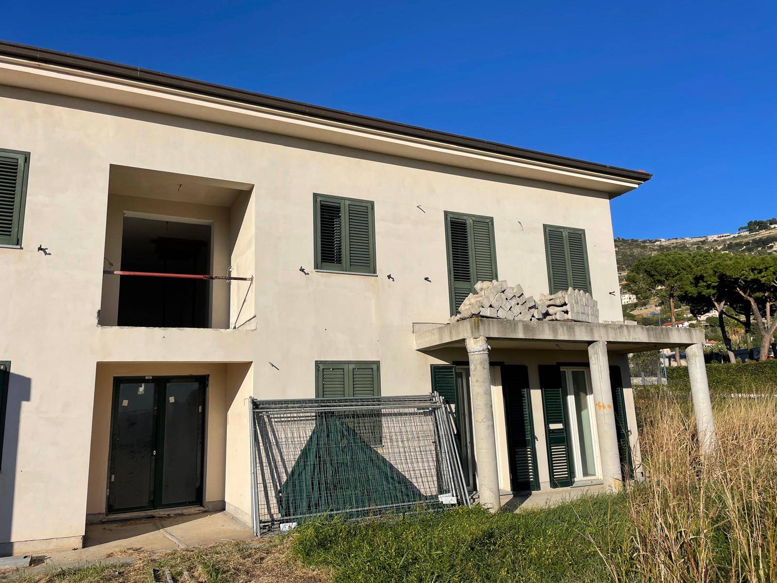 Appartamento in vendita a Ventimiglia Località Latte - In villa di nuova costruzione, suddivisa da 4 unità abitative, disponiamo di un appartamento di circa 80 mq. in fase di ultimazione posto al piano terra con splendida vista mare. L'alloggio è composto da ingresso nell'ampia zona giorno con cucina a vista, due camere, due bagni finestrati con disimpegno, corte di 100 mq. e ampio giardino di 300 mq. Un box auto e due cantine completano la proprietà. I lavori di ultimazione con finiture di pregio permettono attualmente la personalizzazione delle finiture interne, un ampliamento di 30 mq. ed eventuale ridistribuzione degli spazi. Possibilità di realizzare una piscina interrata di 40 mq.
