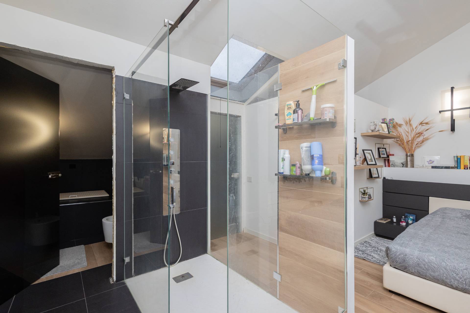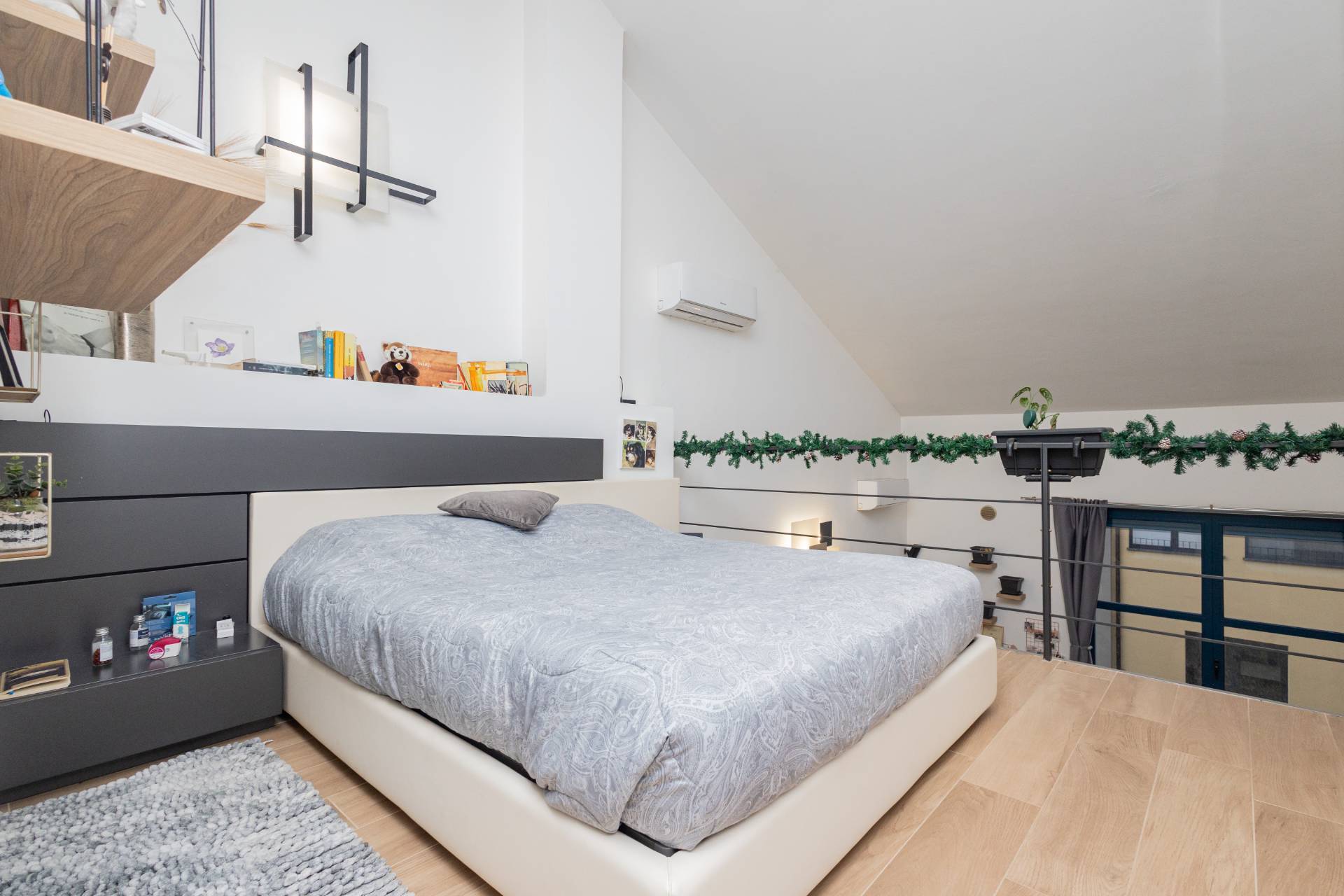 La soluzione sita ad un secondo piano con ascensore risulta così composta: ingresso su ampio salone doppio open space con cucina a vista, bagno con vasca e ripostiglio; al piano superiore ampia camera matrimoniale con cabina armadio e bagno con doccia.