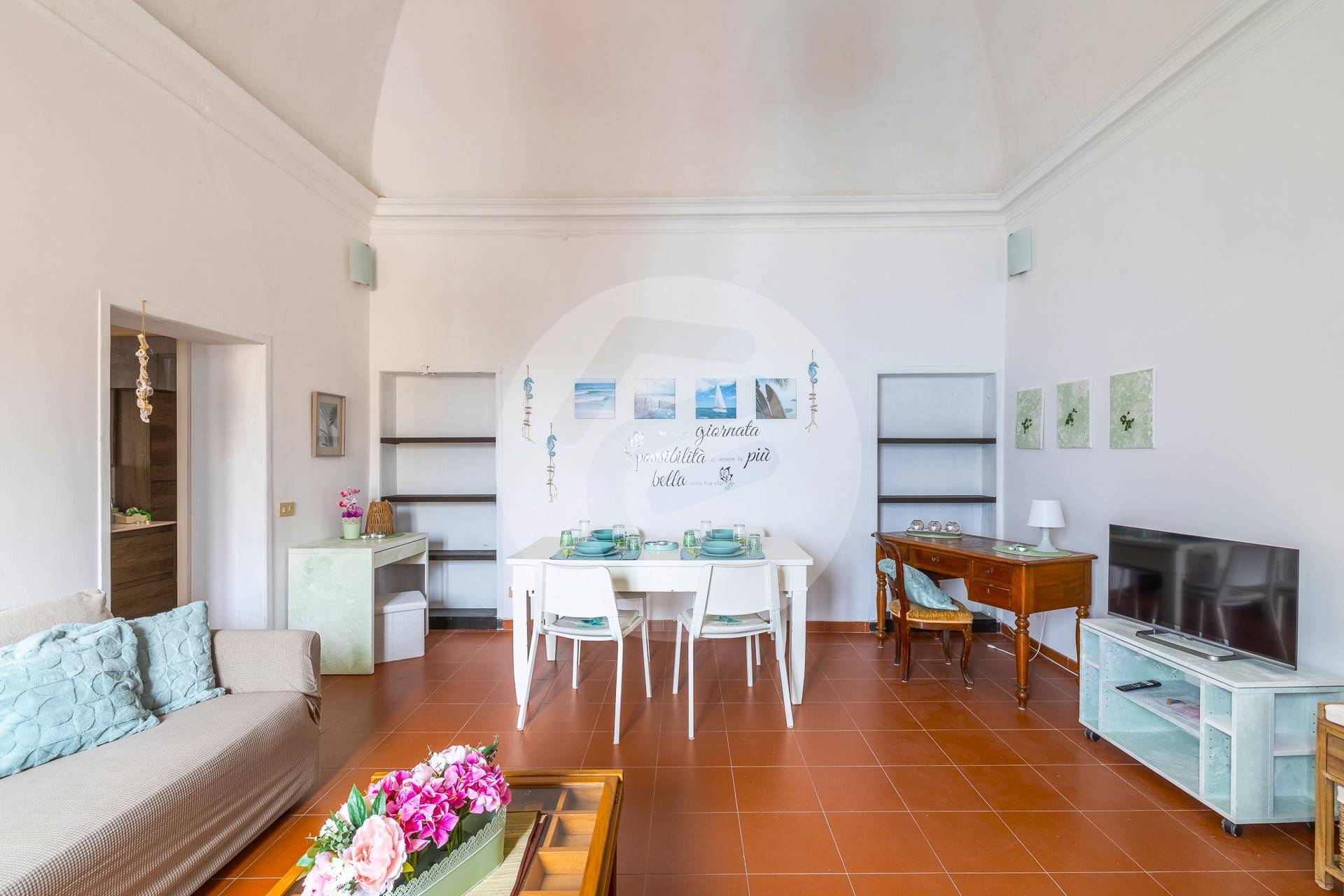 Con una superficie totale di 95 metri quadrati, l'immobile è composto da luminoso soggiorno, cucina separata, due camere matrimoniali e un bagno. L'appartamento è caratterizzato da alti soffitti a volte che rispettano lo stile originario, ampi spazi interni che si presentano in buone condizioni e pronti per essere abitati. Il riscaldamento è autonomo e gli infissi, di recente installazione, sono in alluminio dotati di doppi vetri per garantire il massimo confort anche in materia di risparmio energetico ed isolamento acustico.