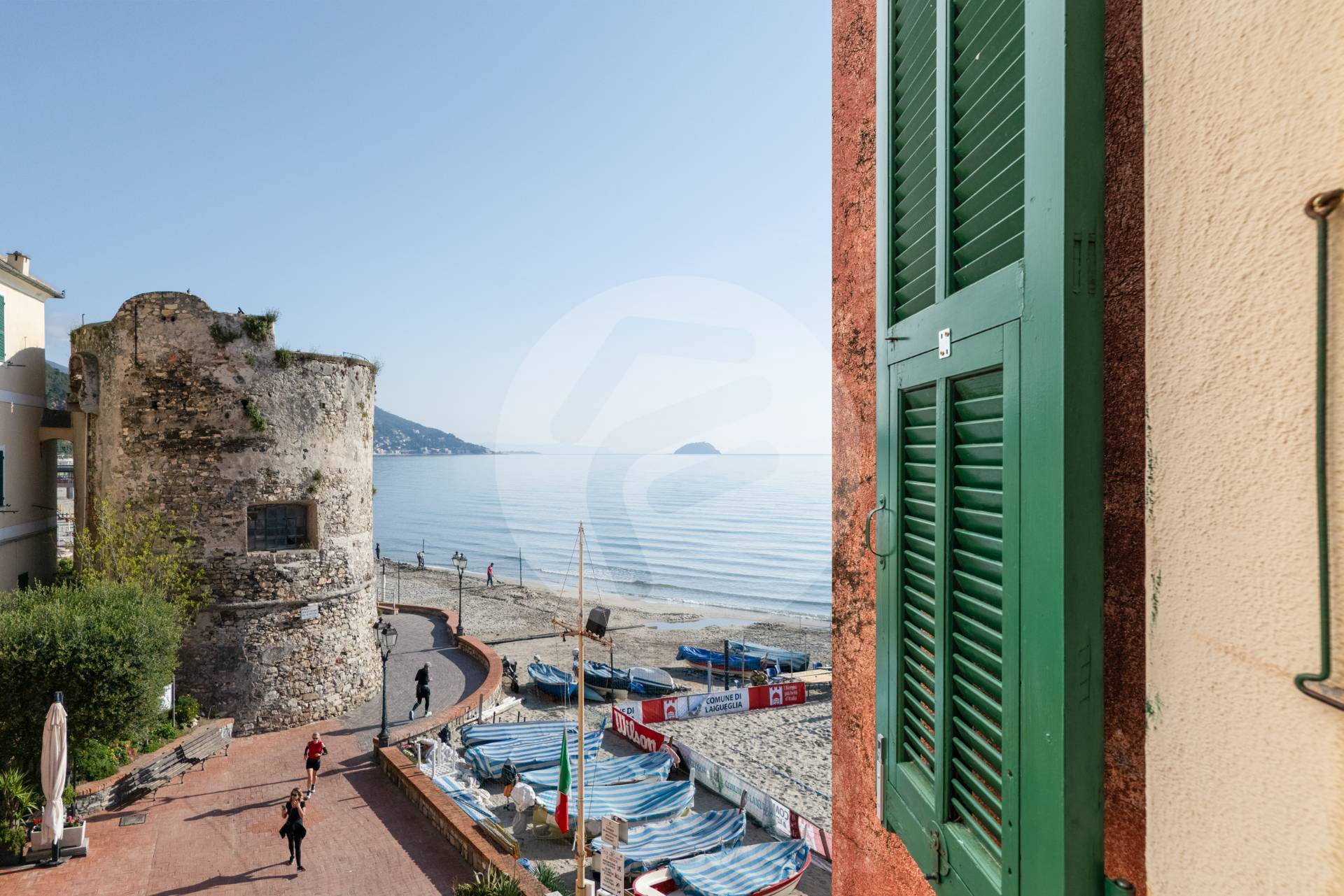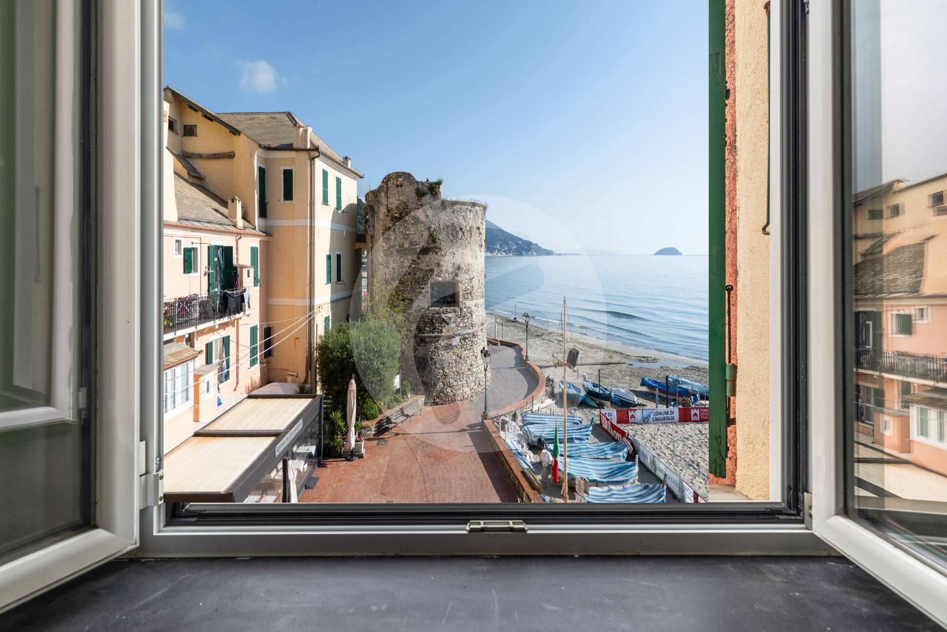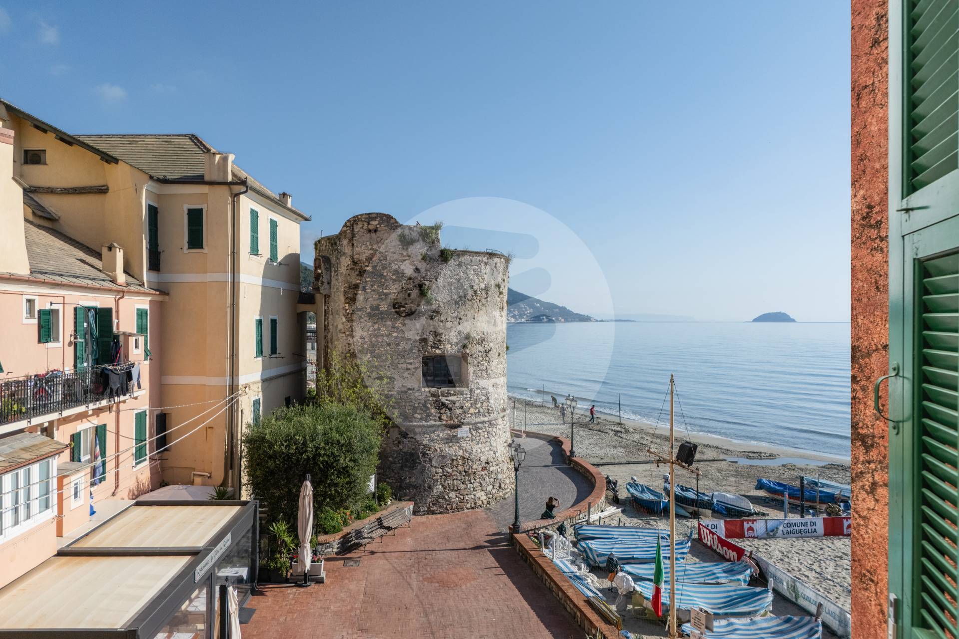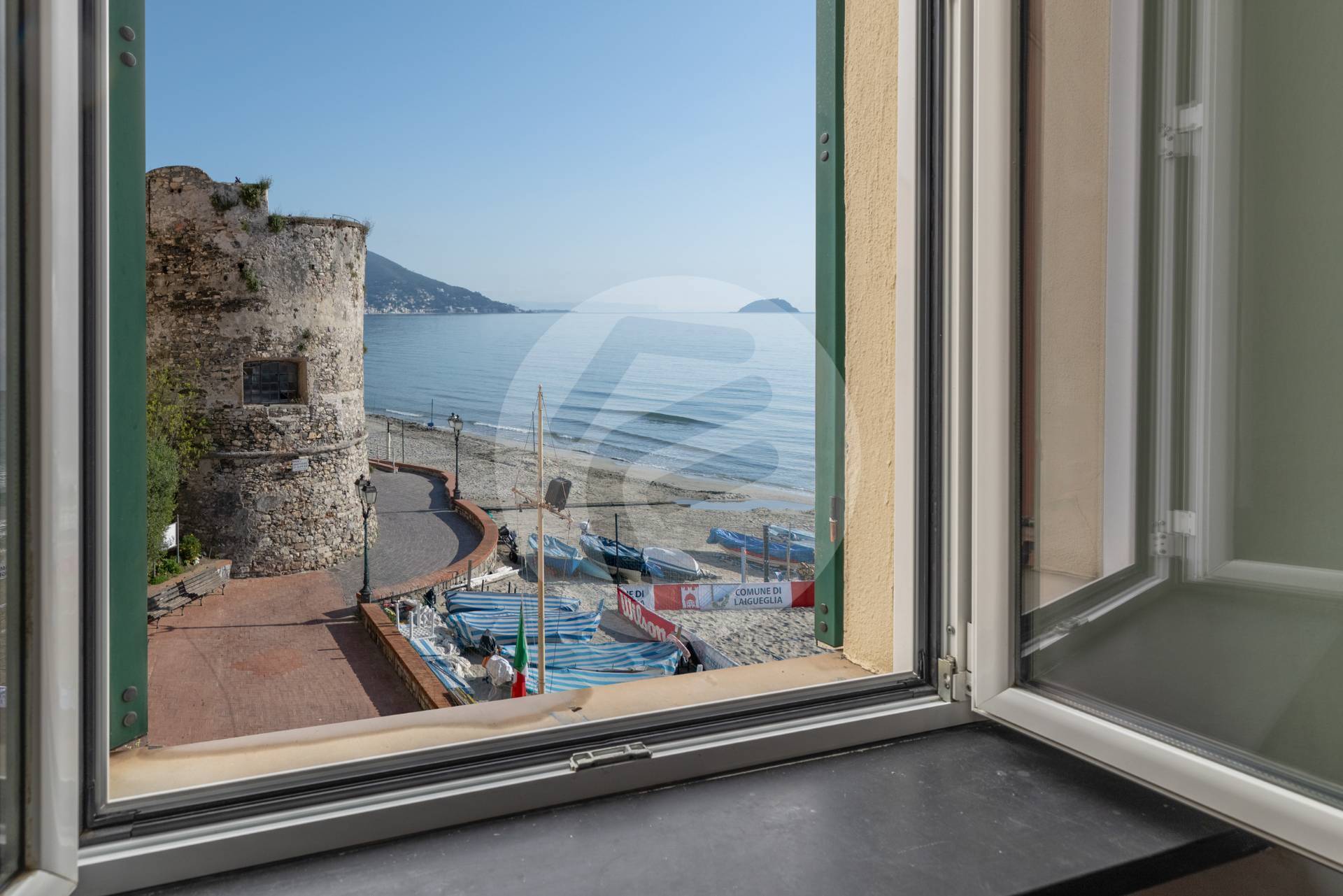 Tutte le finestre incorniciano meravigliosi paesaggi: il Golfo della vicina Alassio con la conosciuta isola Gallinara, il famoso bastione simbolo di Laigueglia , la profonda e sabbiosa spiaggia, la caratteristica piazzetta dei pescatori e l'immancabile mare cristallino.