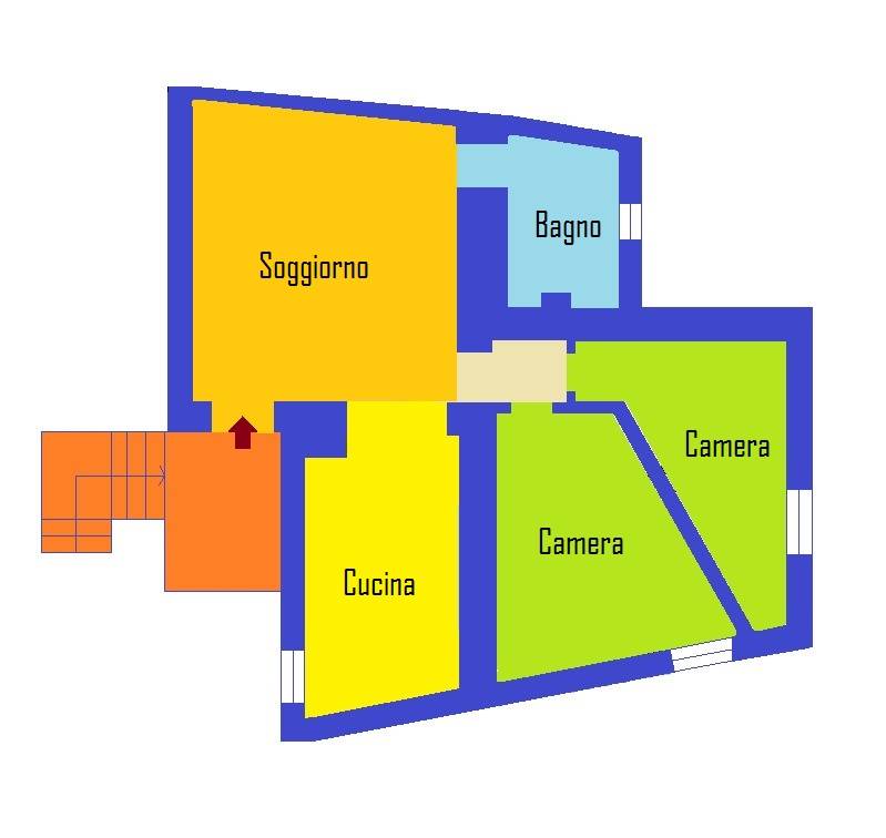 L'appartamento è composto da sala d'ingresso, cucina, due camere, bagno con doccia e finestra, ripostiglio.