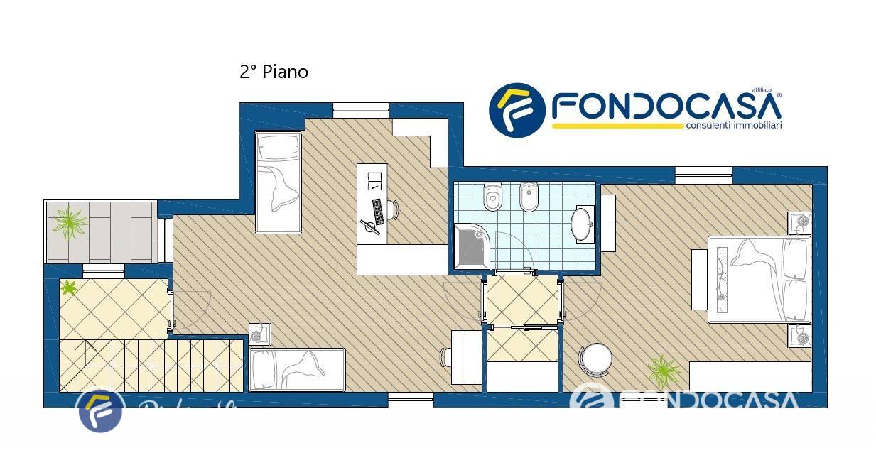 Una larga e pratica scala in legno ci accompagna al piano superiore che ci accoglie in tutta la sua ampiezza e luminosità. E' ornato dal pavimento in parquet e composto da un´imponente camera da letto con balcone panoramico, dove gli spazi sono stati sapientemente suddivisi dal mobilio per creare spazi distinti, un´altra spaziosa camera da letto, bagno con doccia e velux, ripostiglio.