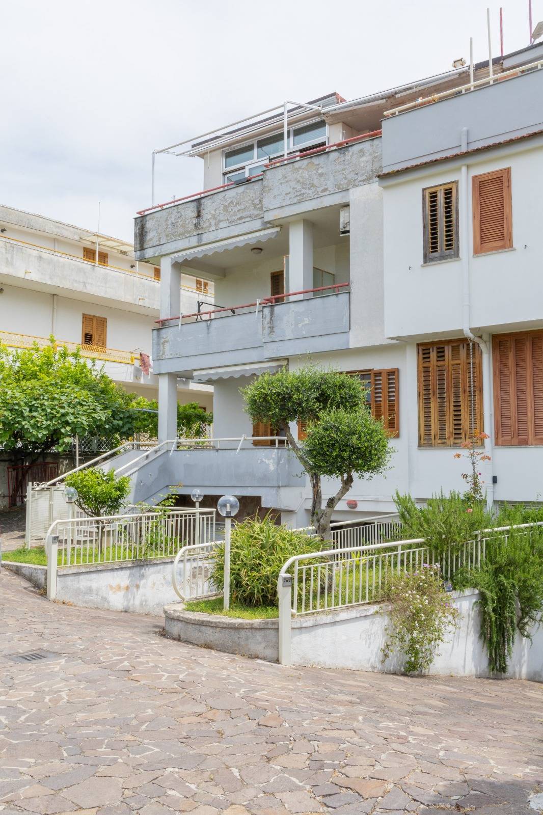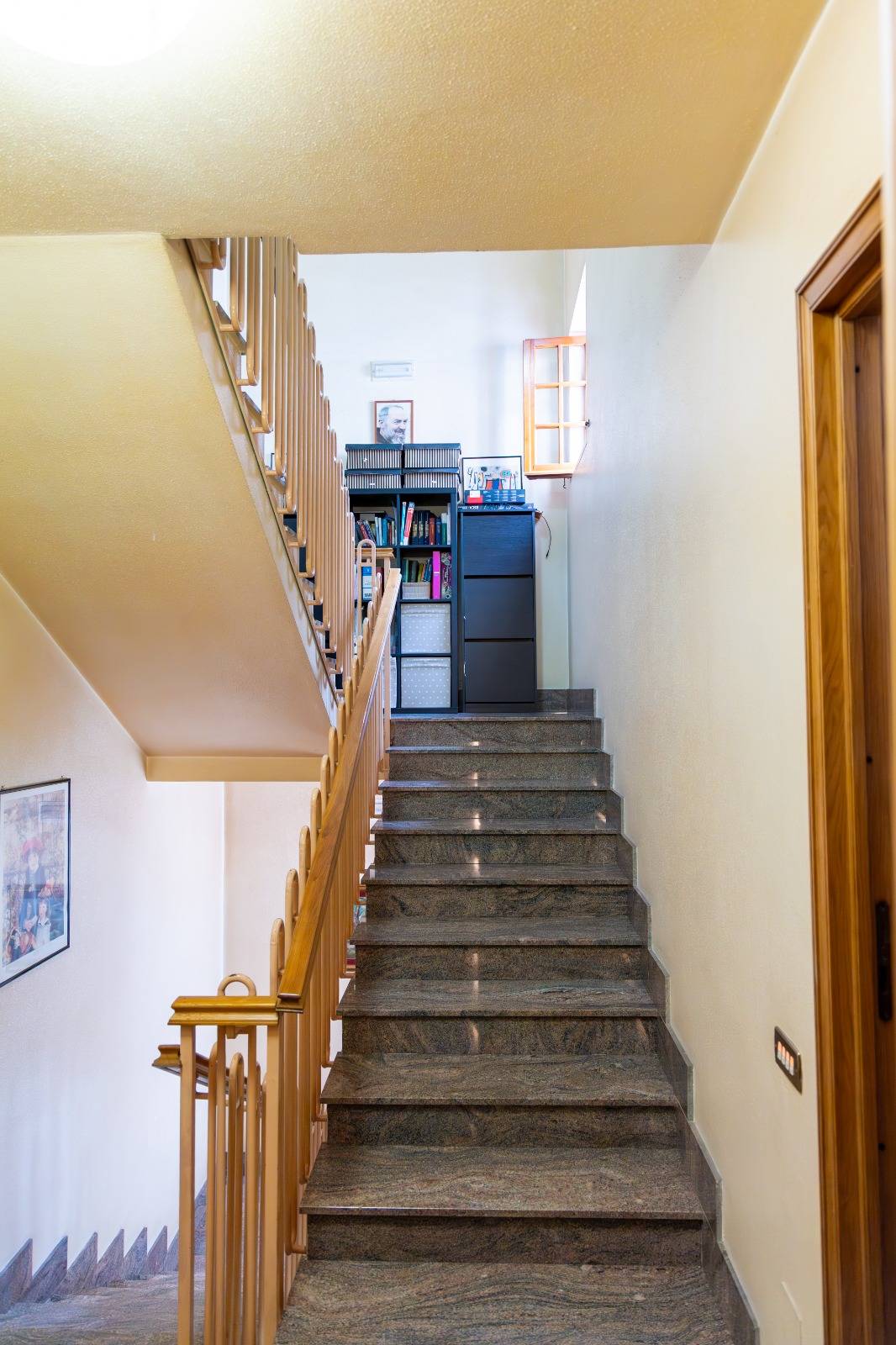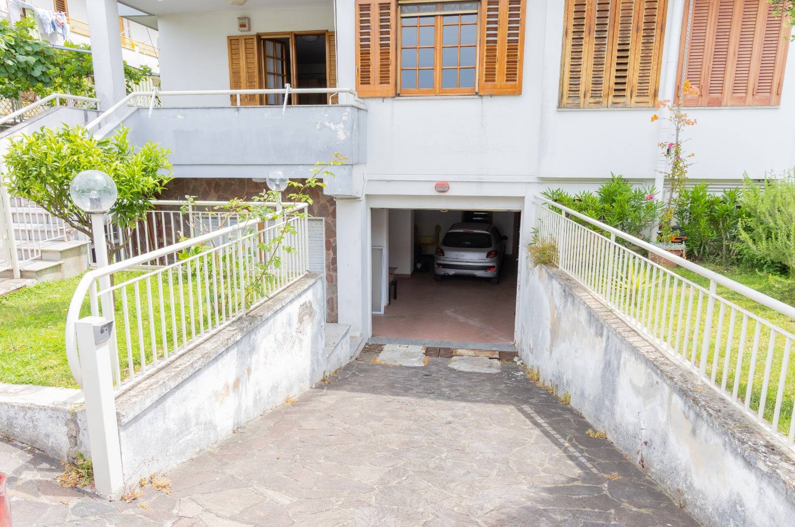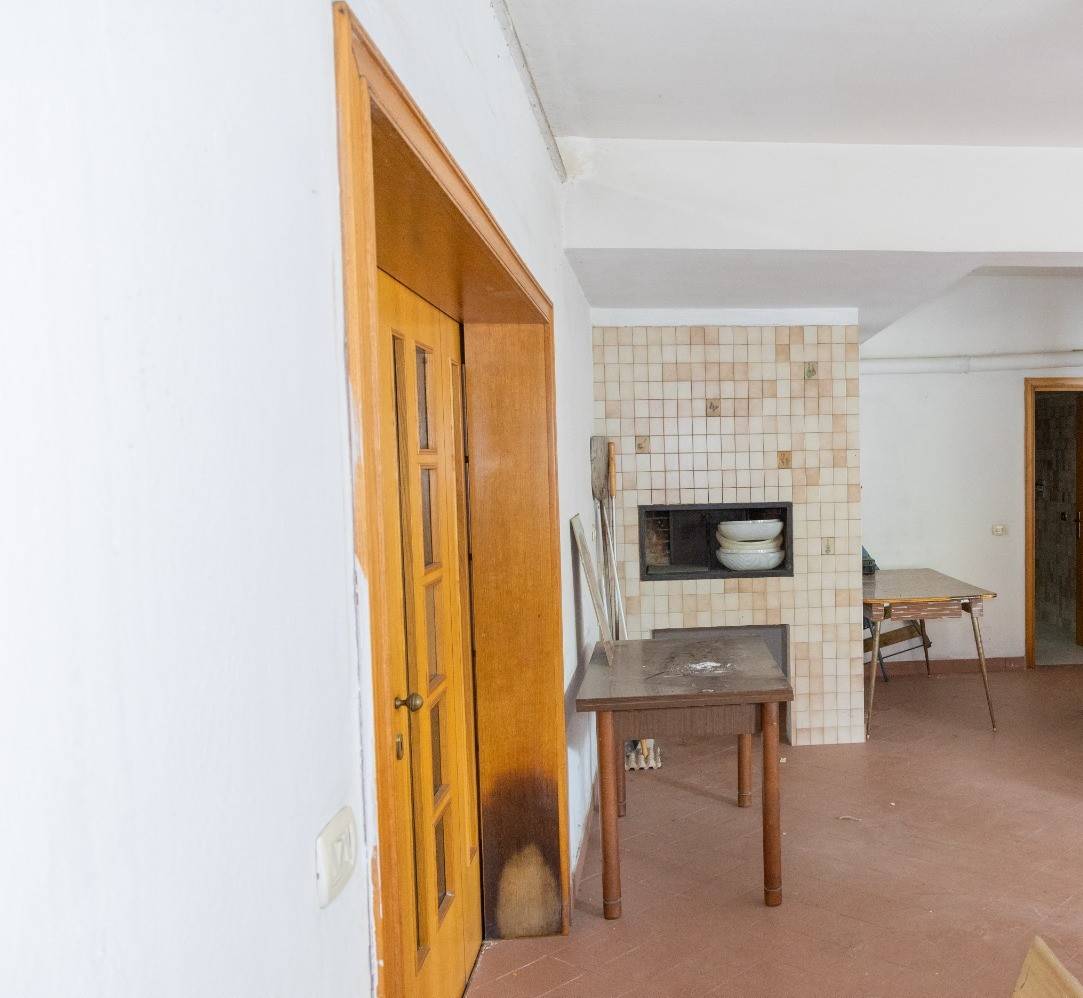 Il piano terra ha doppio accesso ,sia interno da scala dal seminterrato che da terrazzo privato posizionato di fronte al giardino; è composto da doppio salone, cucina con camino che affaccia sul terrazzo, corridoio, bagno, camera da letto e lavanderia. Al primo piano si accede sempre da scala interna e rispettivamente vi sono tre camere da letto tutte con bagno in camera ed ognuna di esse ha un terrazzino privato, più una lavanderia sul pianerottolo.