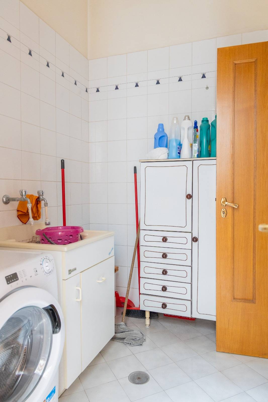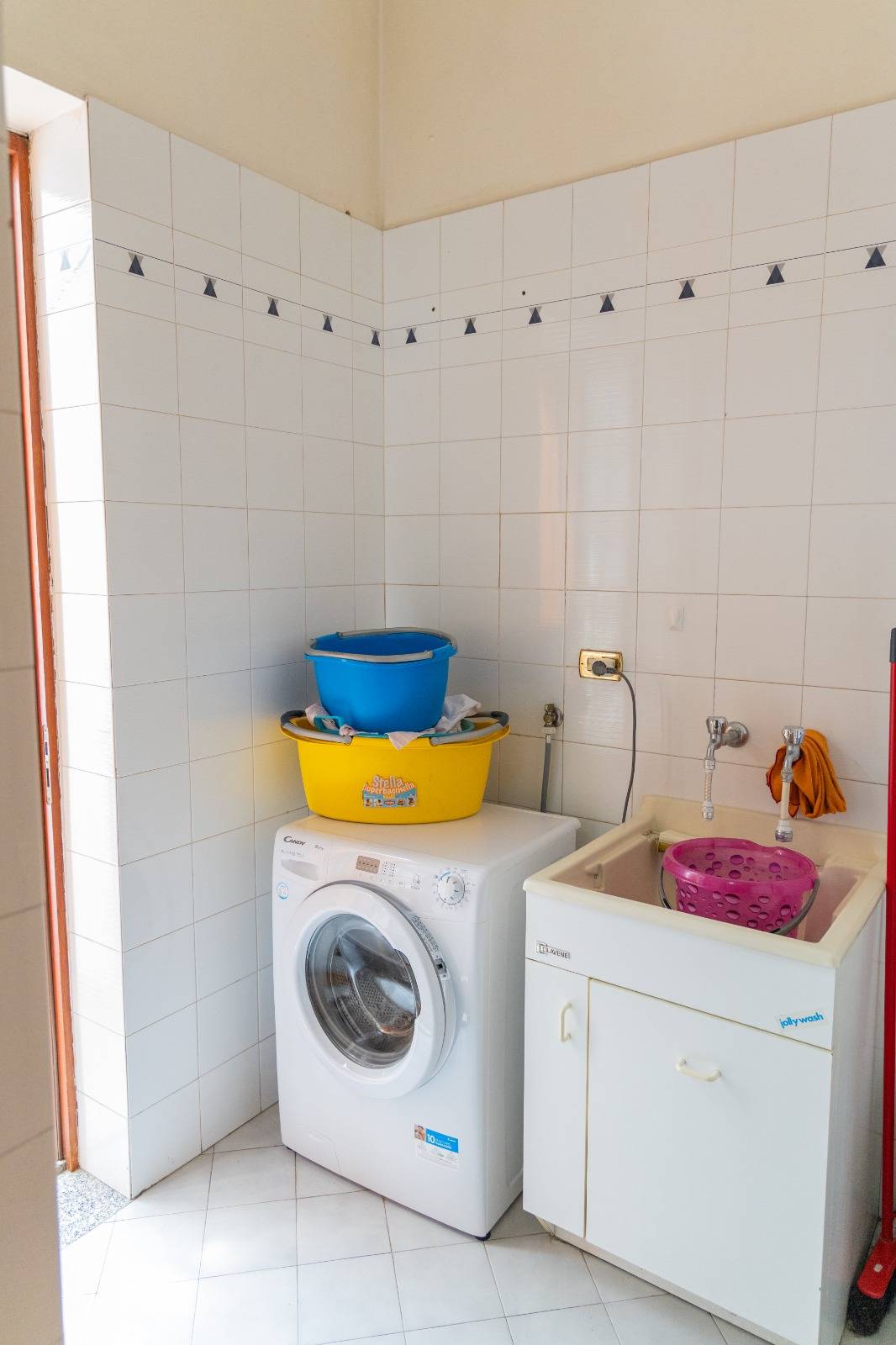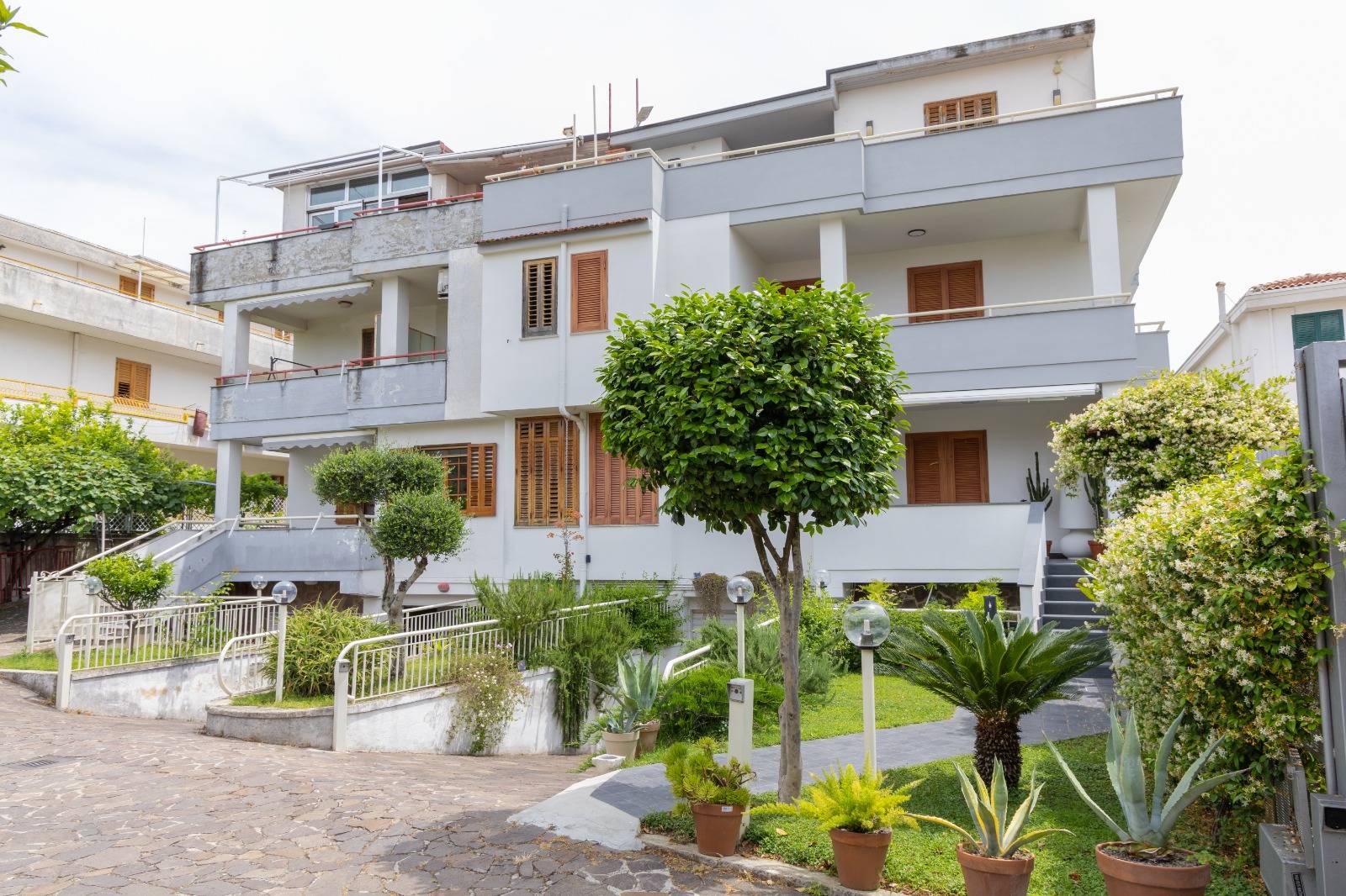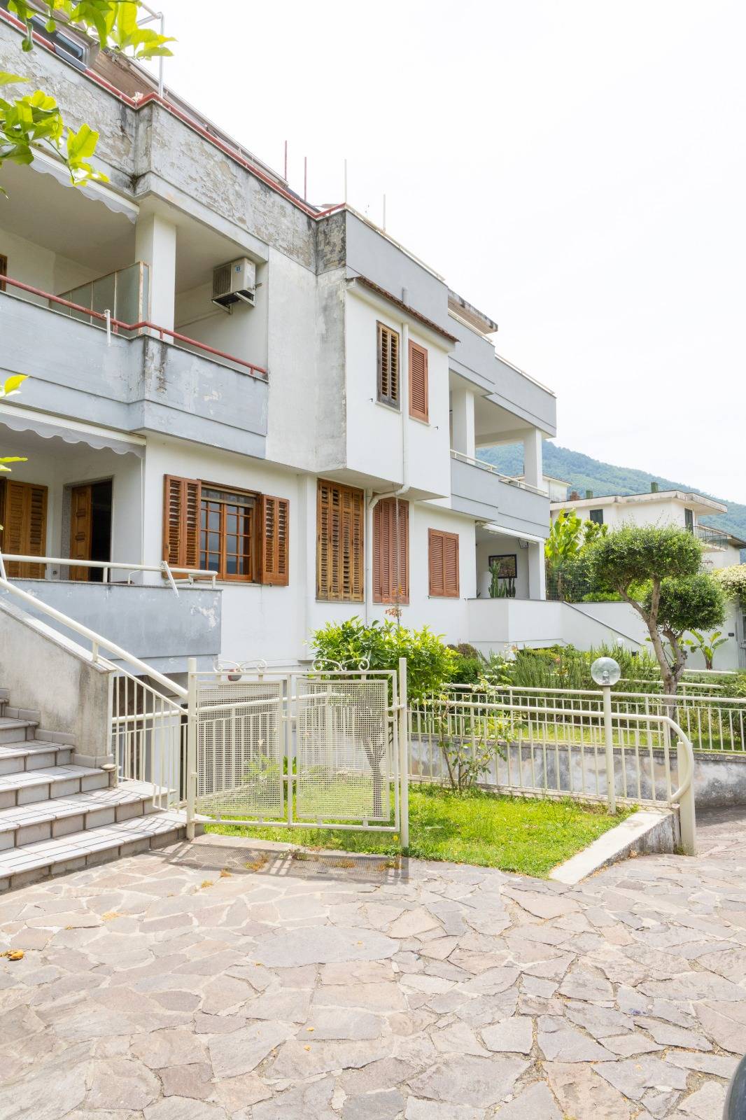 Il piano terra ha doppio accesso ,sia interno da scala dal seminterrato che da terrazzo privato posizionato di fronte al giardino; è composto da doppio salone, cucina con camino che affaccia sul terrazzo, corridoio, bagno, camera da letto e lavanderia. Al primo piano si accede sempre da scala interna e rispettivamente vi sono tre camere da letto tutte con bagno in camera ed ognuna di esse ha un terrazzino privato, più una lavanderia sul pianerottolo.