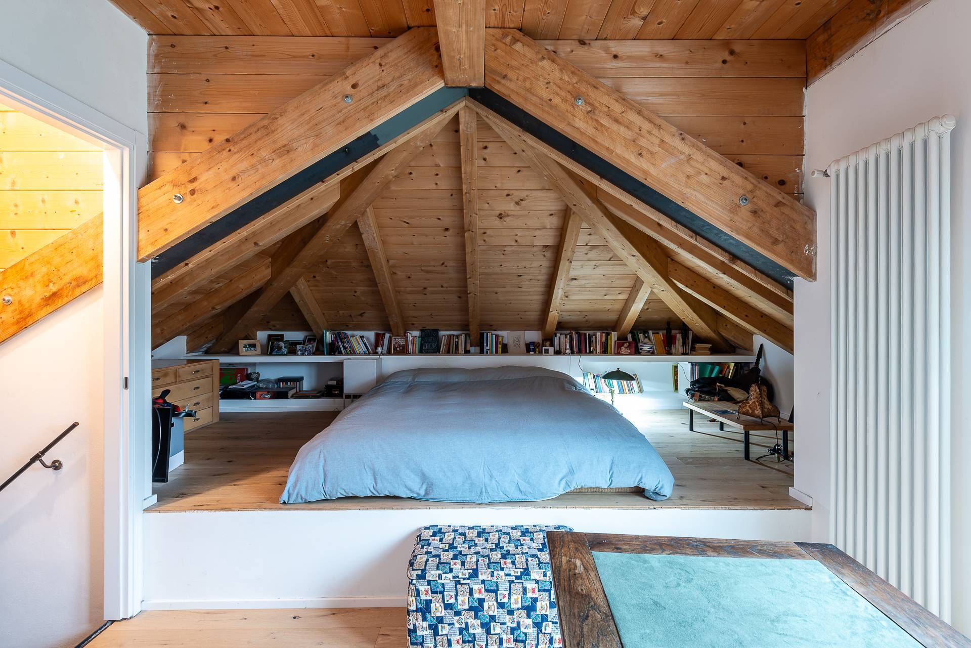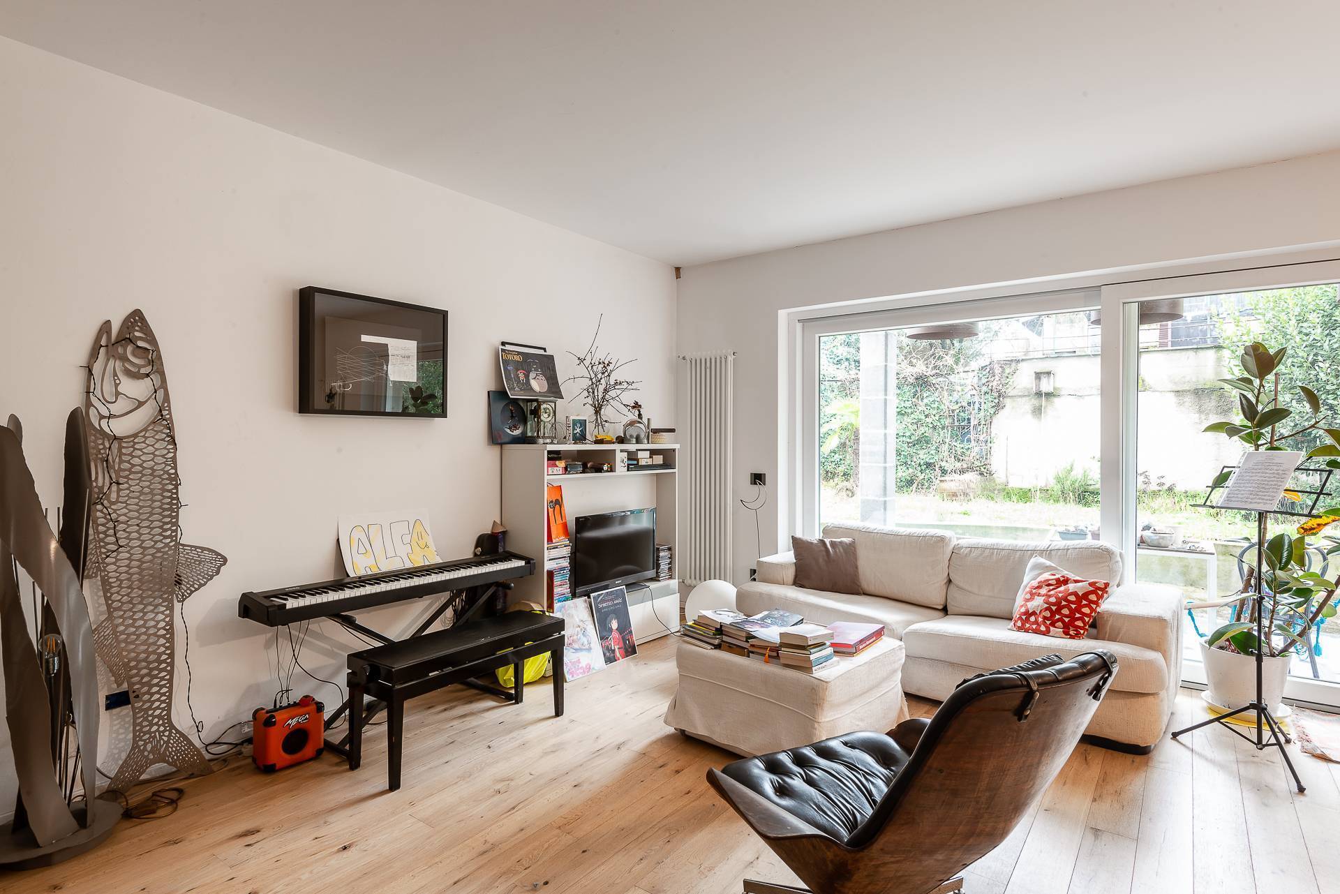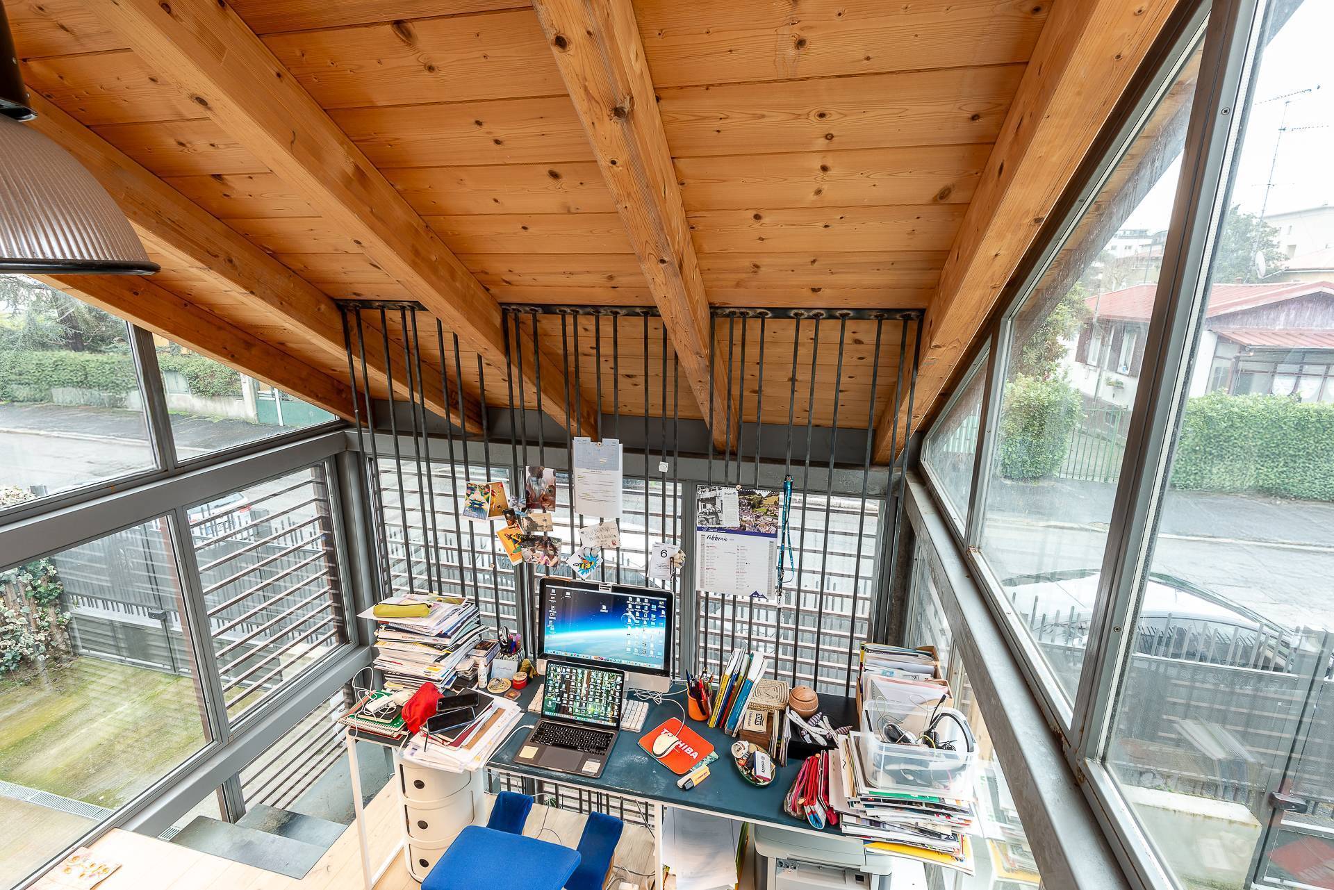 La soluzione proposta si sviluppa su tre livelli: ingresso al piano terra su ampio salone con vetrate direttamente sul giardino privato, cucina abitabile e servizio; collegato da un'elegante scala interna, al piano superiore si trovano 3 camere da letto , di cui una con cabina armadio, e due ulteriori finestrati, uno con doccia e l'altro con vasca. Al piano mansardato troviamo uno studio verandato e una comoda camera con accesso al balcone.