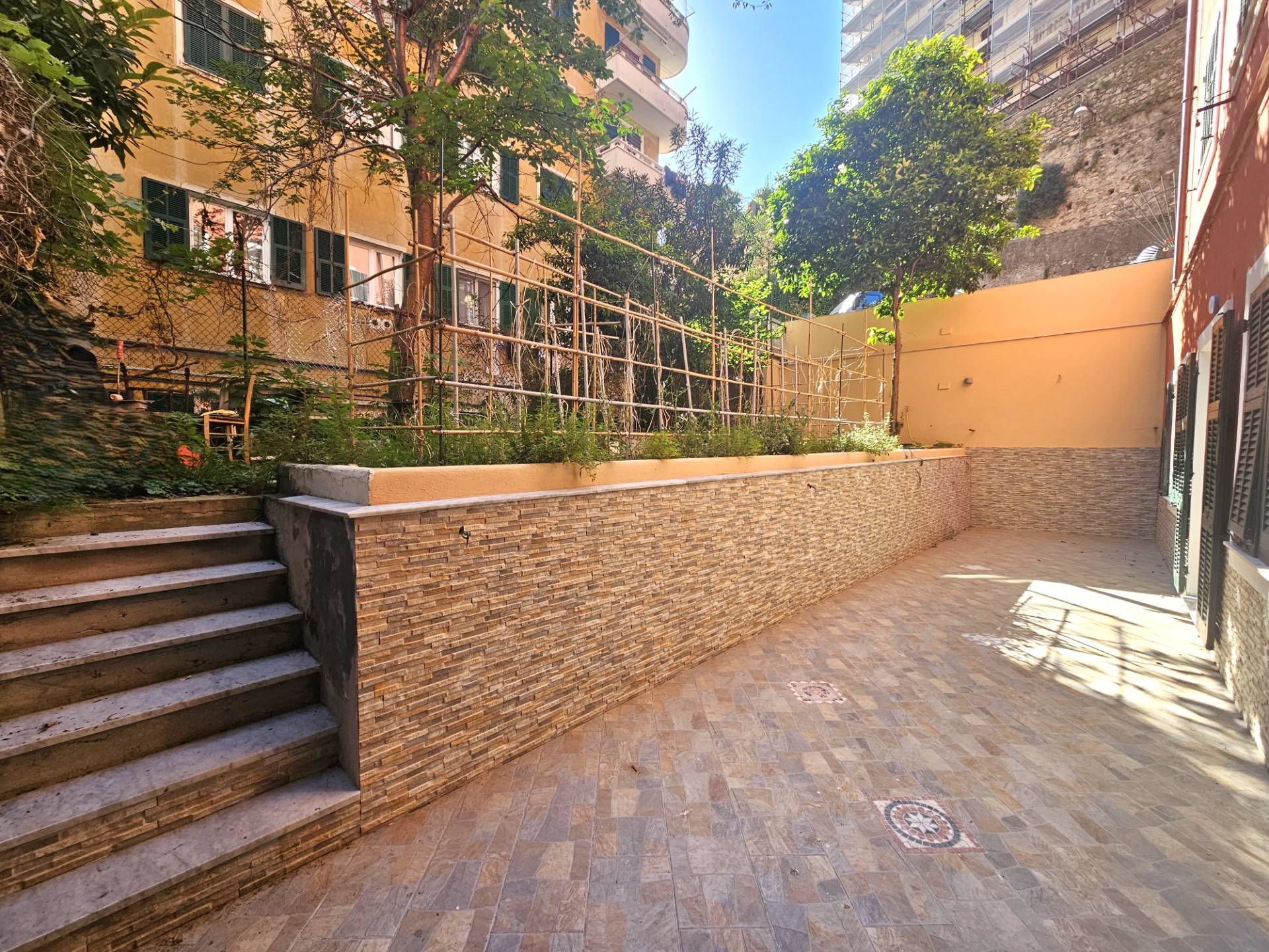 GENOVA PRINCIPE - MIRAMARE appartamento con ampio terrazzo-giardino in vendita nalla parte iniziale di via Pagano Doria di vani 6. Edificio con parti comuni ordinate, interni da riordinare composti da ingresso, soggiorno, cucina, due camere, bagno, ripostiglio e grande terrazzo - giardino. Si accede allo spazio esterno direttamente dalla cucina e da una delle camere. Pur essendo un piano basso l´appartamento e´ sufficientemente luminoso. Da vedere!