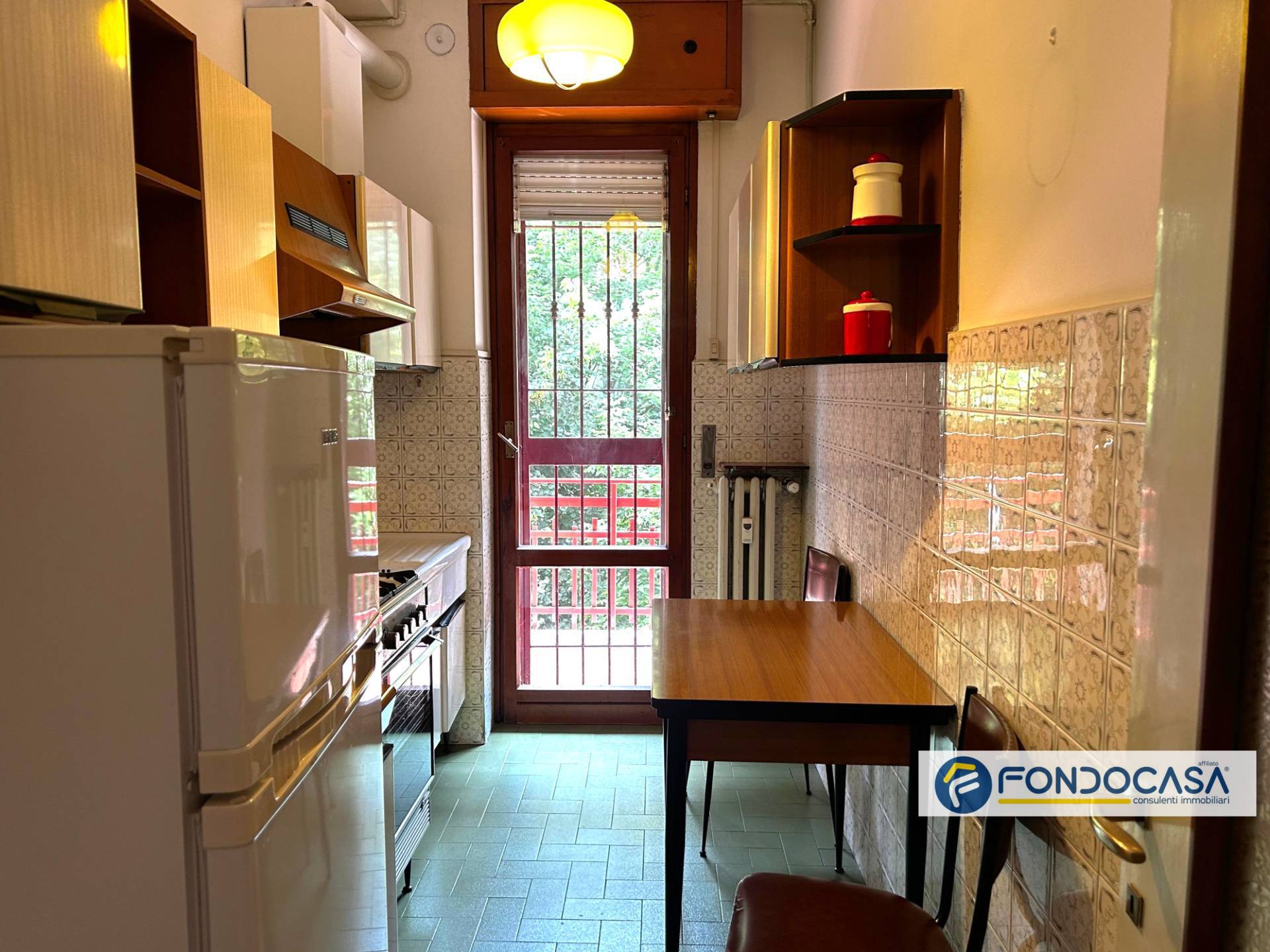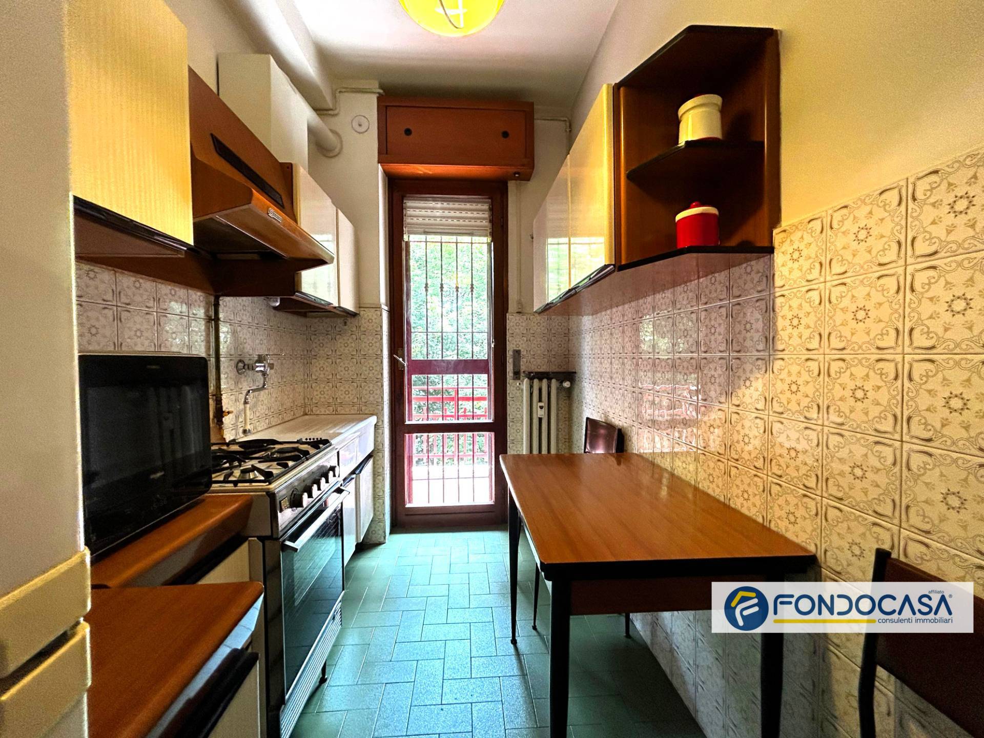 L'ingresso si apre su un disimpegno che conduce al luminoso soggiorno con zona pranzo e accesso al terrazzo, perfetto per godere della vista sul verde circostante. A seguire, cucina separata e abitabile.