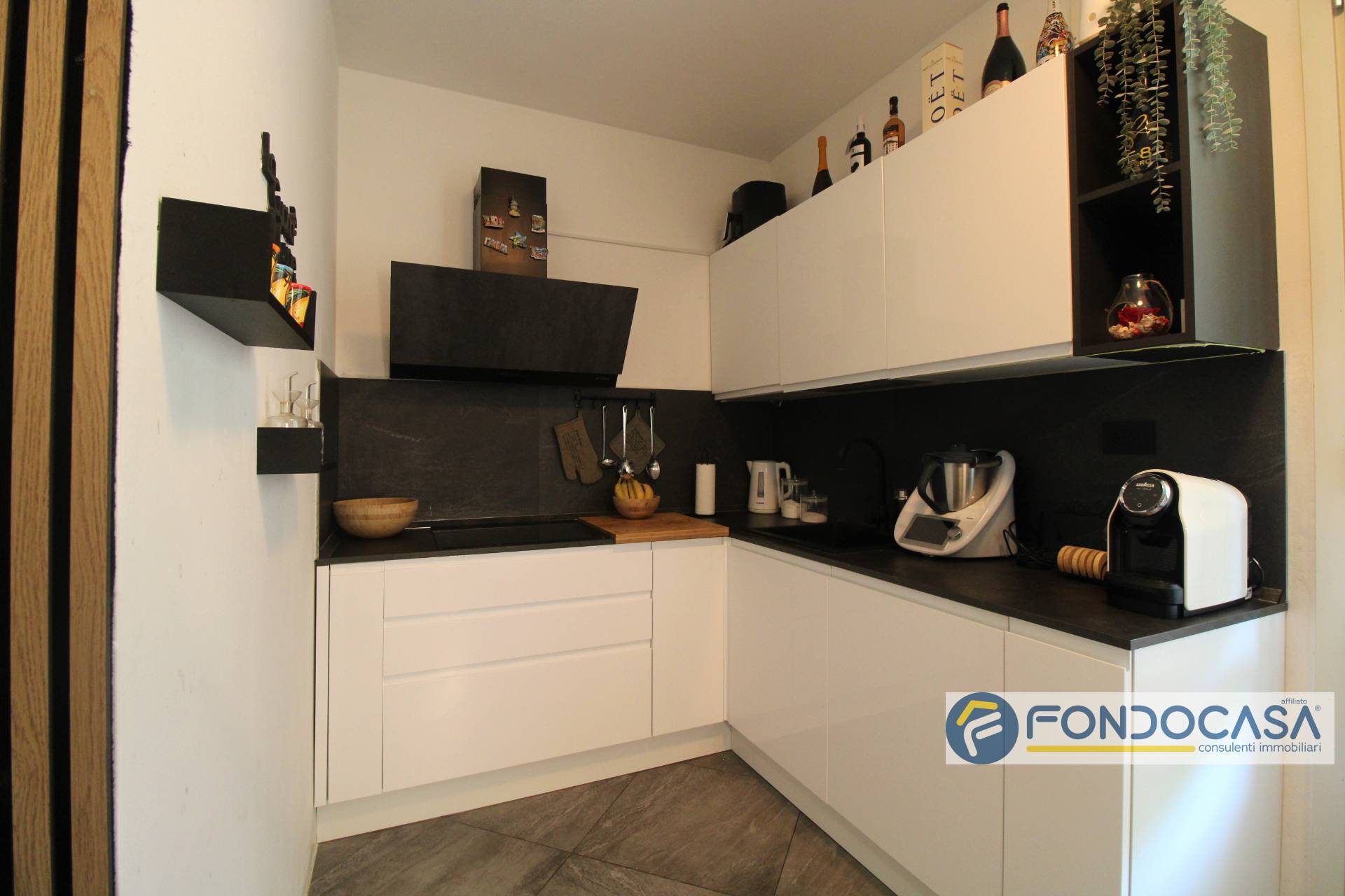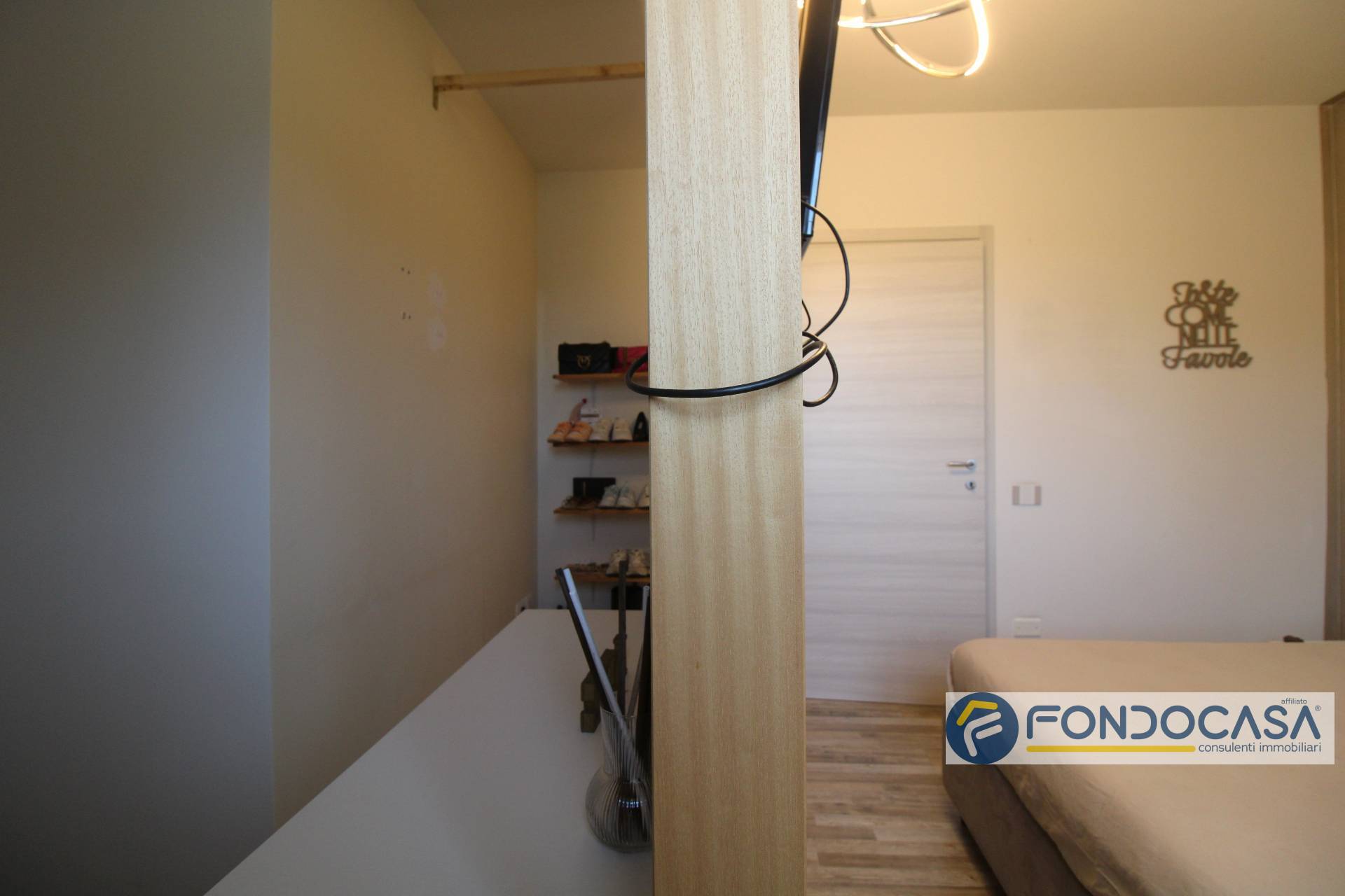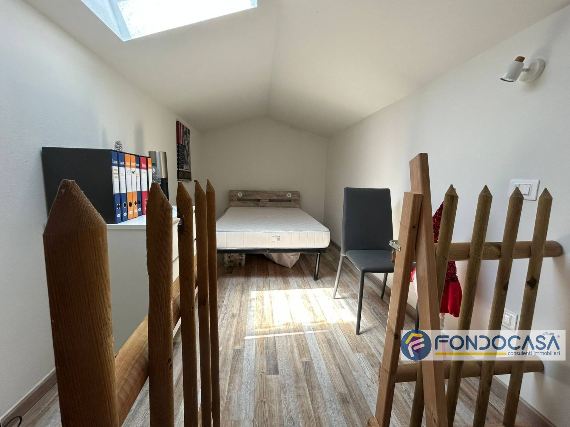 L'ingresso, tramite il portoncino blindato ci accompagna nella zona giorno con angolo cottura dotata di terrazzo perfetto per cene estive all'aperto; al piano superiore abbiamo la camera da letto matrimoniale con cabina armadio, la cameretta/stanza armadi/studio finestrata, il bagno con finestra e doccia e tramite una scala arriviamo al piano superiore dove abbiamo la mansarda di 12 mq circa con lucernario al momento adibita come ulteriore camera da letto.