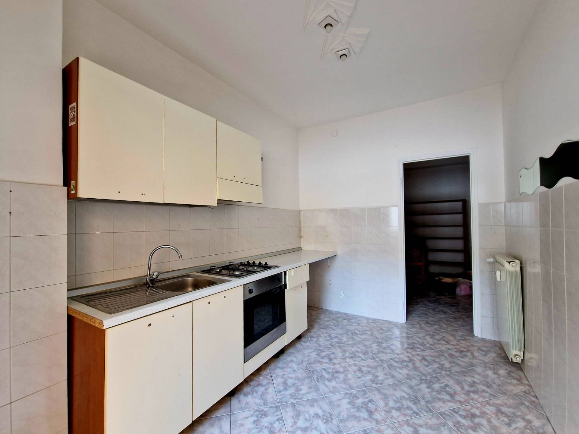 Appartamento in vendita a Ventimiglia - posizionato al primo piano di un edificio posto sulla passeggiata Oberdan di Ventimiglia, situato nel pieno centro città; dotato di ascensore il fabbricato si presenta in buono stato di manutenzione. L'appartamento trilocale è composto da ingresso, due camere, cucina, disimpegno, bagno, terrazzo con esposizione a Sud e veranda, per una metratura totale di circa 90 mq.
