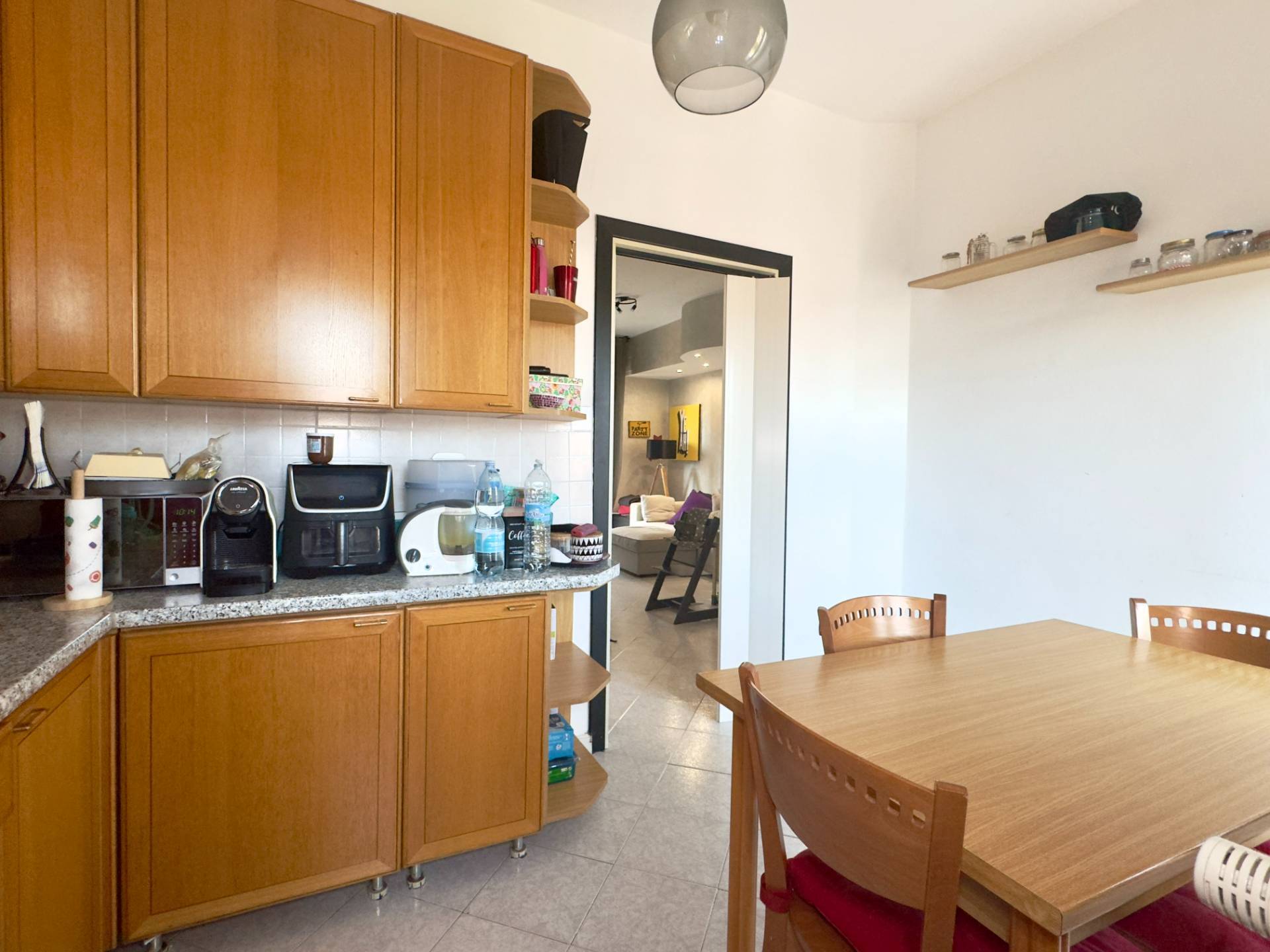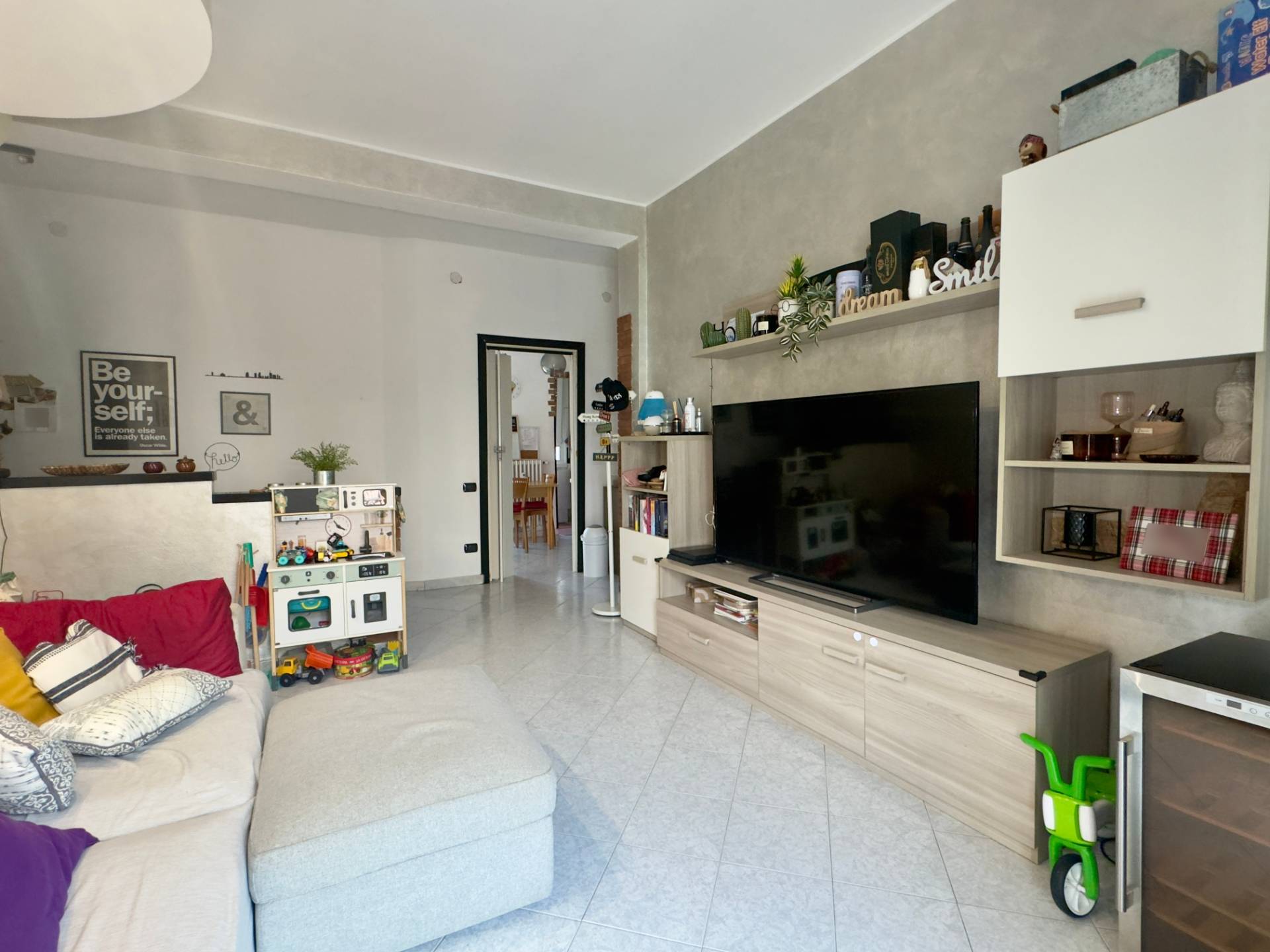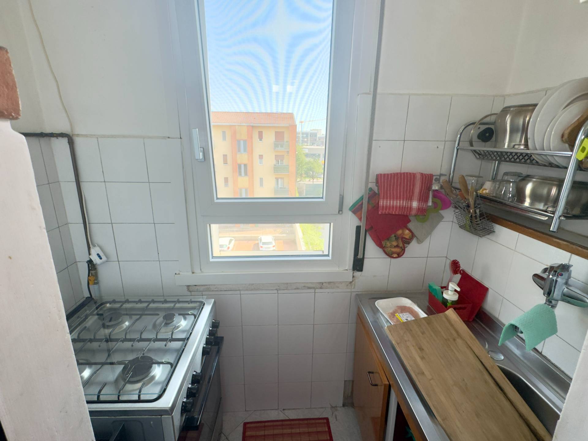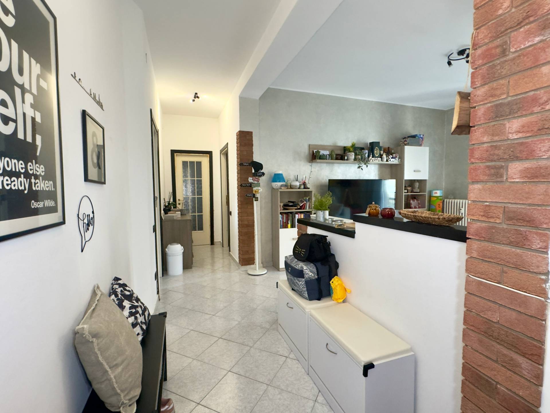 L´abitazione è attualmente divisa da un lungo disimpegno che collega i vari ambienti, entrando sulla destra troviamo il cuore della casa, il soggiorno, ampio e lineare dotato di un balcone con affaccio esterno. Proseguendo abbiamo la cucina abitabile composta da due spazi collegati, un piccolo angolo cottura e la zona pranzo più ampia, dotata anch´essa di un balcone con affaccio interno, adiacente abbiamo la spaziosa e luminosa camera da letto ed infine il bagno finestrato, dotato di vasca e cabina doccia.