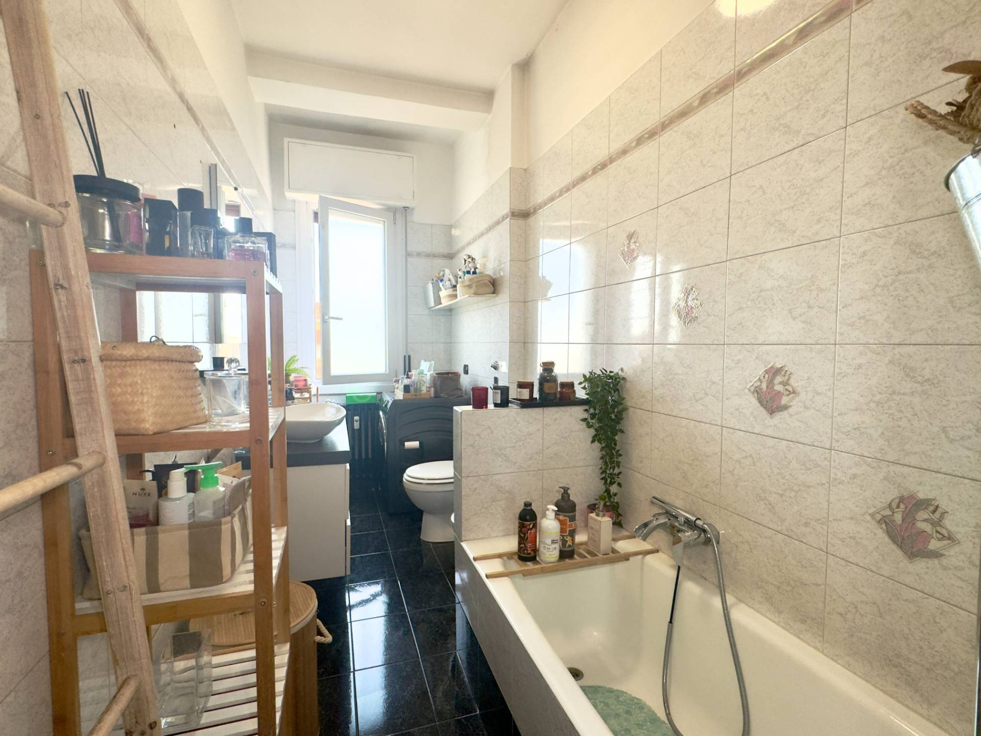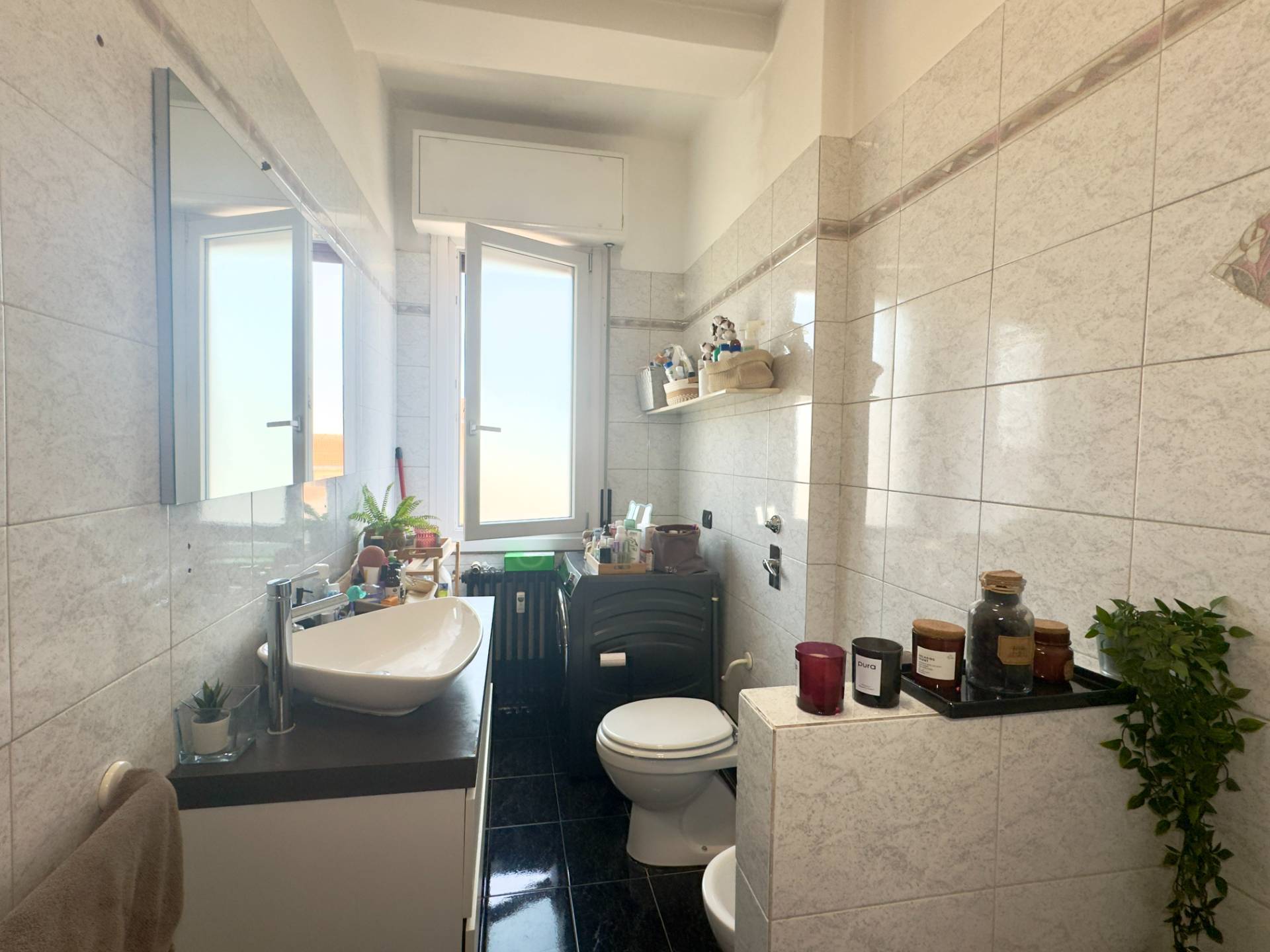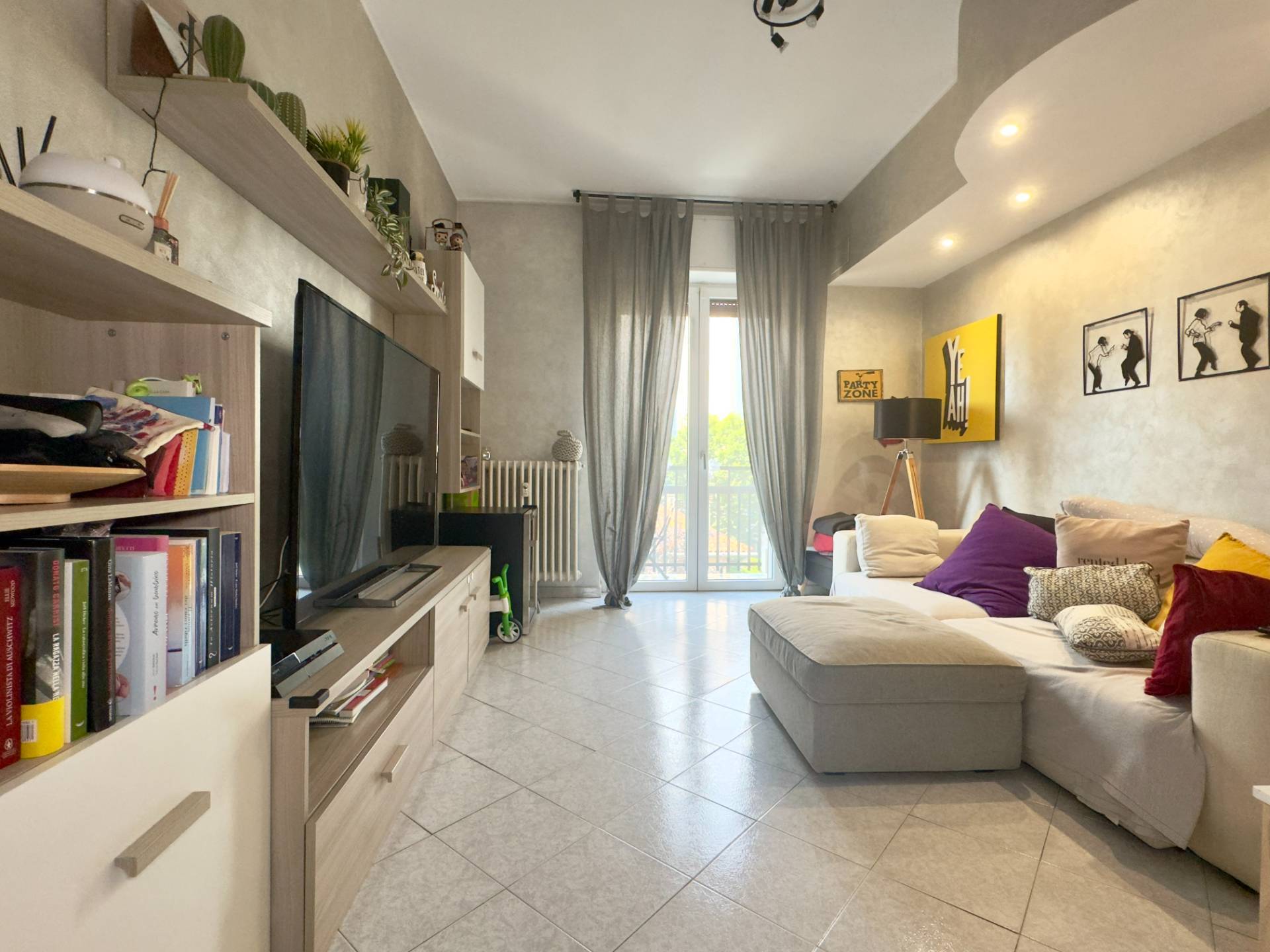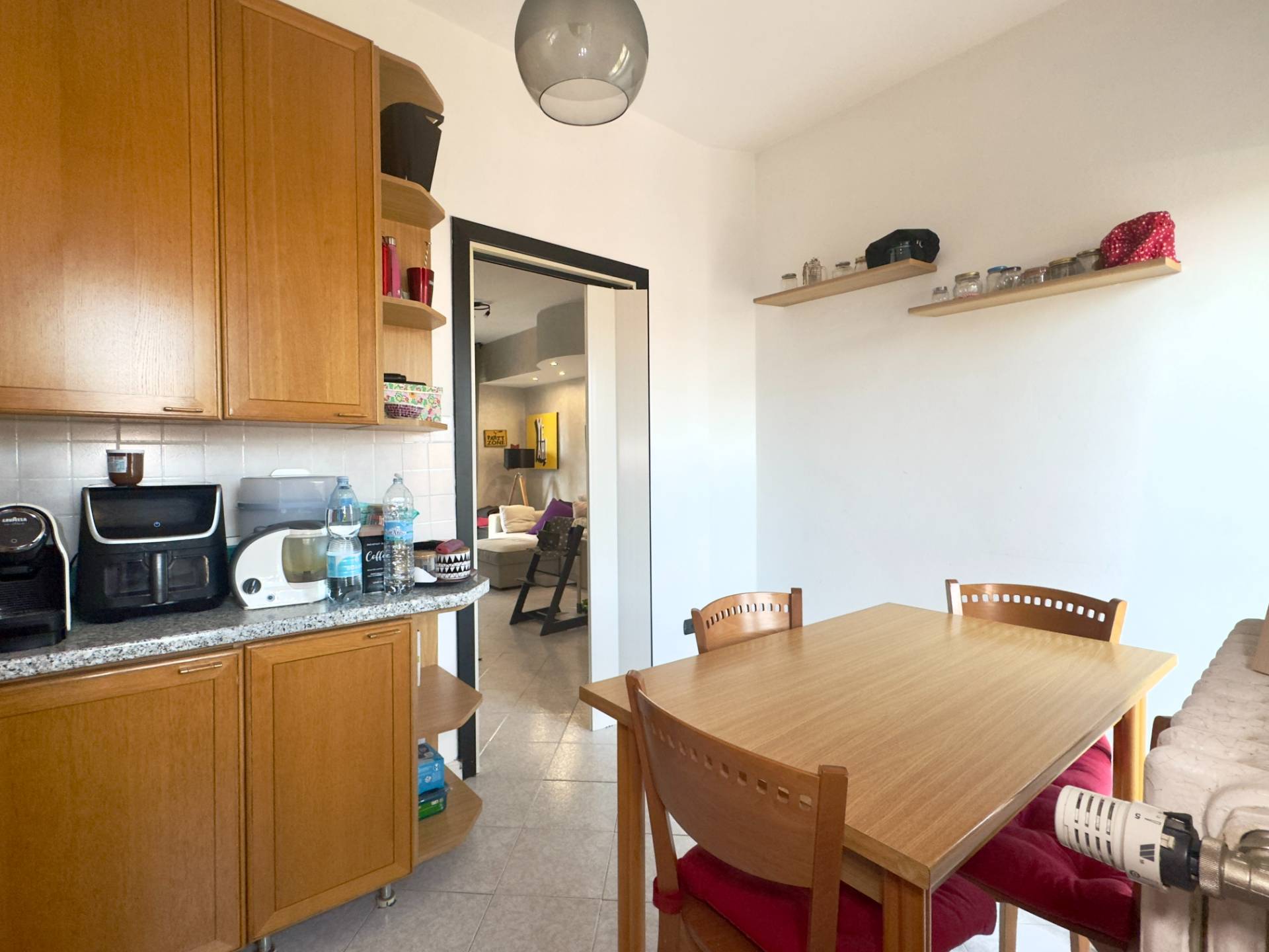 L´abitazione è attualmente divisa da un lungo disimpegno che collega i vari ambienti, entrando sulla destra troviamo il cuore della casa, il soggiorno, ampio e lineare dotato di un balcone con affaccio esterno. Proseguendo abbiamo la cucina abitabile composta da due spazi collegati, un piccolo angolo cottura e la zona pranzo più ampia, dotata anch´essa di un balcone con affaccio interno, adiacente abbiamo la spaziosa e luminosa camera da letto ed infine il bagno finestrato, dotato di vasca e cabina doccia.
