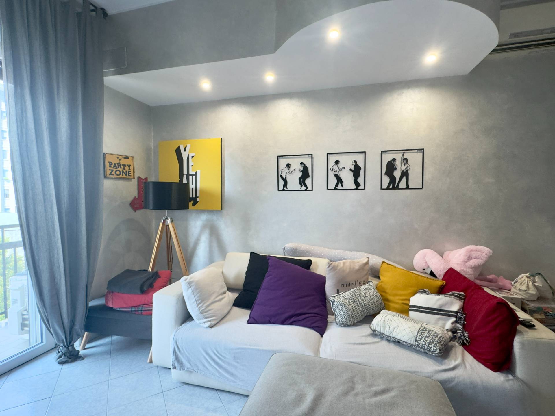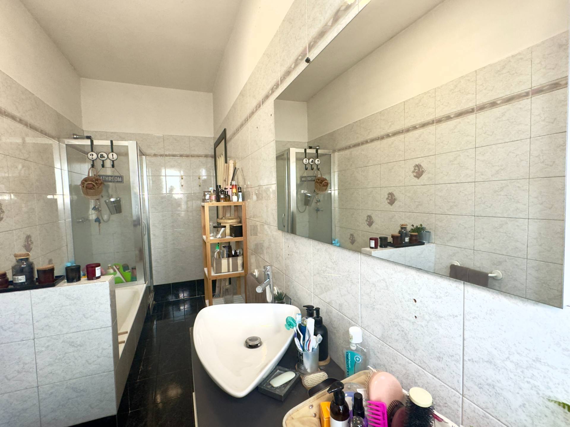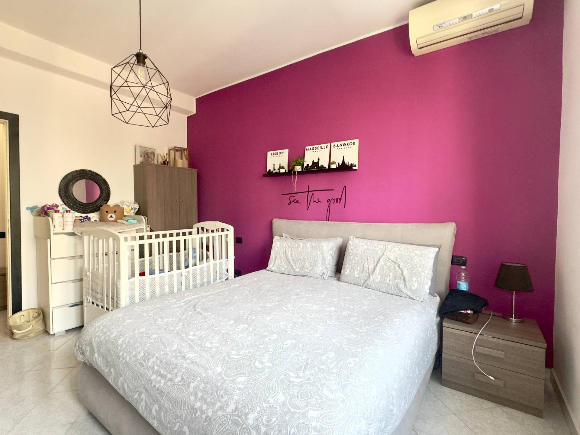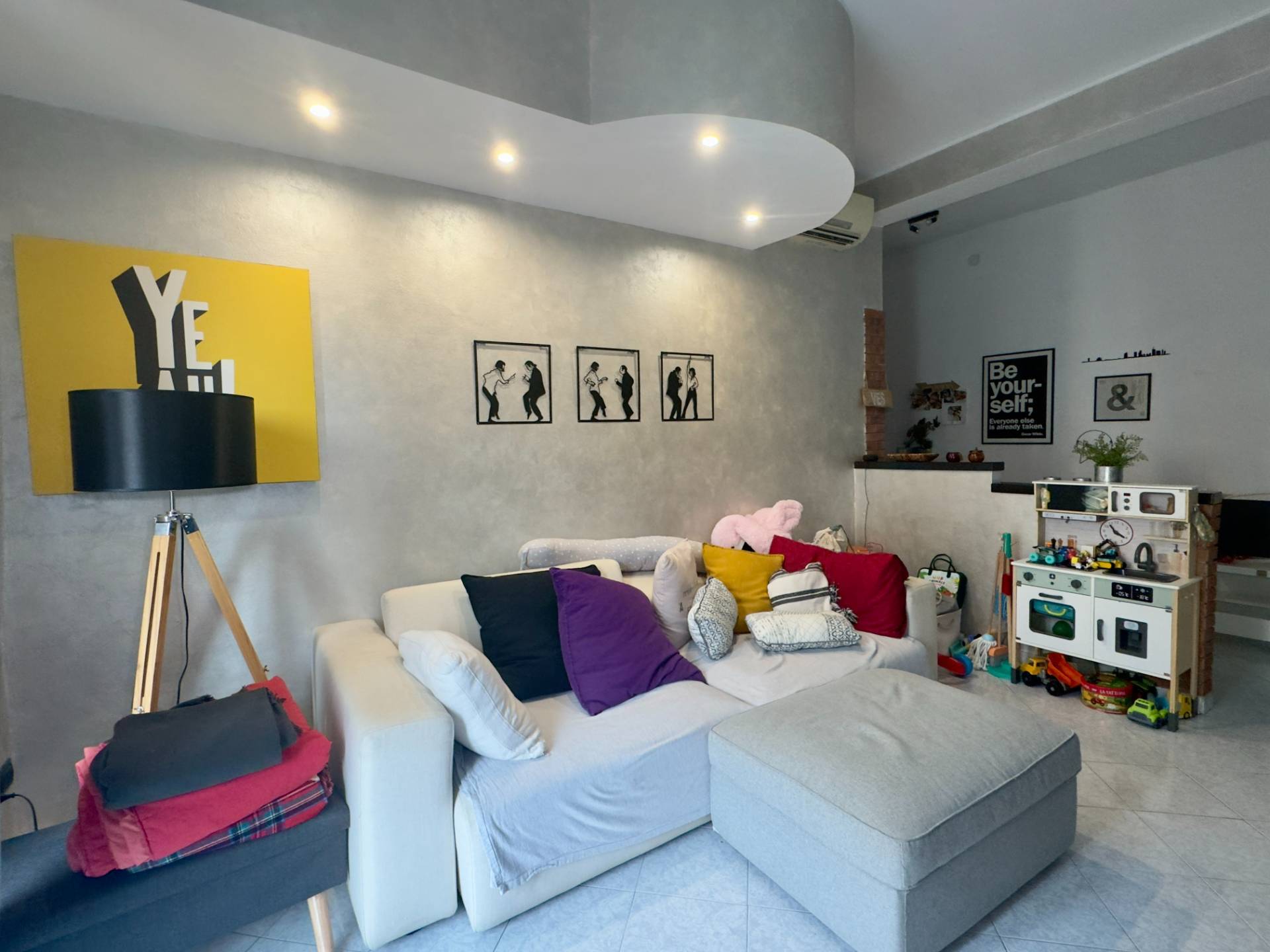 L´abitazione è attualmente divisa da un lungo disimpegno che collega i vari ambienti, entrando sulla destra troviamo il cuore della casa, il soggiorno, ampio e lineare dotato di un balcone con affaccio esterno. Proseguendo abbiamo la cucina abitabile composta da due spazi collegati, un piccolo angolo cottura e la zona pranzo più ampia, dotata anch´essa di un balcone con affaccio interno, adiacente abbiamo la spaziosa e luminosa camera da letto ed infine il bagno finestrato, dotato di vasca e cabina doccia.