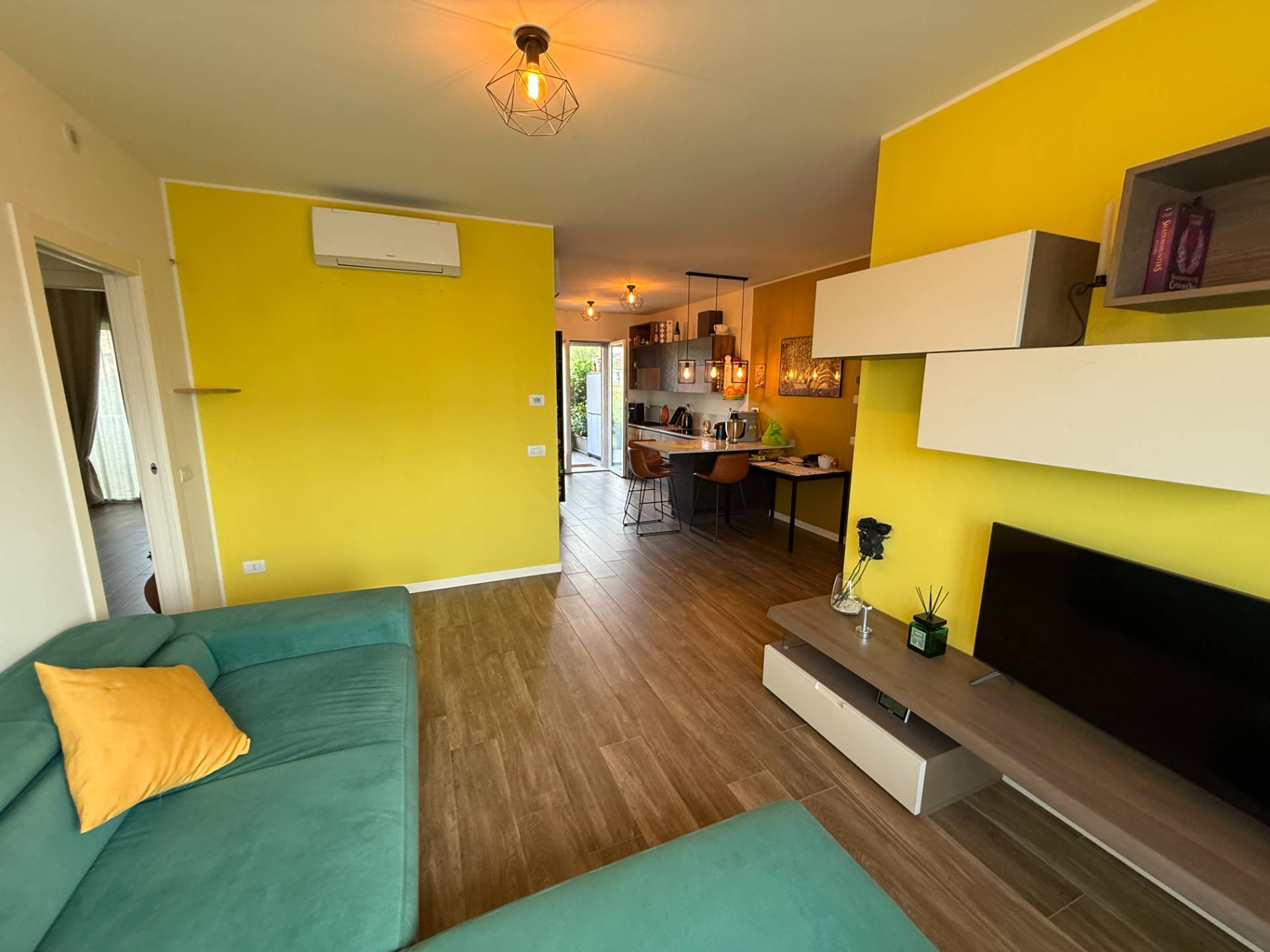 Riscaldamento e raffrescamento a pavimento, fotovoltaico zona comune e pompa di calore riscaldamento sia split pavimento e raffrescamento con split idronici, predisposizione impianto d´allarme, aria condizionata, tapparelle elettriche, gres porcellanato in tutta la soluzione ventilazione meccanica. Sanitari sospesi, cabina armadio, bagni con vasca e doccia.