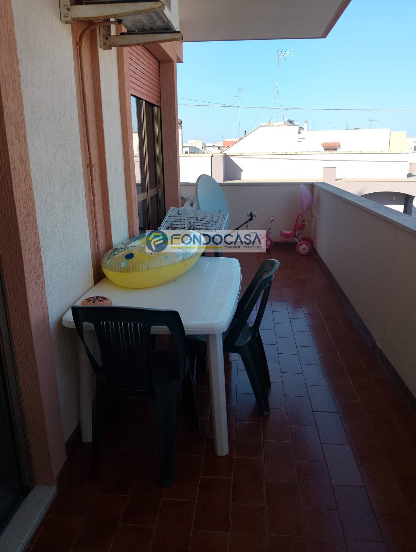 o Balcone angolare ampio con giochi per bambini, un´oasi di luce e relax all´aperto grazie alle grandi porte-finestre.