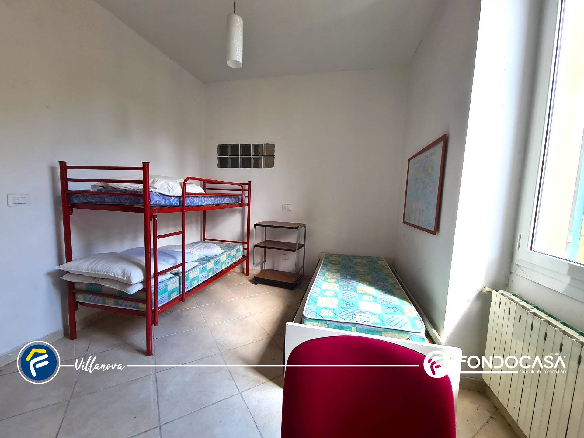 La zona notte comprende una grande camera matrimoniale e due camerette singole, perfette anche come studio o stanza ospiti.