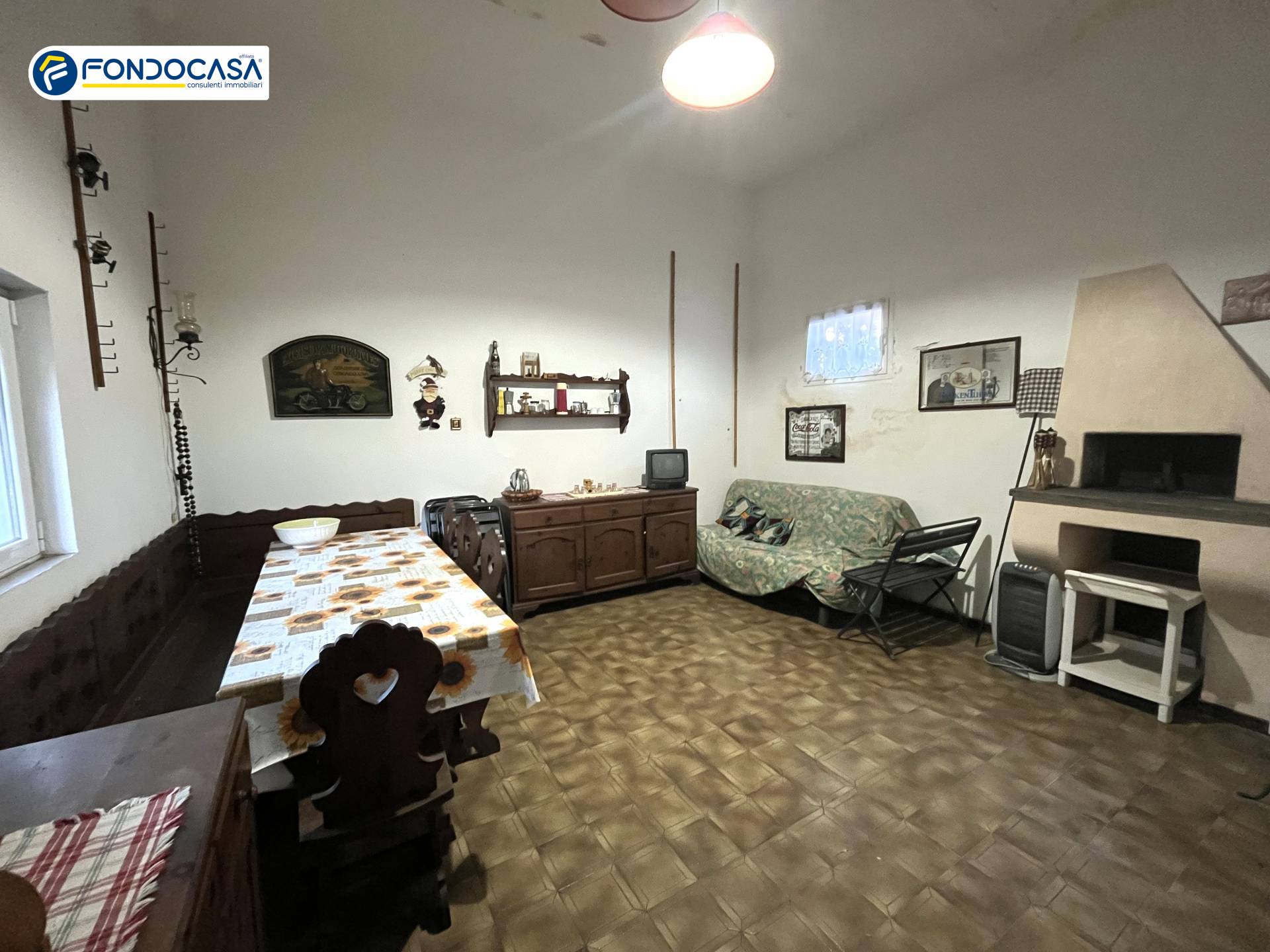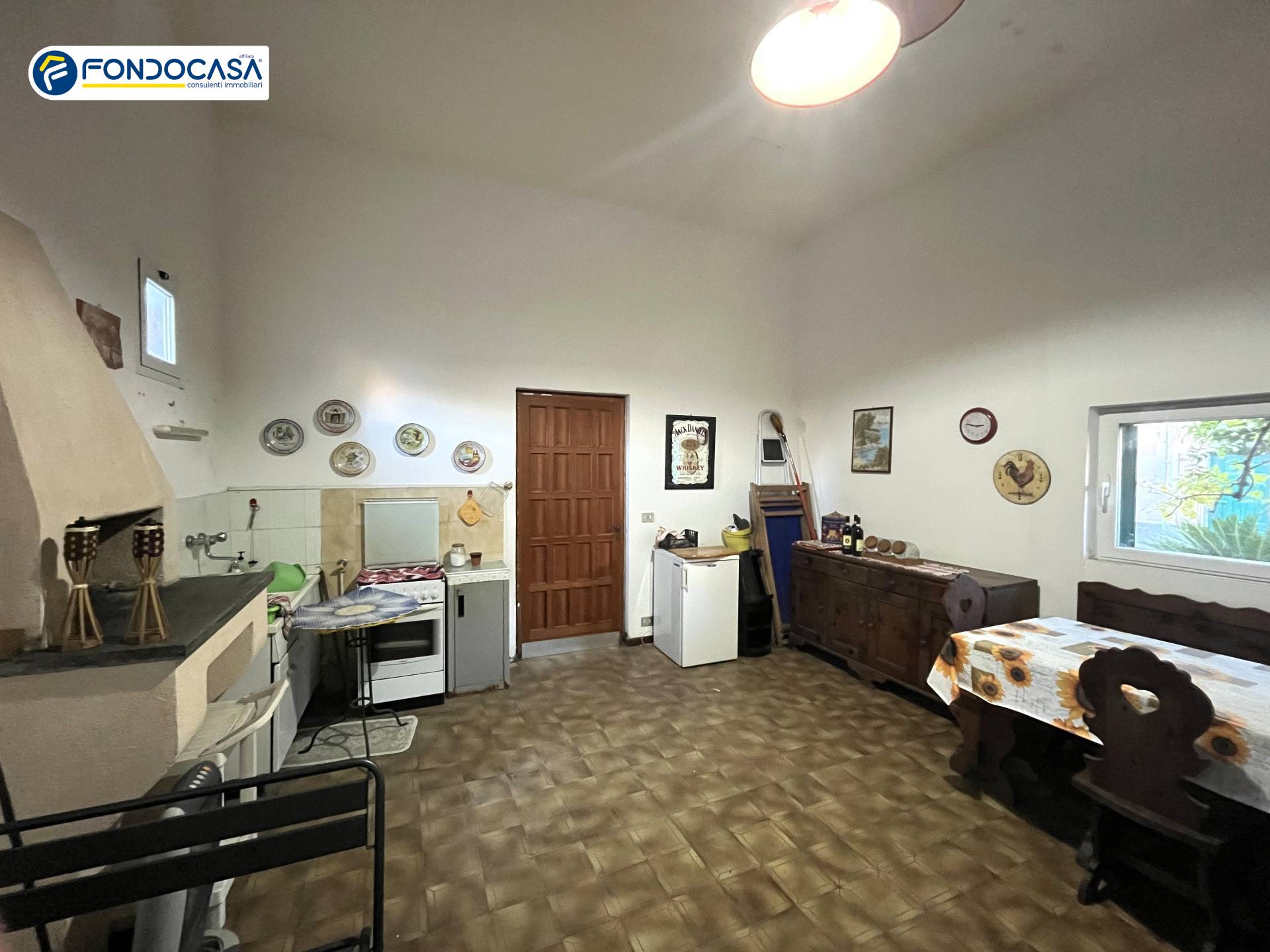 Piano Terra: Ingresso, disimpegno, tinello con cucinino, sala, bagno, corte esterna piastrellata, giardino, posti auto e depandance.