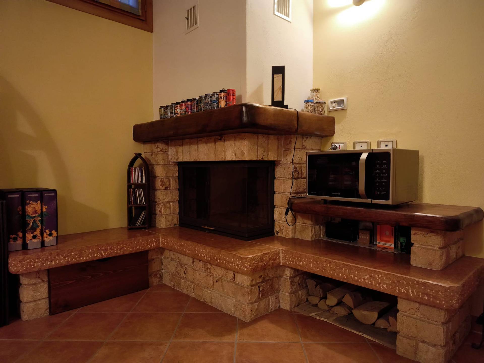 splendida taverna con caratteristico camino e cucina in muratura,