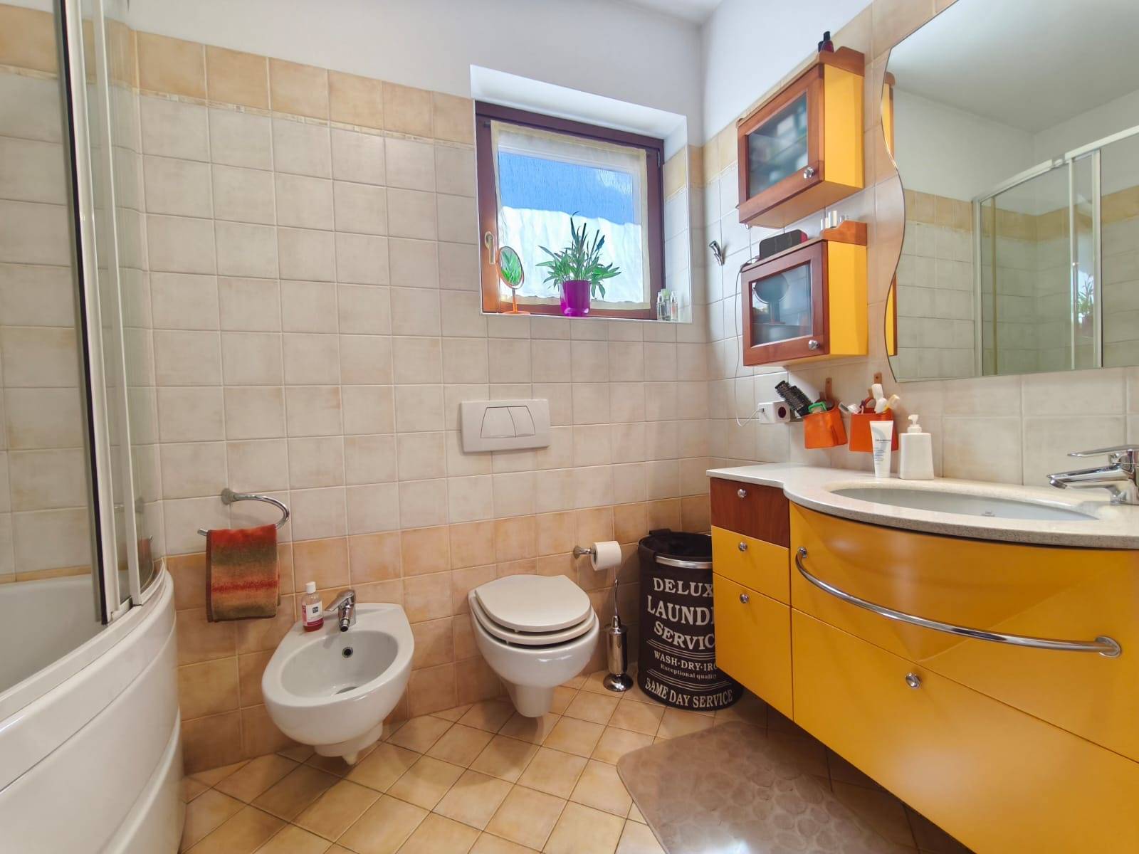 bagno finestrato completo di vasca e doccia idromassaggio,