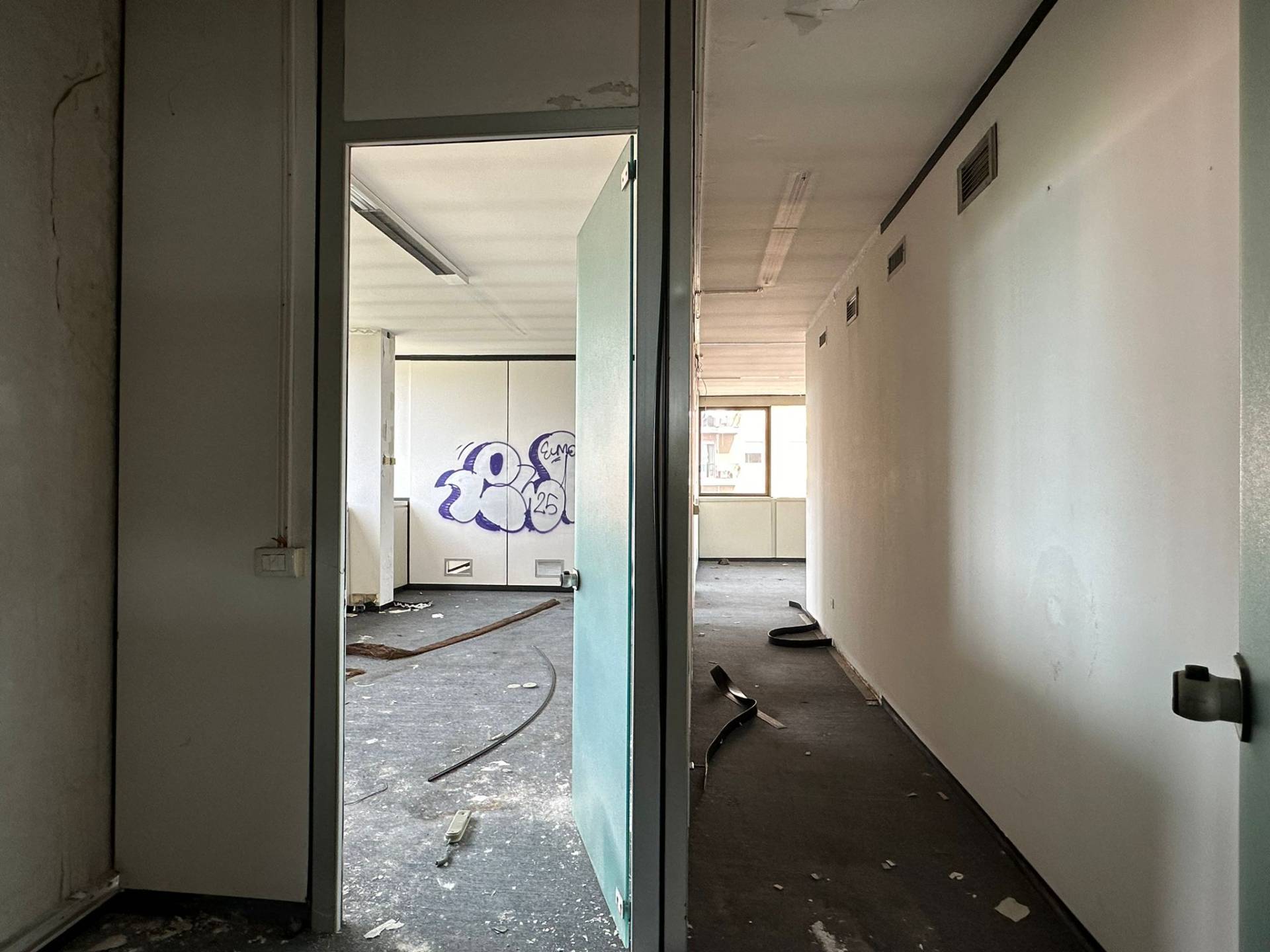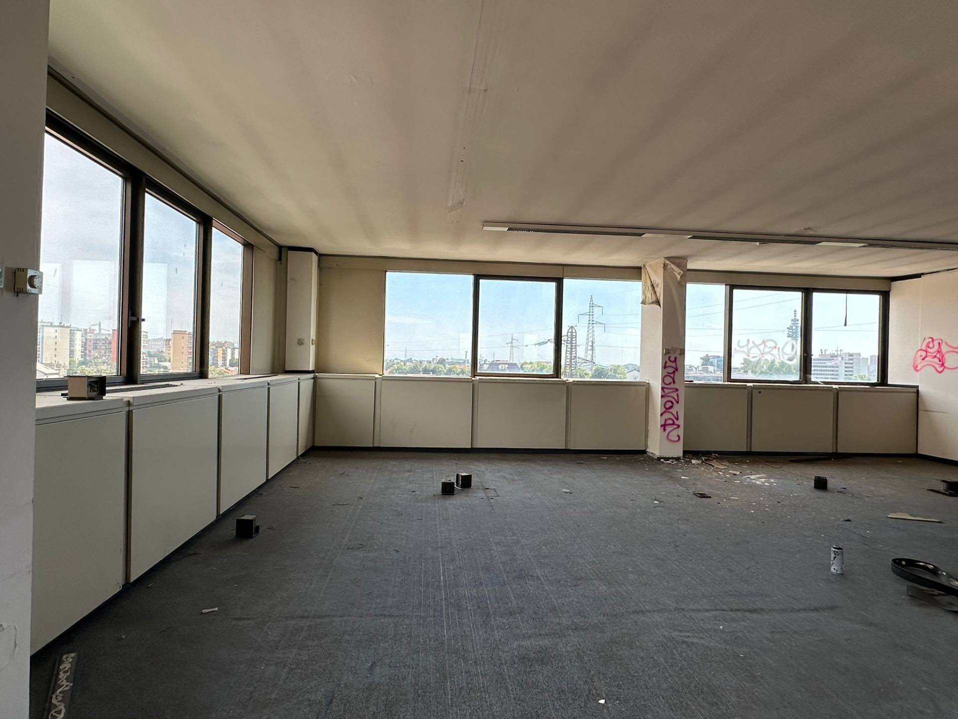 I materiali attualmente presenti, come il controsoffitto con pannelli ispezionabili e la pavimentazione tecnica, semplificano gli eventuali interventi di ristrutturazione.