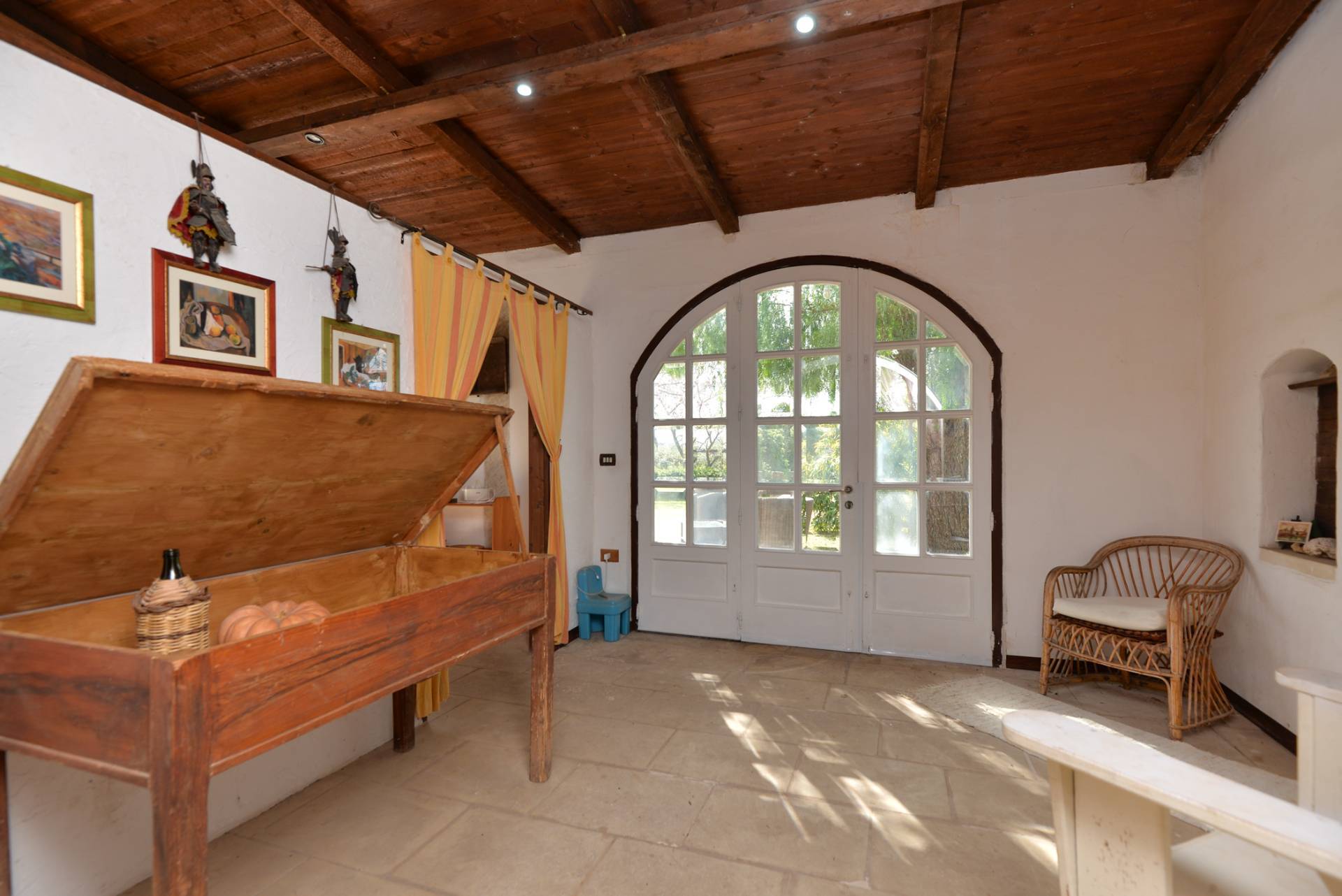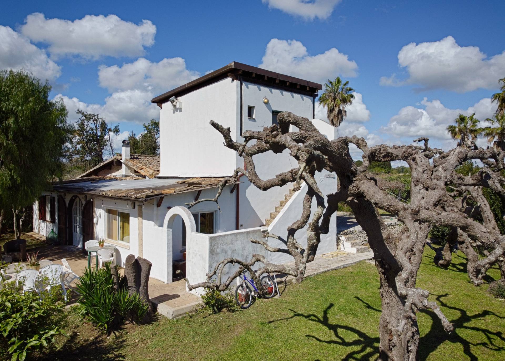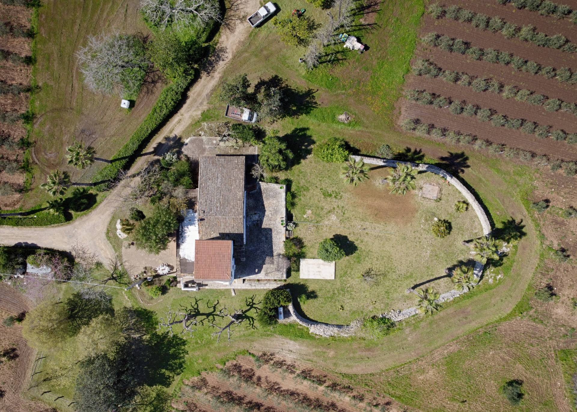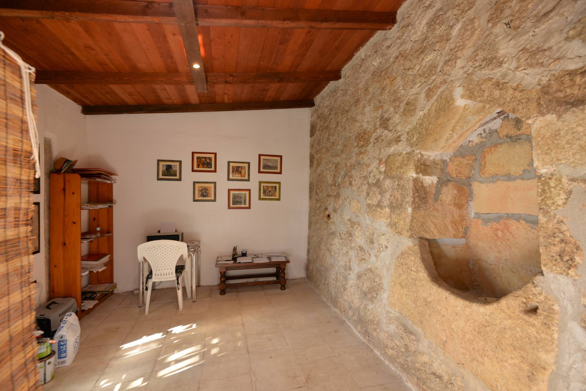 L'immobile di circa 170 mq, con la pertinenza scoperta di circa 1000 mq situata nella parte retrostante delimitata da muratura a secco alta circa 2 metri. La parte primordiale del fabbricato, costituito dall'attuale zona soggiorno-living e dal vano letto, presenta interessanti peculiarità sotto l'aspetto architettonico; infatti il vano letto ha la copertura con il classico tetto a volta mentre le murature dell'attuale camera adibita a soggiorno sono in muratura a secco per tutta la sua altezza e il tetto che era costituito dai cosiddetti "cannizzi" tipiche coperture dei primi anni del secolo scorso, attualmente ha la copertura in legno.