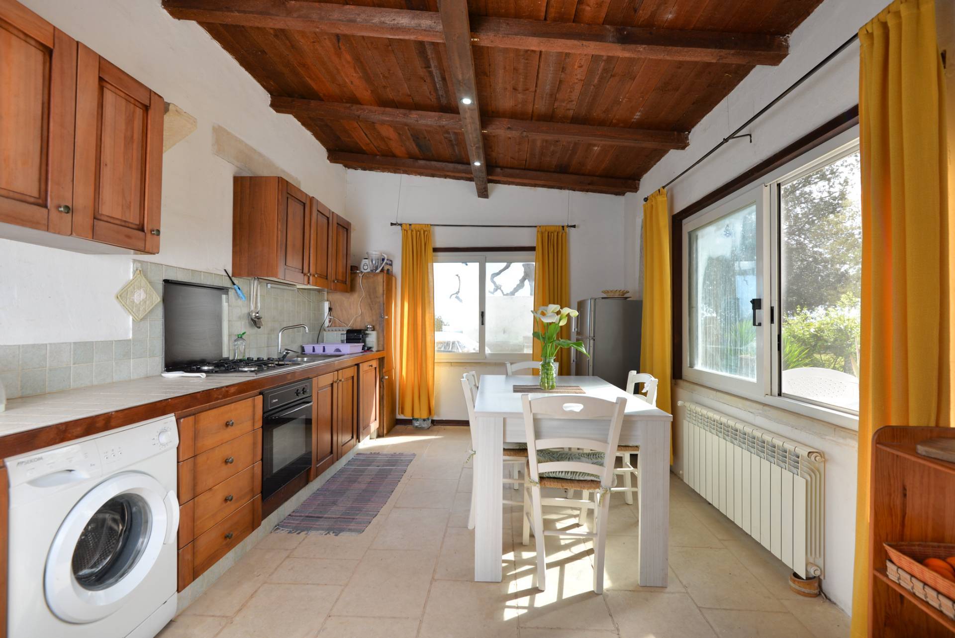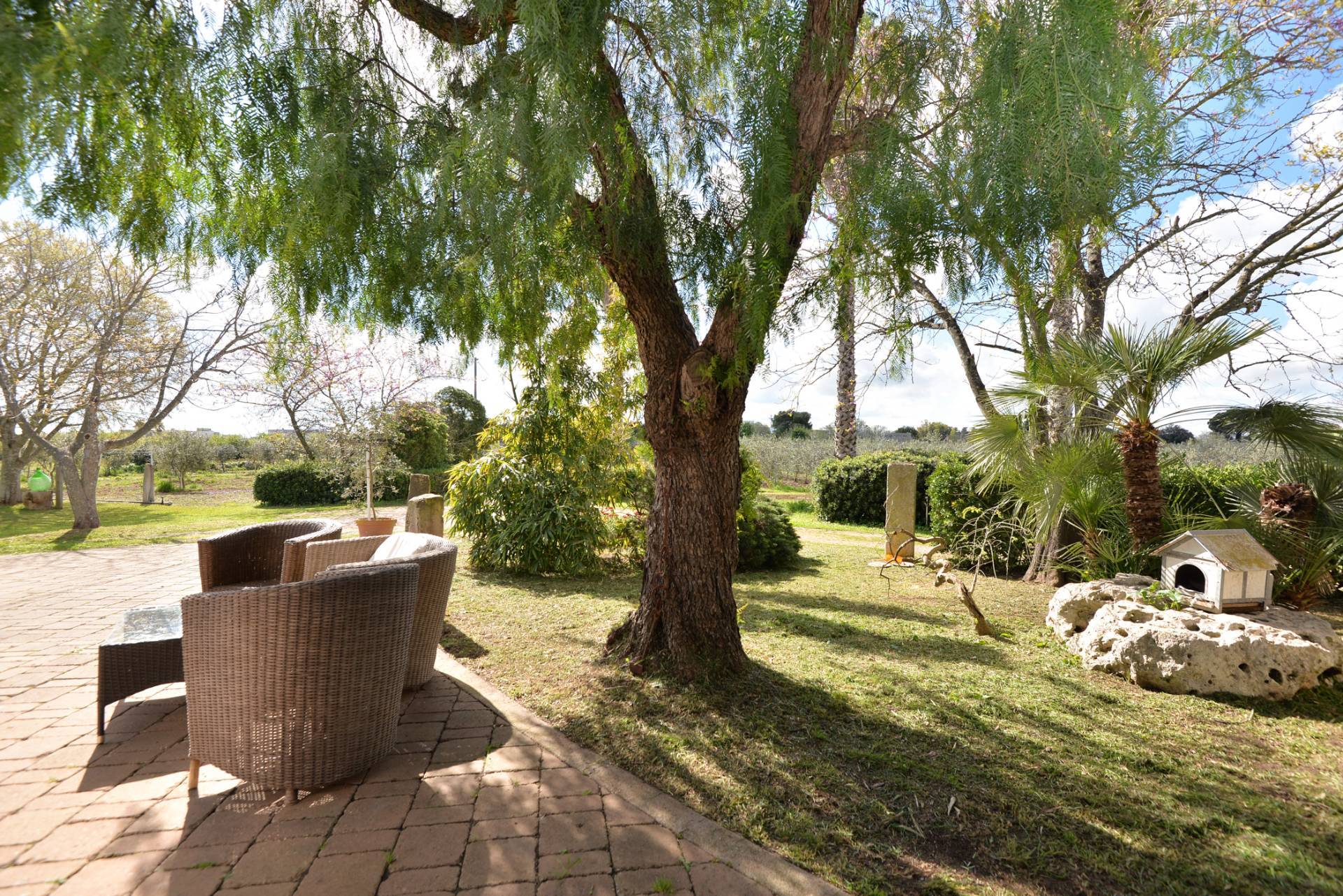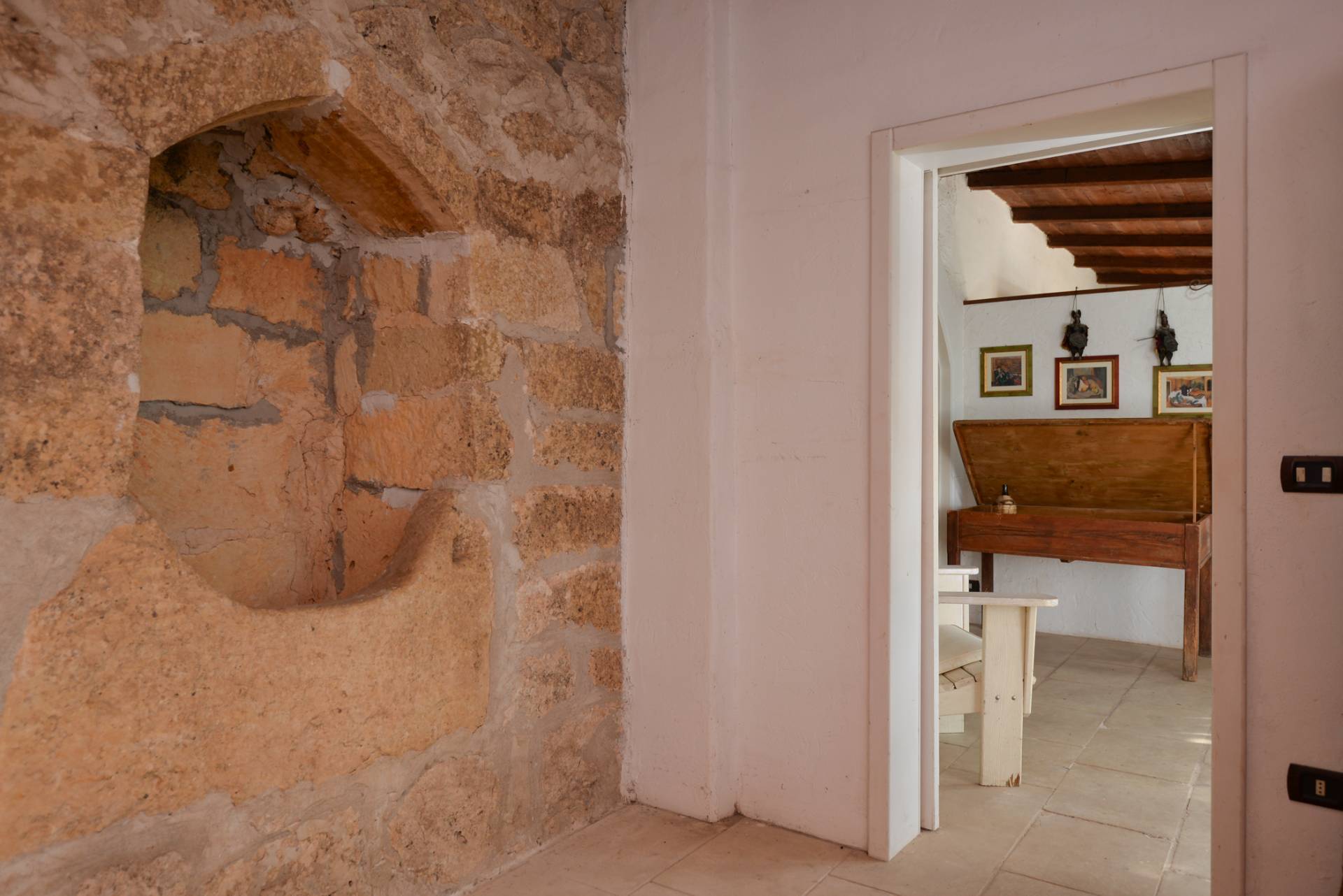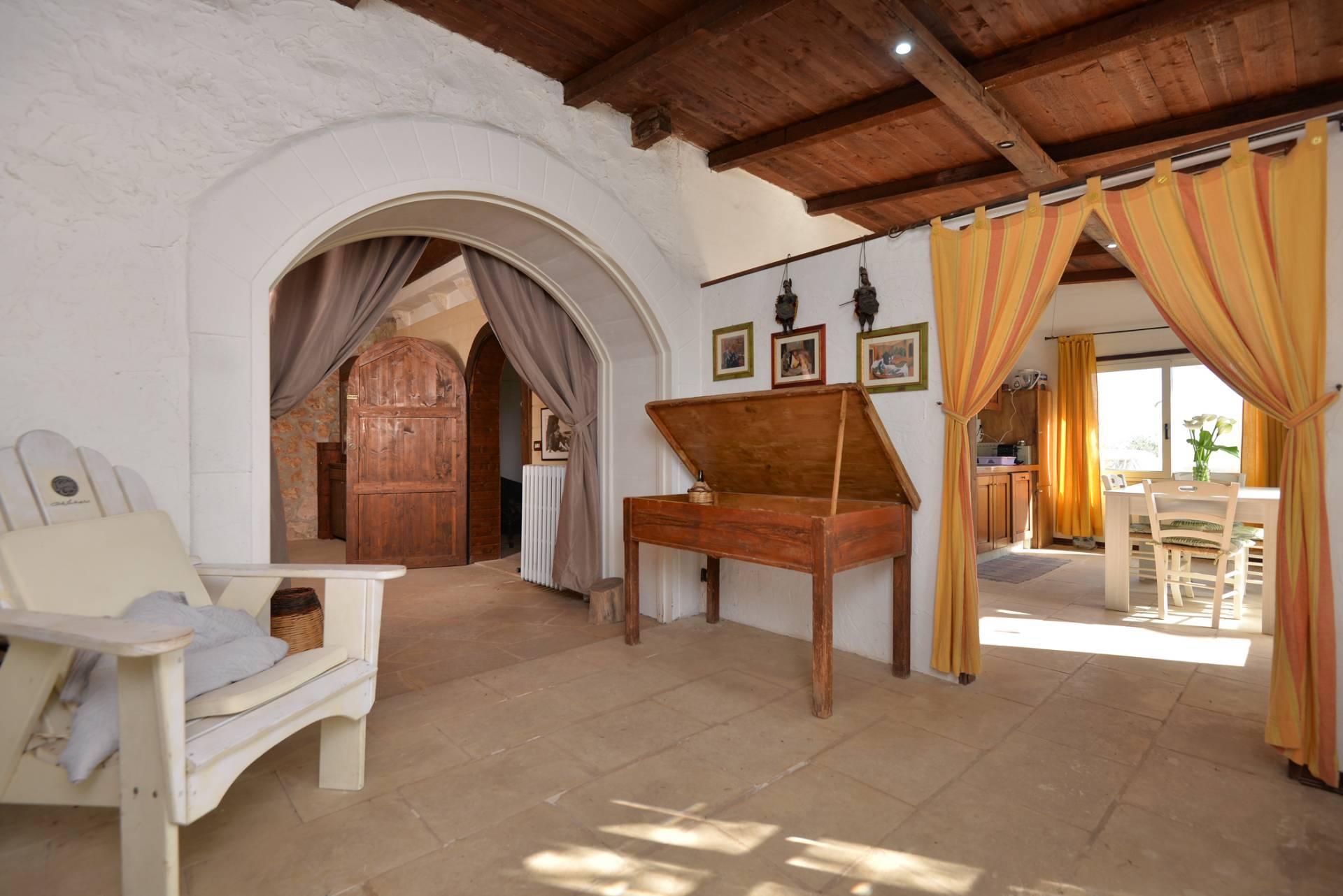 L'immobile di circa 170 mq, con la pertinenza scoperta di circa 1000 mq situata nella parte retrostante delimitata da muratura a secco alta circa 2 metri. La parte primordiale del fabbricato, costituito dall'attuale zona soggiorno-living e dal vano letto, presenta interessanti peculiarità sotto l'aspetto architettonico; infatti il vano letto ha la copertura con il classico tetto a volta mentre le murature dell'attuale camera adibita a soggiorno sono in muratura a secco per tutta la sua altezza e il tetto che era costituito dai cosiddetti "cannizzi" tipiche coperture dei primi anni del secolo scorso, attualmente ha la copertura in legno.