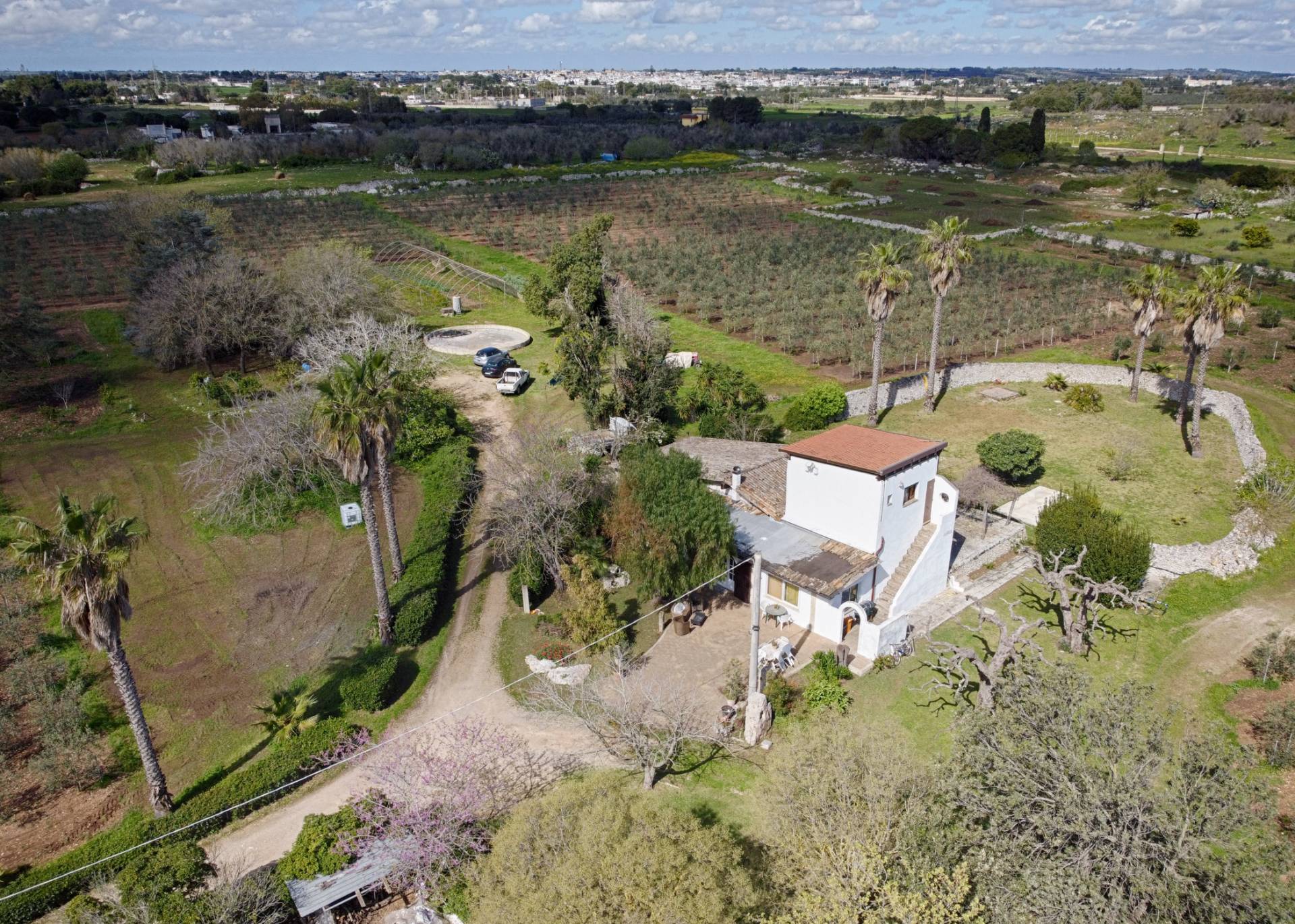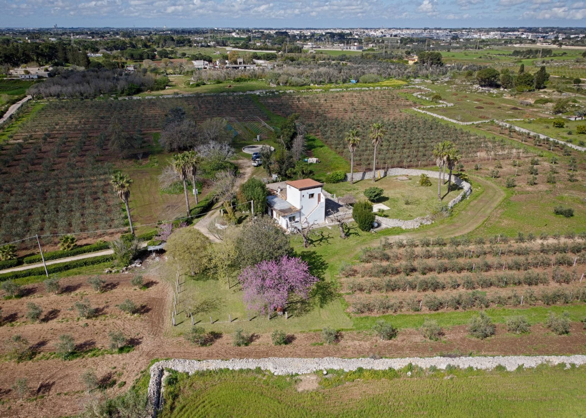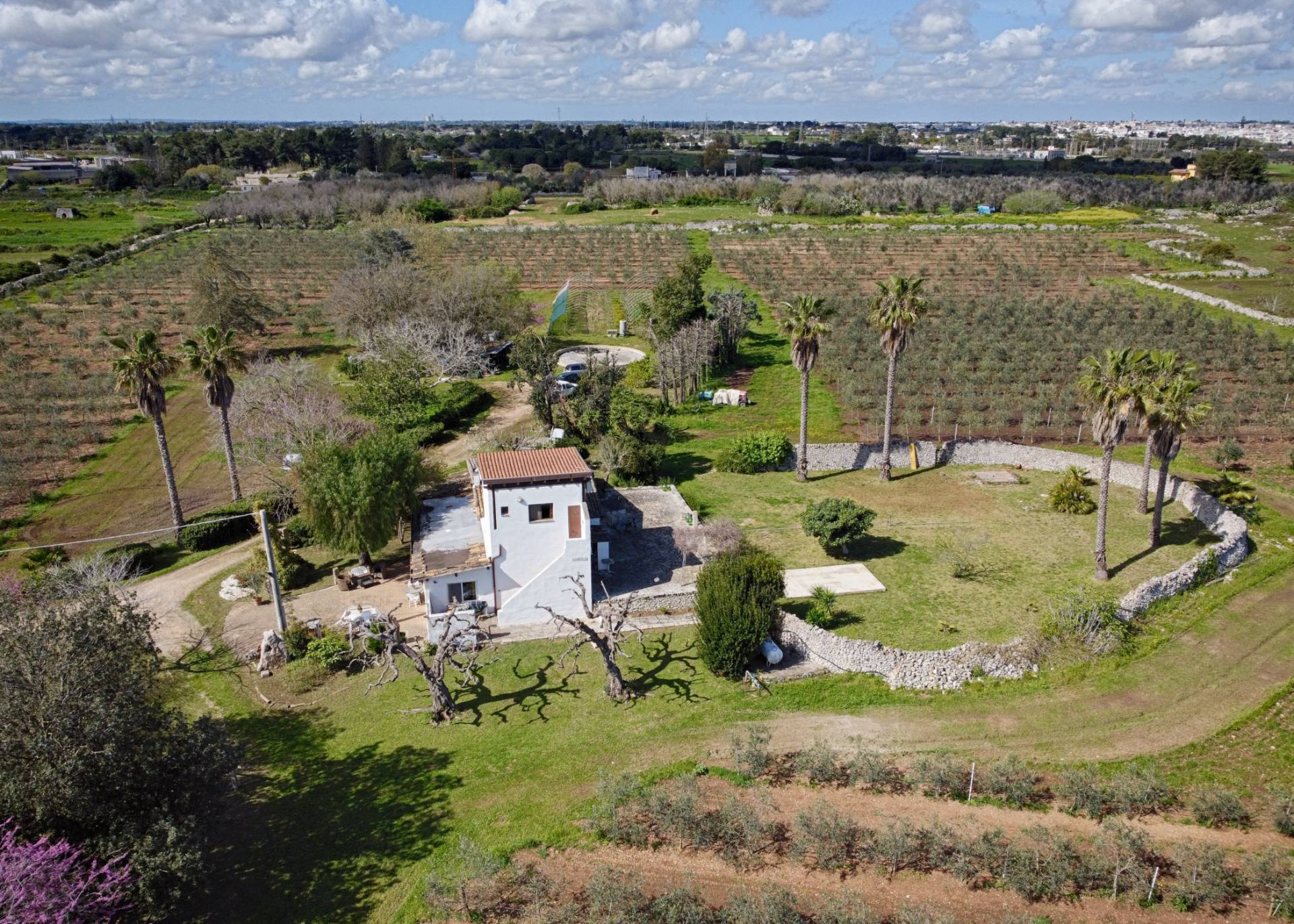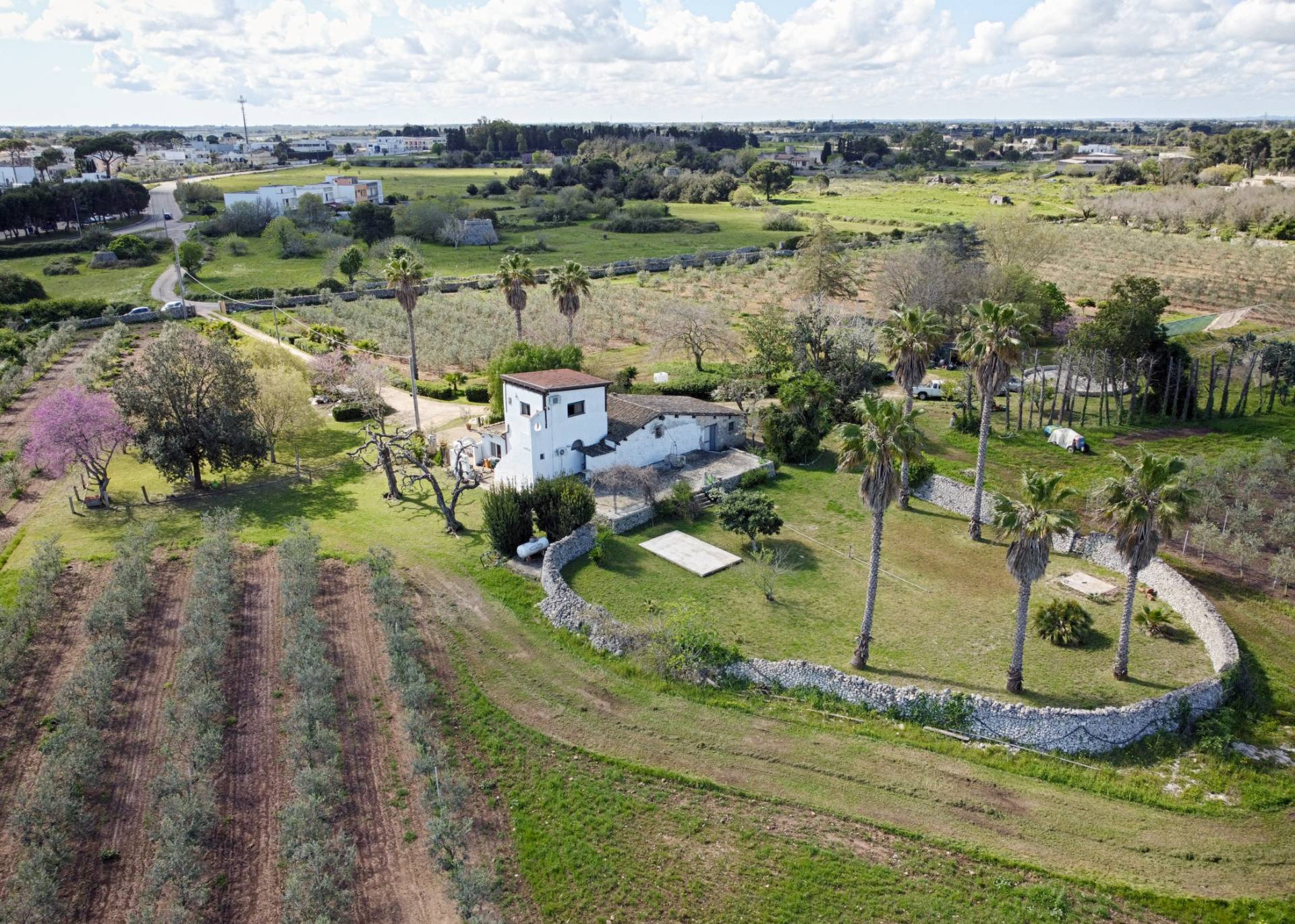 Nell'immediate vicinanze del centro abitato del comune di Carpignano Salentino, proponiamo in vendita un'affascinante villa su un terreno agricolo con un´estensione di 43000 mq totalmente recintato da muri a secco di altezza variabile, prospiciente strada Comunale S. Cosimo.