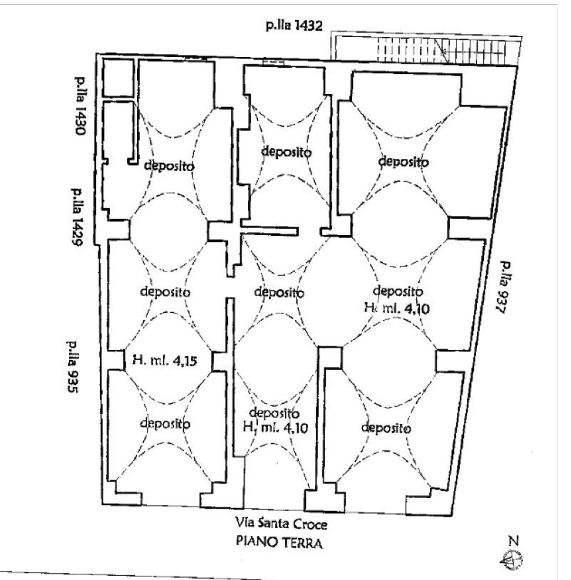 Dispone di 11 ampi vani a stella, con 4 portoni su fronte strada, e dal piccolo cortile retrostante tramite la scala vi è l'accesso a lastricato solare.