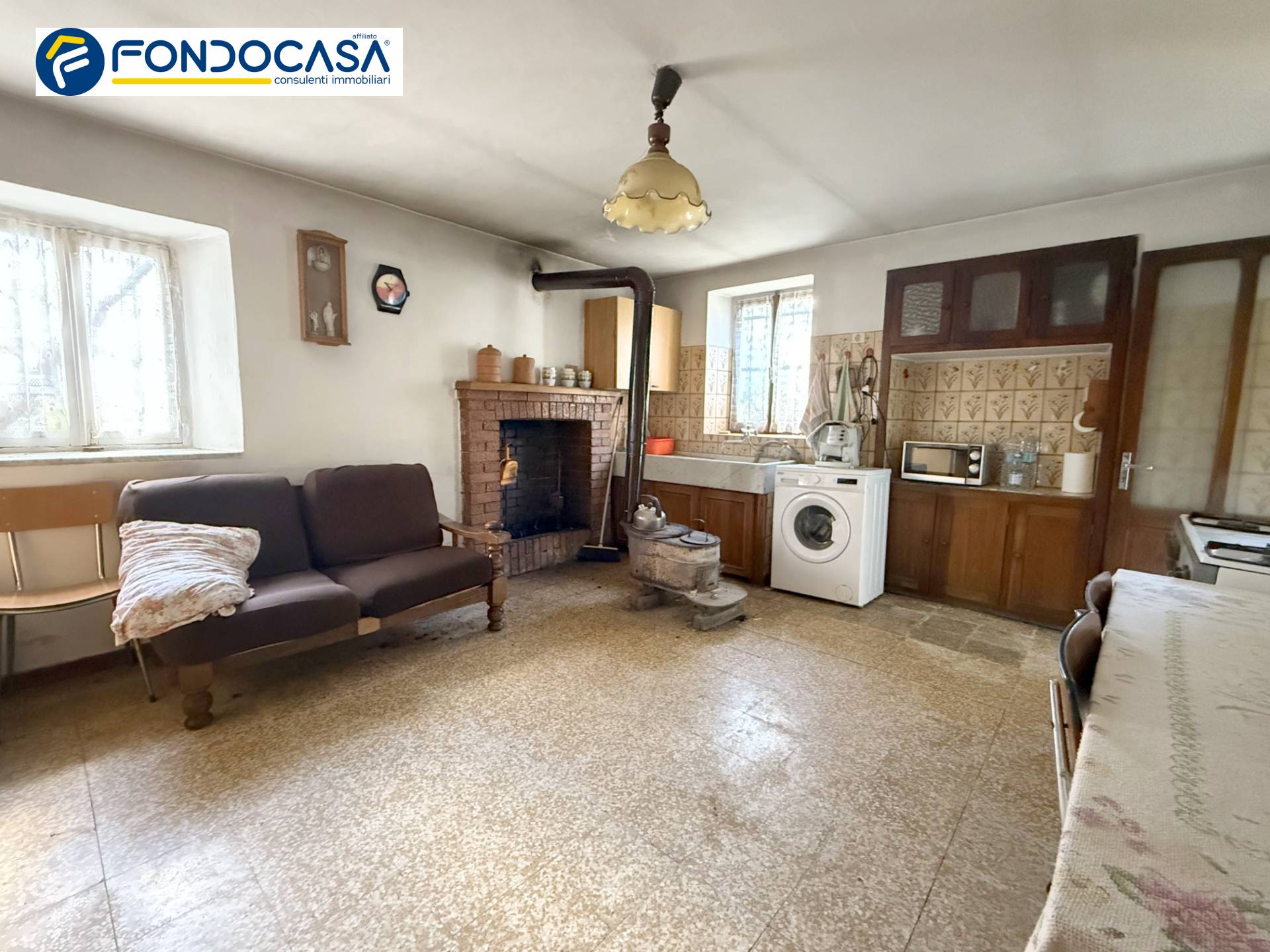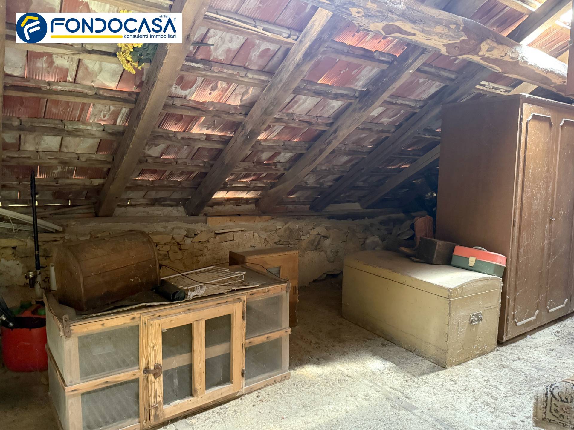 La casa abitativa è la classica casa contadina degli anni 60 con al piano terra una parte abitativa che consiste in una cucina ed una sala mentre la primo piano troviamo due camere da letto ed il bagno raggiungibile da una scala interna dove si trova anche un terrazzino ed un vano sottotetto utilizzato come deposito.